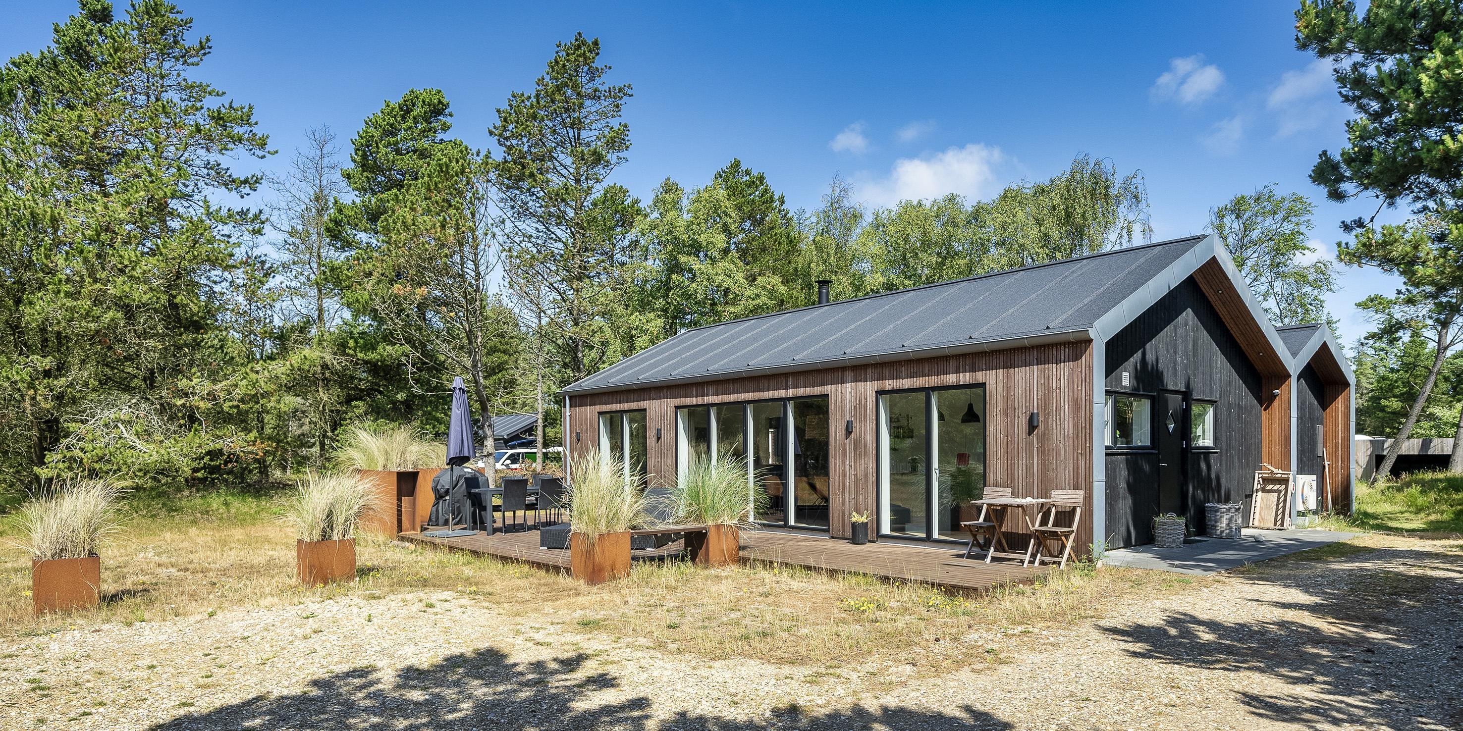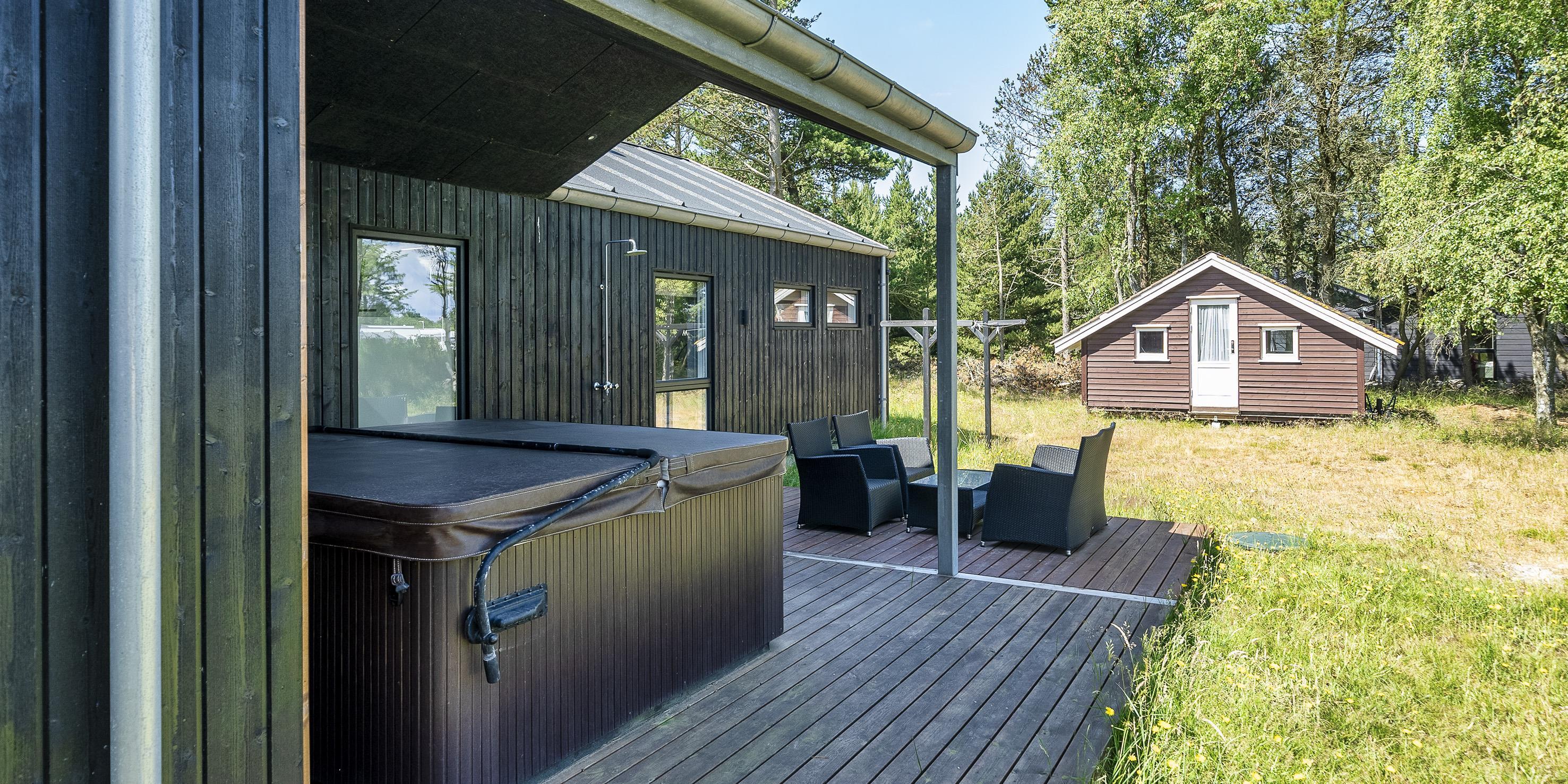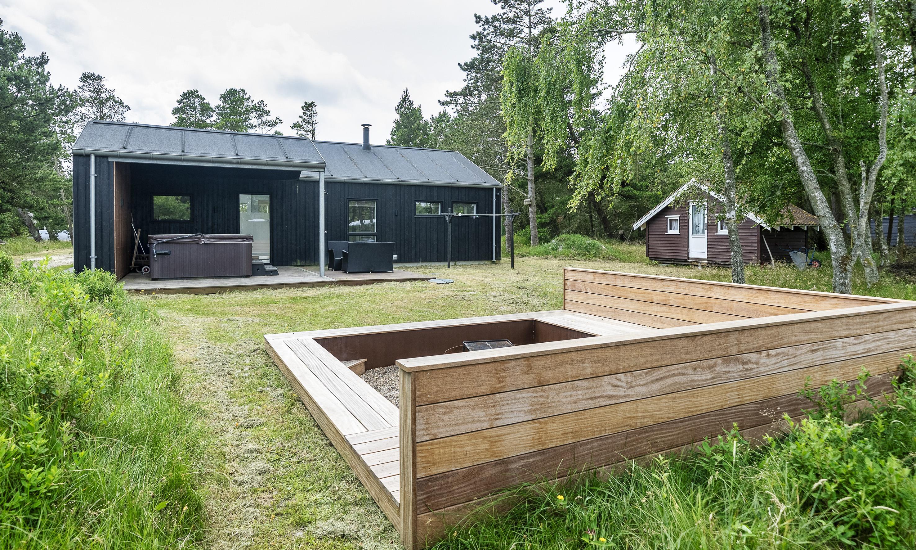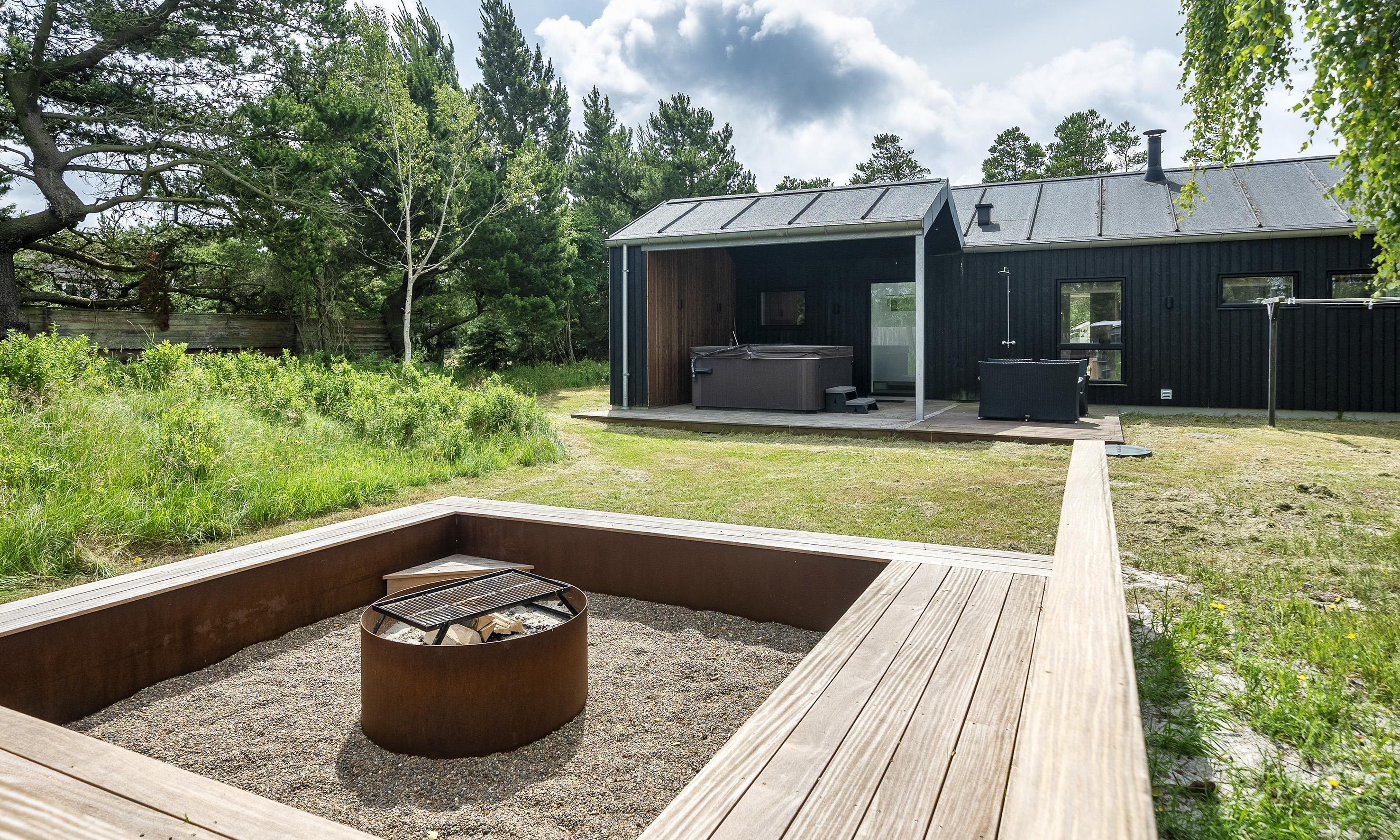 Utrolig dejligt nybygget sommerhus til 5 Vejers fans, beliggende på en stor naturgrund, ca. 1800 meter fra stranden. Huset fremstår lyst og dejligt med åbent planløsning med opholdsrum og køkken-alrum ud i et, store glaspartier med skydedøre hvorfra hele naturgrunden kan nydes fra huset. Entre igennem huset opholdsrum, hvorfra der er en garderobe hjørne. Lyst og dejligt køkken der fremstår med alt komfort såsom opvaskemaskine, mikroovn, indbygningsovn, keramisk kogeplade og køle/frysekombination. Køkkenet er i åben forbindelse med spiseplads med kig til indbygningsbrændeovn, og opholdsstuen med fjernsyn, og trådløs internetadgang, Smart TV, Google Chrome Cast und Sonas højtaler. Huset råder over 2 rummelige soveværelser DS + 2S/DS og hems. Masterbadeværelse med en bruser, toilet, vaskearrangement samt vaske- tørremaskine. Fra badeværelset er der adgang til huset sauna med kig ud, samt udgang til overdækket terrasse med en stor udendørsspa og udvendig bruser. Shelter. Hele huset fremstår med gulvvarme. Varmepumpe. Træterrasse i plan med huset. Gyngestativ. Bålsted. Dejlig naturgrund med trampolin, en stor græsplæne der indbyder til bold og leg. Rygning er ikke tilladt! Huset er tilladt med én hund! Hunden må ikke komme i møblerne eller i sengen. Gas til gasgrillen skal lejer selv sørger for. Der findes en stor gasflaske, men vi kan ikke garantere at den er fyldt op. Gratis adgang til Badeland og bowling i Varde 2026. Byggeår 2020.