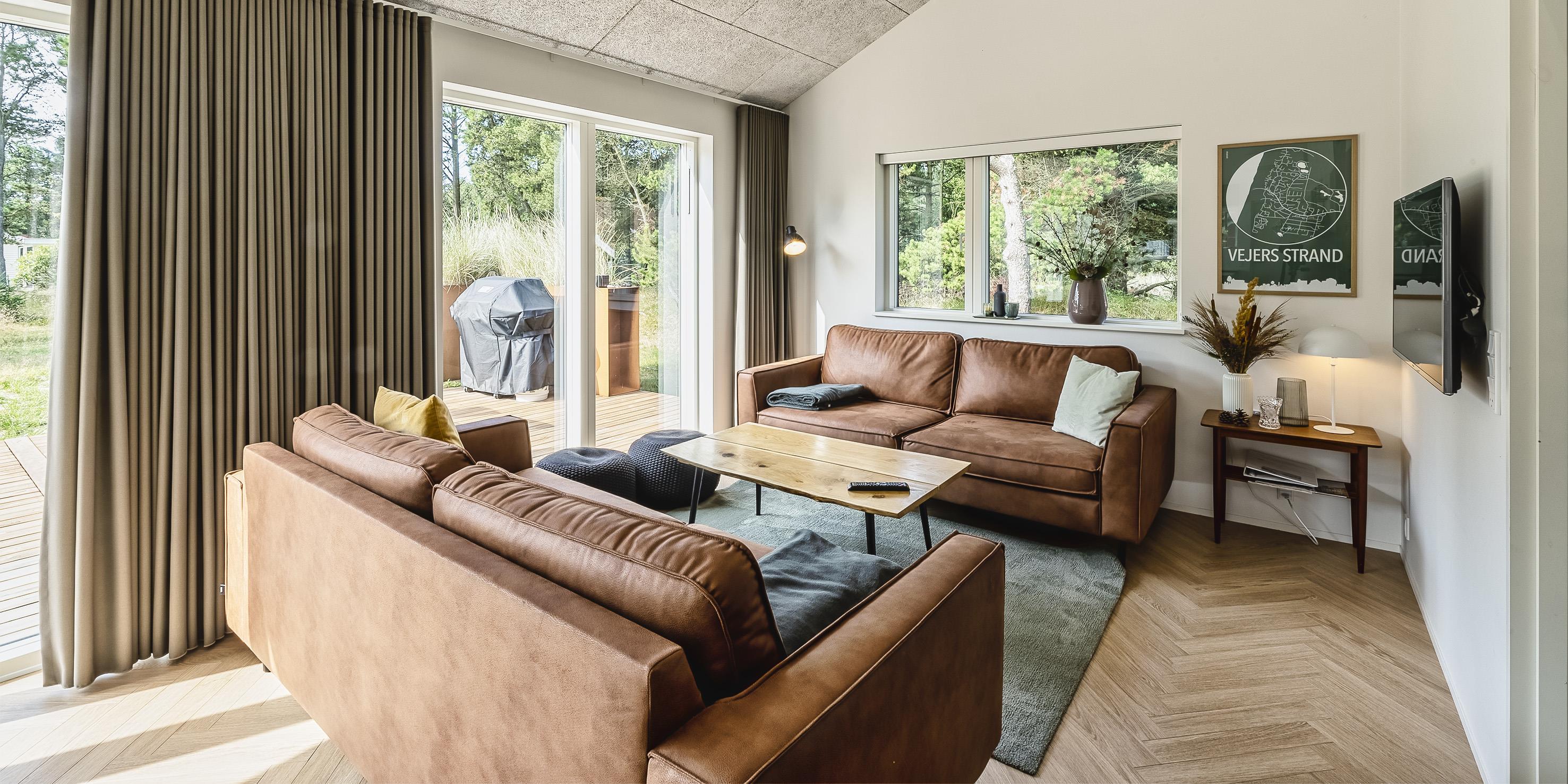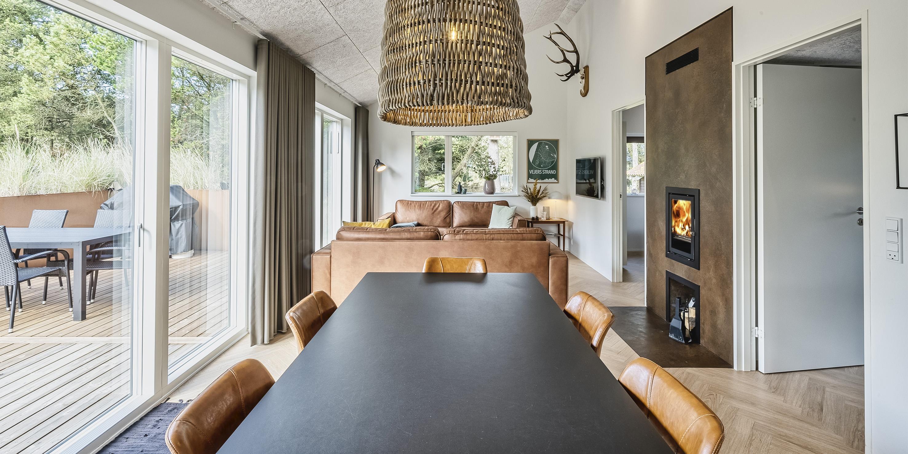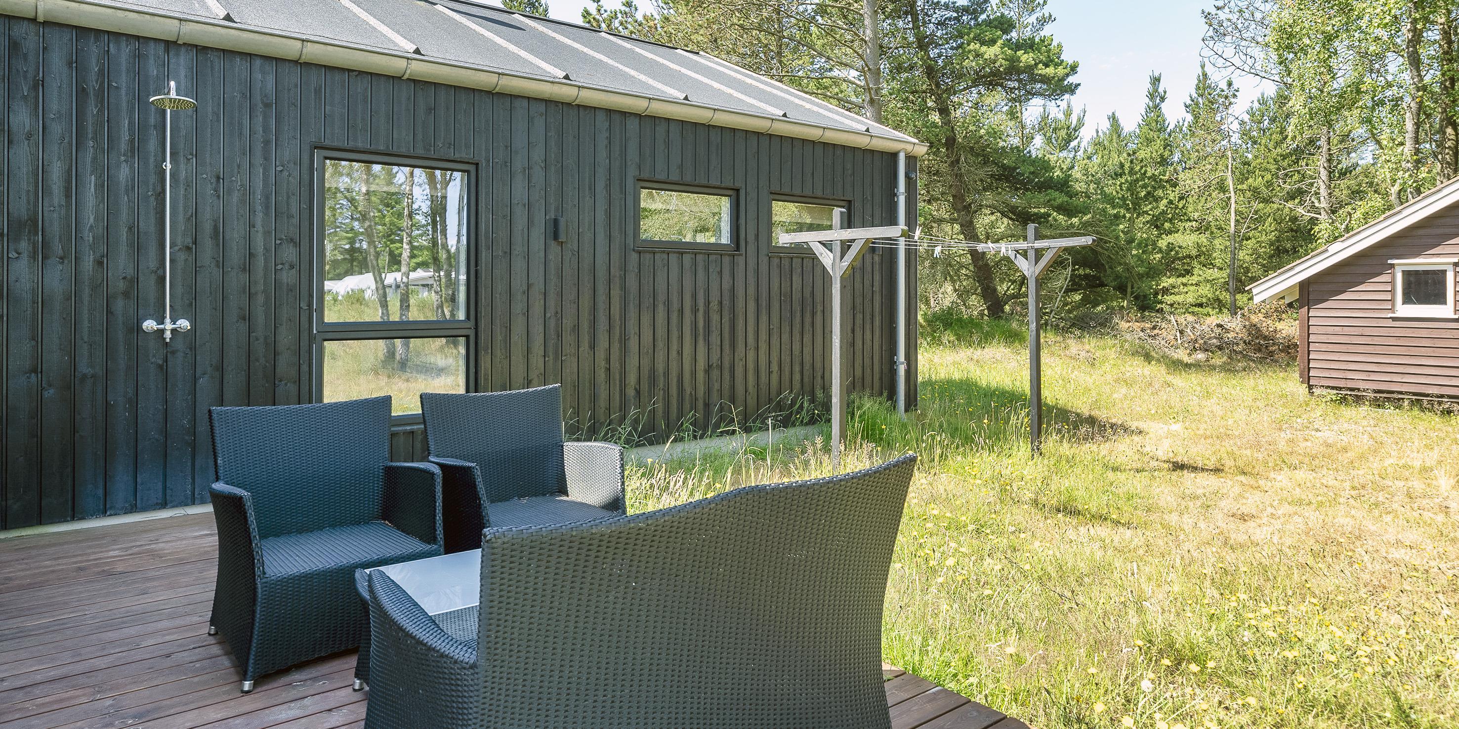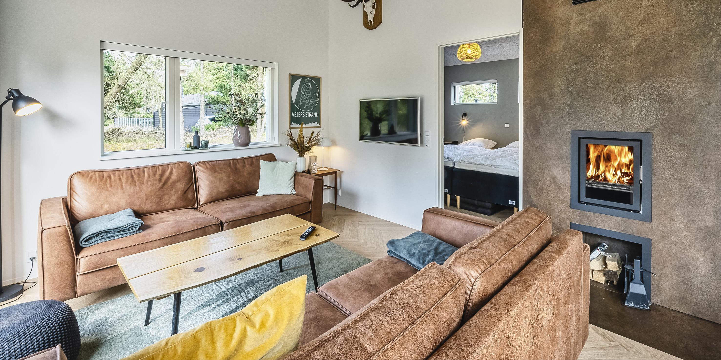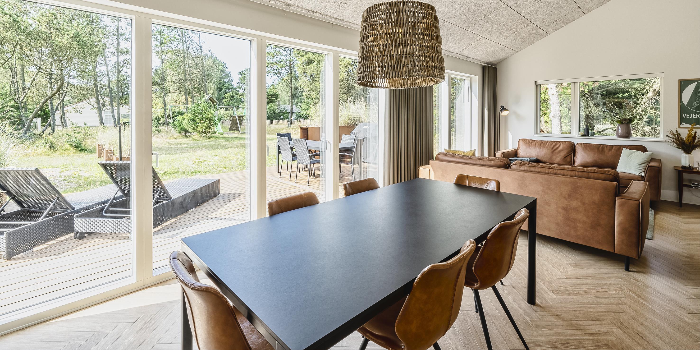Utrolig dejligt nybygget sommerhus til 5 Vejers fans, beliggende på en stor naturgrund, ca. 1800 meter fra stranden. Huset fremstår lyst og dejligt med åbent planløsning med opholdsrum og køkken-alrum ud i et, store glaspartier med skydedøre hvorfra hele naturgrunden kan nydes fra huset. Entre igennem huset opholdsrum, hvorfra der er en garderobe hjørne. Lyst og dejligt køkken der fremstår med alt komfort såsom opvaskemaskine, mikroovn, indbygningsovn, keramisk kogeplade og køle/frysekombination. Køkkenet er i åben forbindelse med spiseplads med kig til indbygningsbrændeovn, og opholdsstuen med fjernsyn, og trådløs internetadgang, Smart TV, Google Chrome Cast und Sonas højtaler. Huset råder over 2 rummelige soveværelser DS + 2S/DS og hems. Masterbadeværelse med en bruser, toilet, vaskearrangement samt vaske- tørremaskine. Fra badeværelset er der adgang til huset sauna med kig ud, samt udgang til overdækket terrasse med en stor udendørsspa og udvendig bruser. Shelter. Hele huset fremstår med gulvvarme. Varmepumpe. Træterrasse i plan med huset. Gyngestativ. Bålsted. Dejlig naturgrund med trampolin, en stor græsplæne der indbyder til bold og leg. Rygning er ikke tilladt! Huset er tilladt med én hund! Hunden må ikke komme i møblerne eller i sengen. Gas til gasgrillen skal lejer selv sørger for. Der findes en stor gasflaske, men vi kan ikke garantere at den er fyldt op. Gratis adgang til Badeland og bowling i Varde 2026. Byggeår 2020.