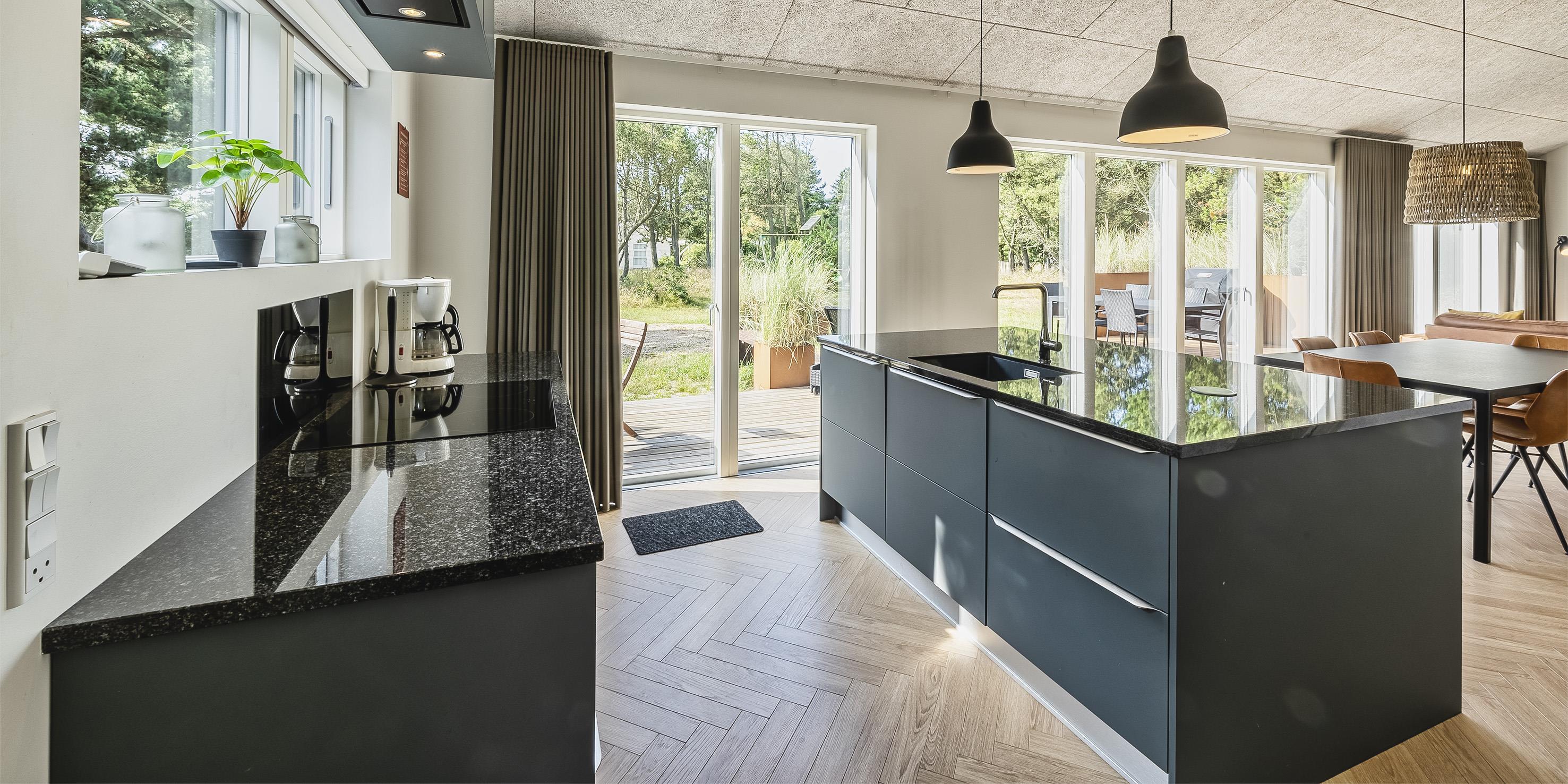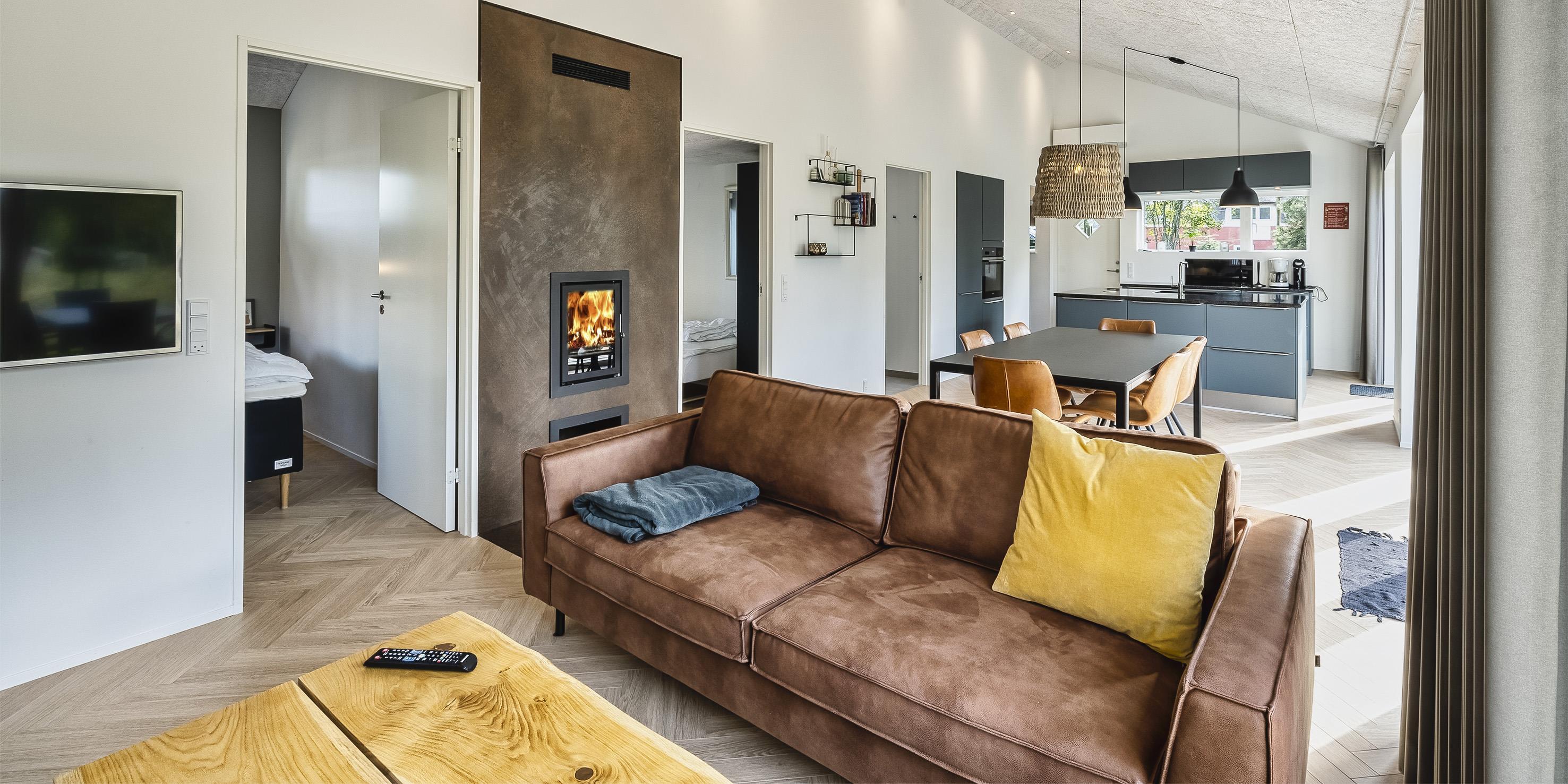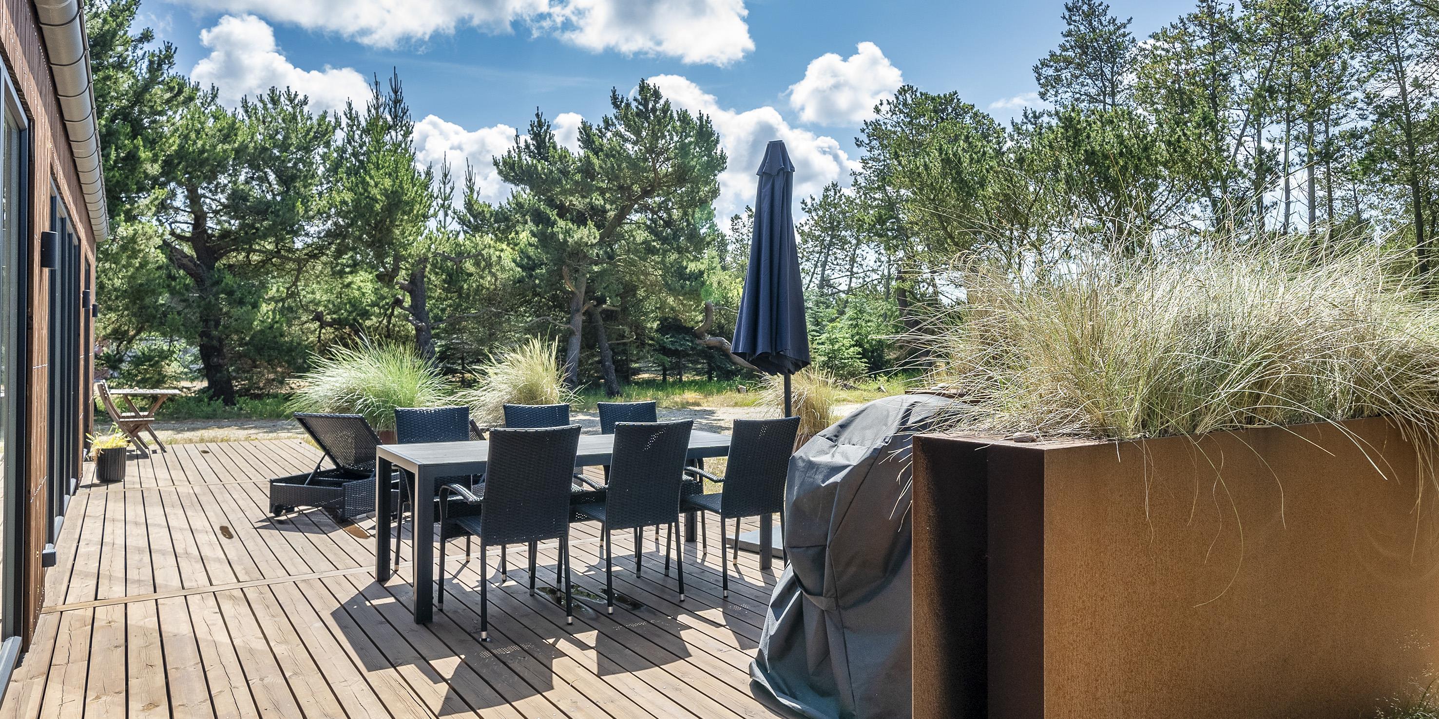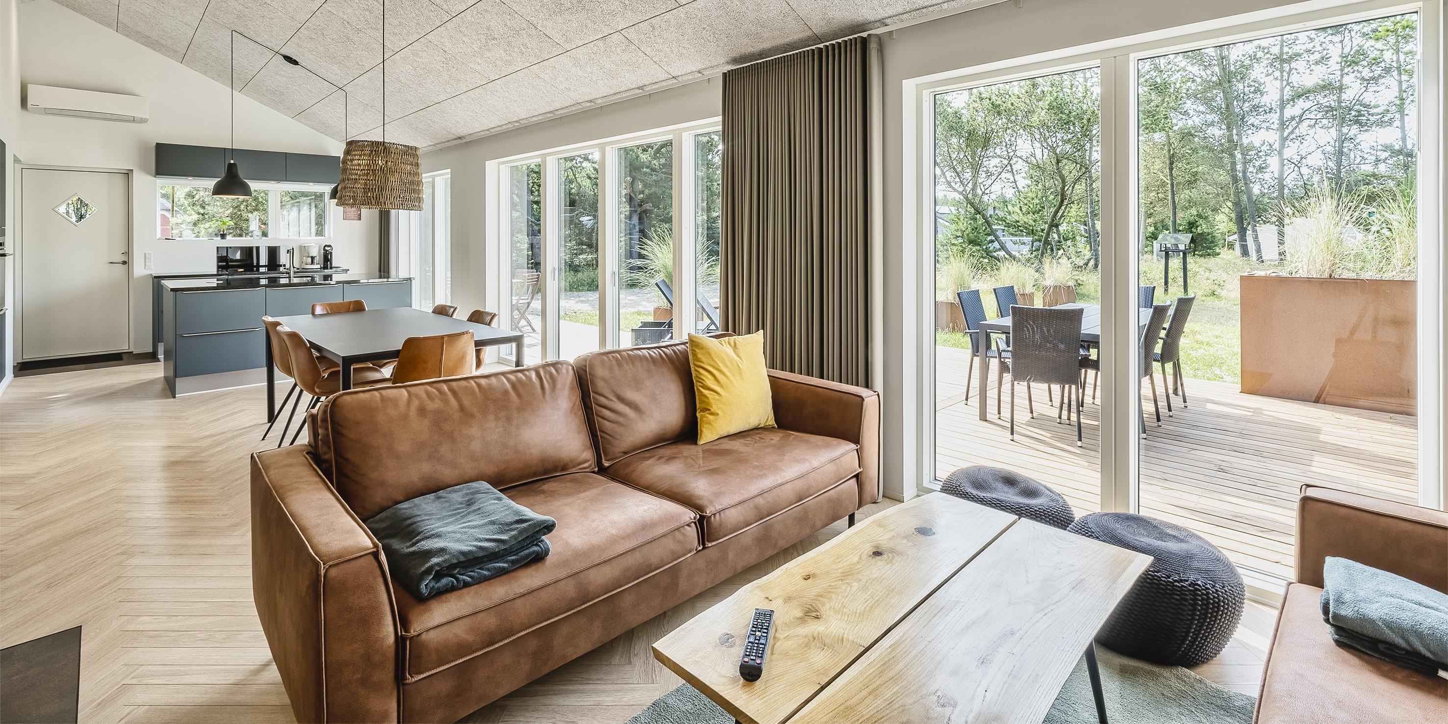 Utrolig dejligt nybygget sommerhus til 5 Vejers fans, beliggende på en stor naturgrund, ca. 1800 meter fra stranden. Huset fremstår lyst og dejligt med åbent planløsning med opholdsrum og køkken-alrum ud i et, store glaspartier med skydedøre hvorfra hele naturgrunden kan nydes fra huset. Entre igennem huset opholdsrum, hvorfra der er en garderobe hjørne. Lyst og dejligt køkken der fremstår med alt komfort såsom opvaskemaskine, mikroovn, indbygningsovn, keramisk kogeplade og køle/frysekombination. Køkkenet er i åben forbindelse med spiseplads med kig til indbygningsbrændeovn, og opholdsstuen med fjernsyn, og trådløs internetadgang, Smart TV, Google Chrome Cast und Sonas højtaler. Huset råder over 2 rummelige soveværelser DS + 2S/DS og hems. Masterbadeværelse med en bruser, toilet, vaskearrangement samt vaske- tørremaskine. Fra badeværelset er der adgang til huset sauna med kig ud, samt udgang til overdækket terrasse med en stor udendørsspa og udvendig bruser. Shelter. Hele huset fremstår med gulvvarme. Varmepumpe. Træterrasse i plan med huset. Gyngestativ. Bålsted. Dejlig naturgrund med trampolin, en stor græsplæne der indbyder til bold og leg. Rygning er ikke tilladt! Huset er tilladt med én hund! Hunden må ikke komme i møblerne eller i sengen. Gas til gasgrillen skal lejer selv sørger for. Der findes en stor gasflaske, men vi kan ikke garantere at den er fyldt op. Gratis adgang til Badeland og bowling i Varde 2026. Byggeår 2020.