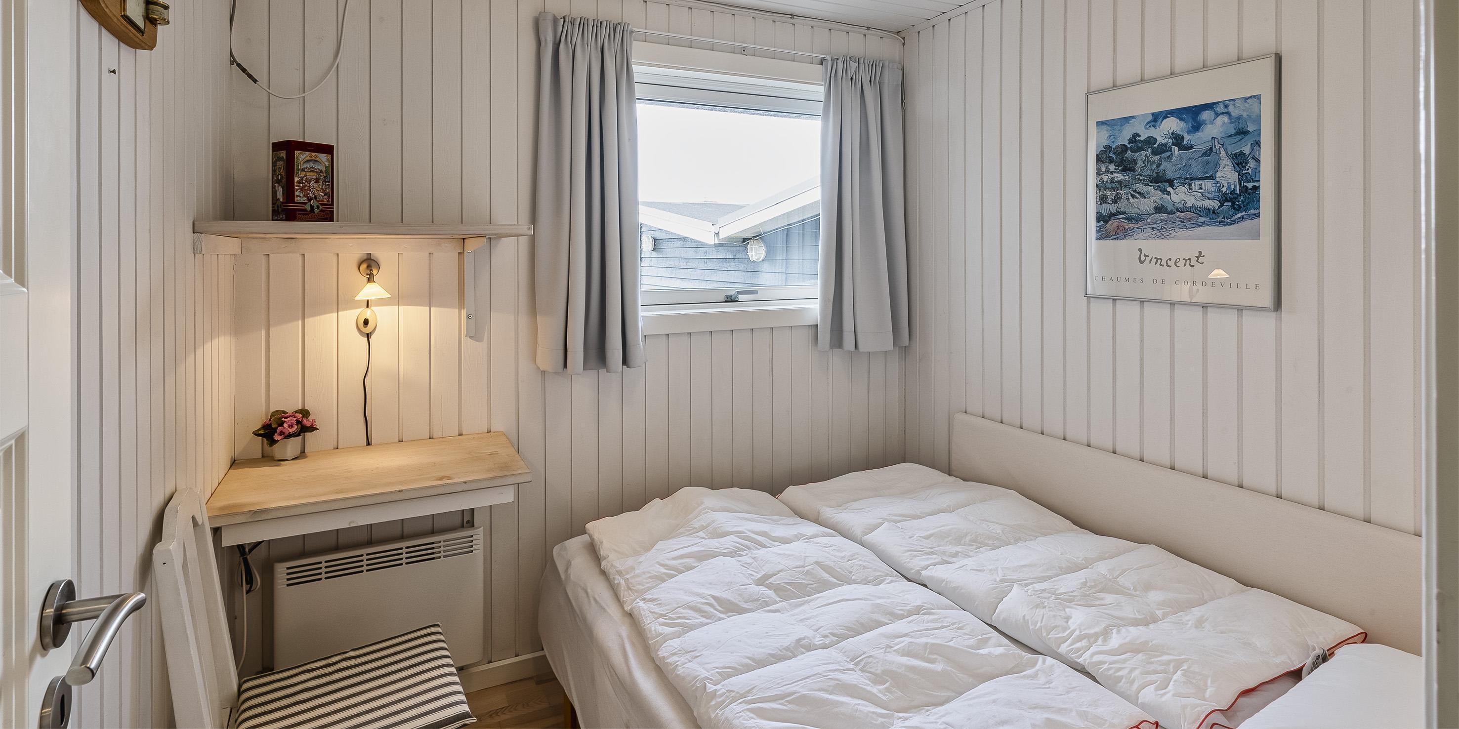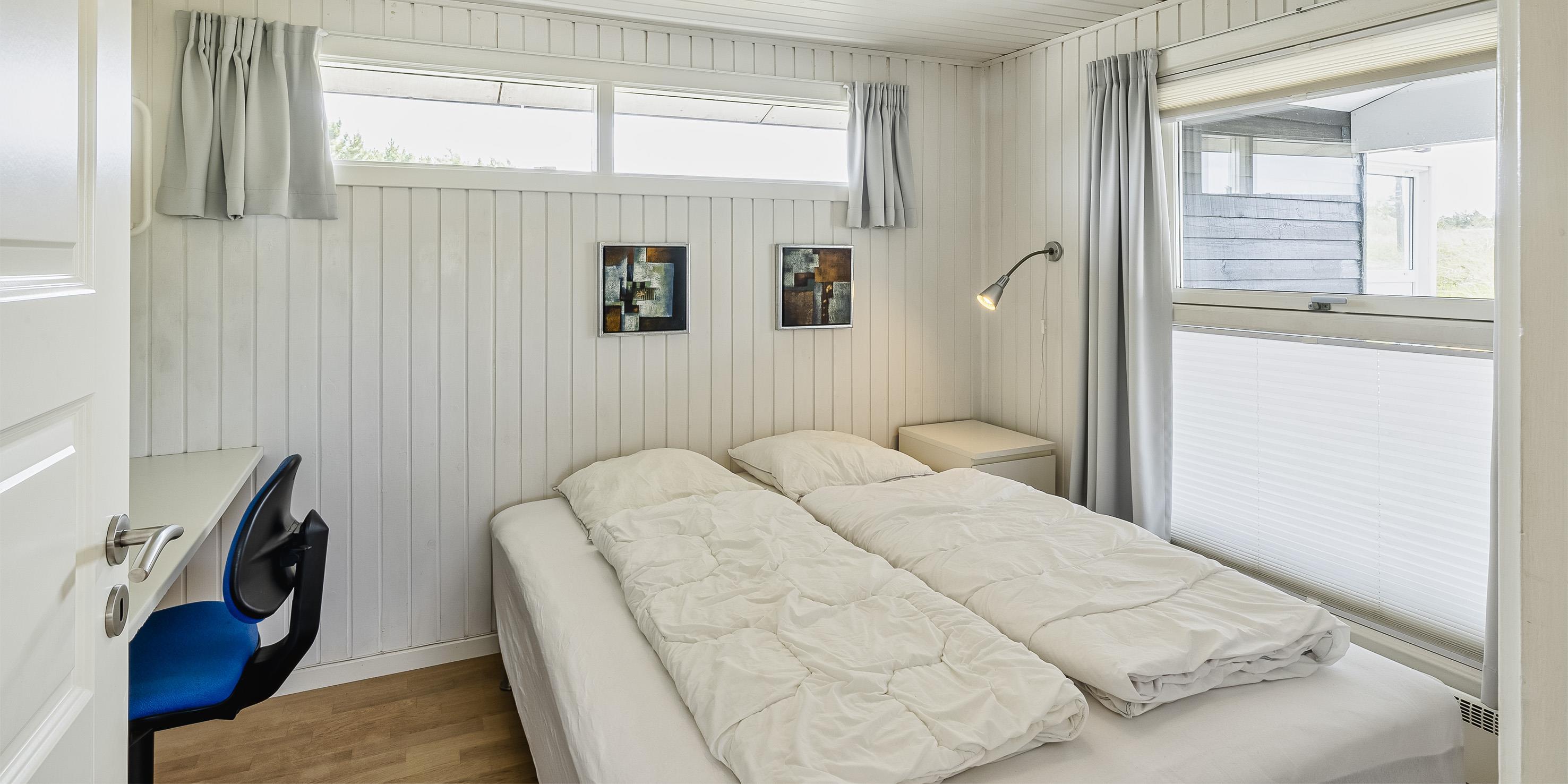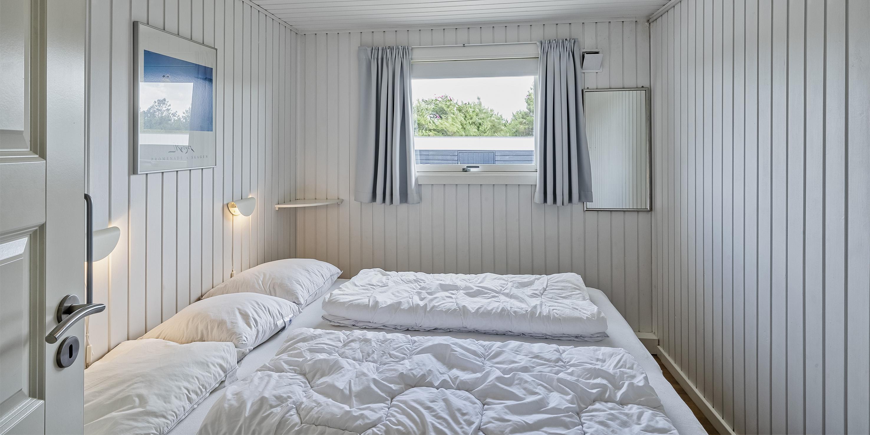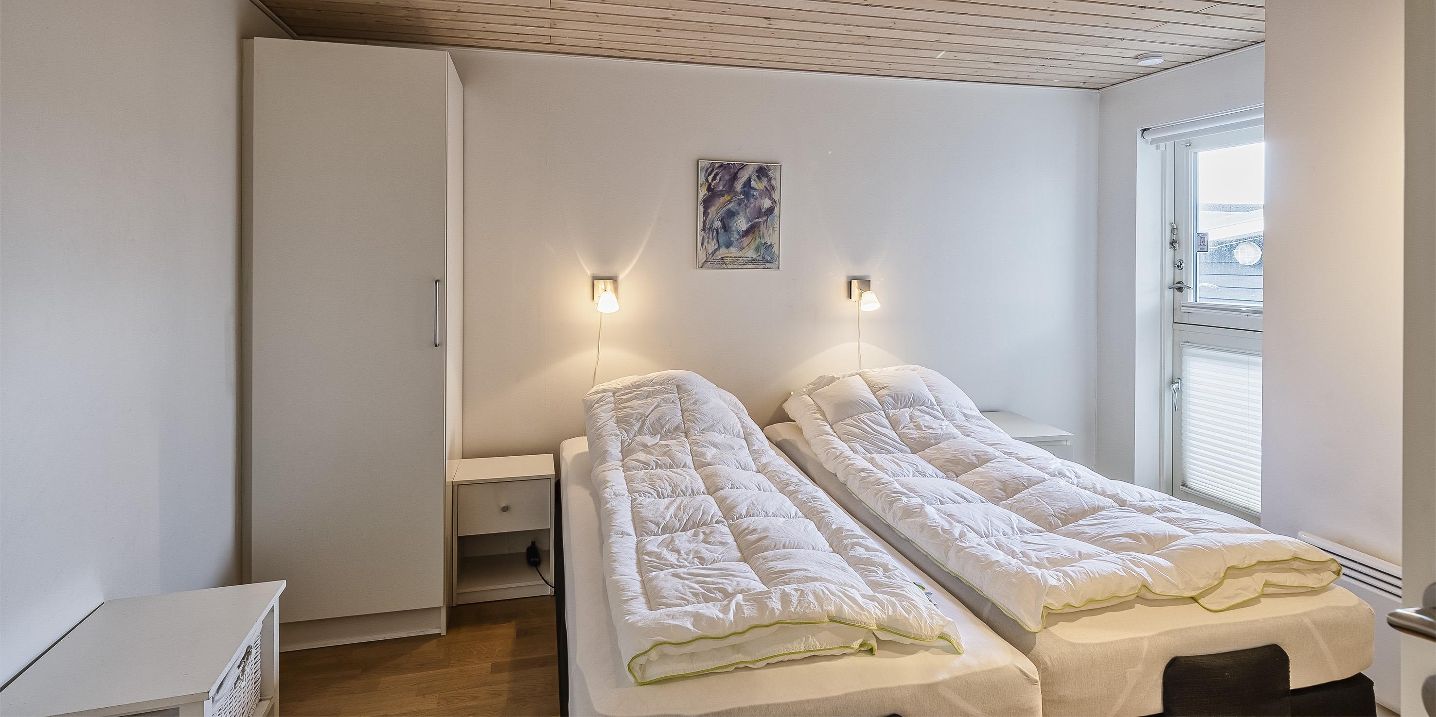 5 soveværelser. 3 med dobbeltseng 180x200 cm. 2 med 1 3/4 seng.