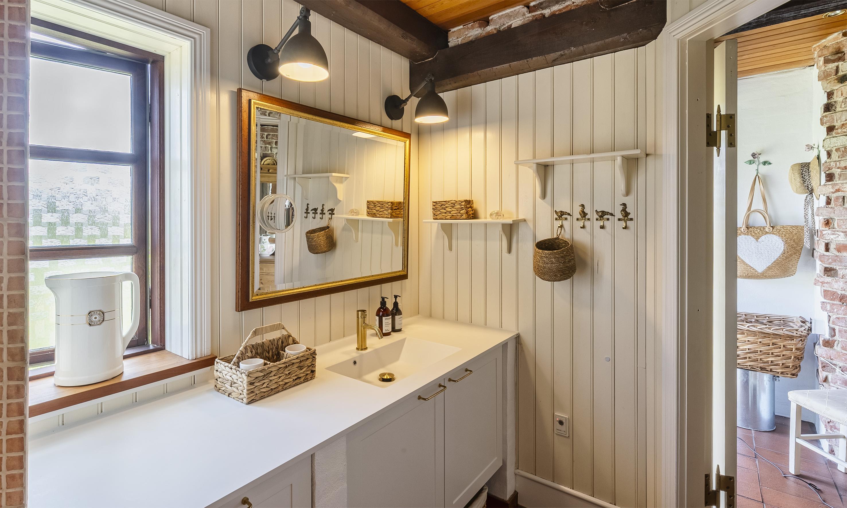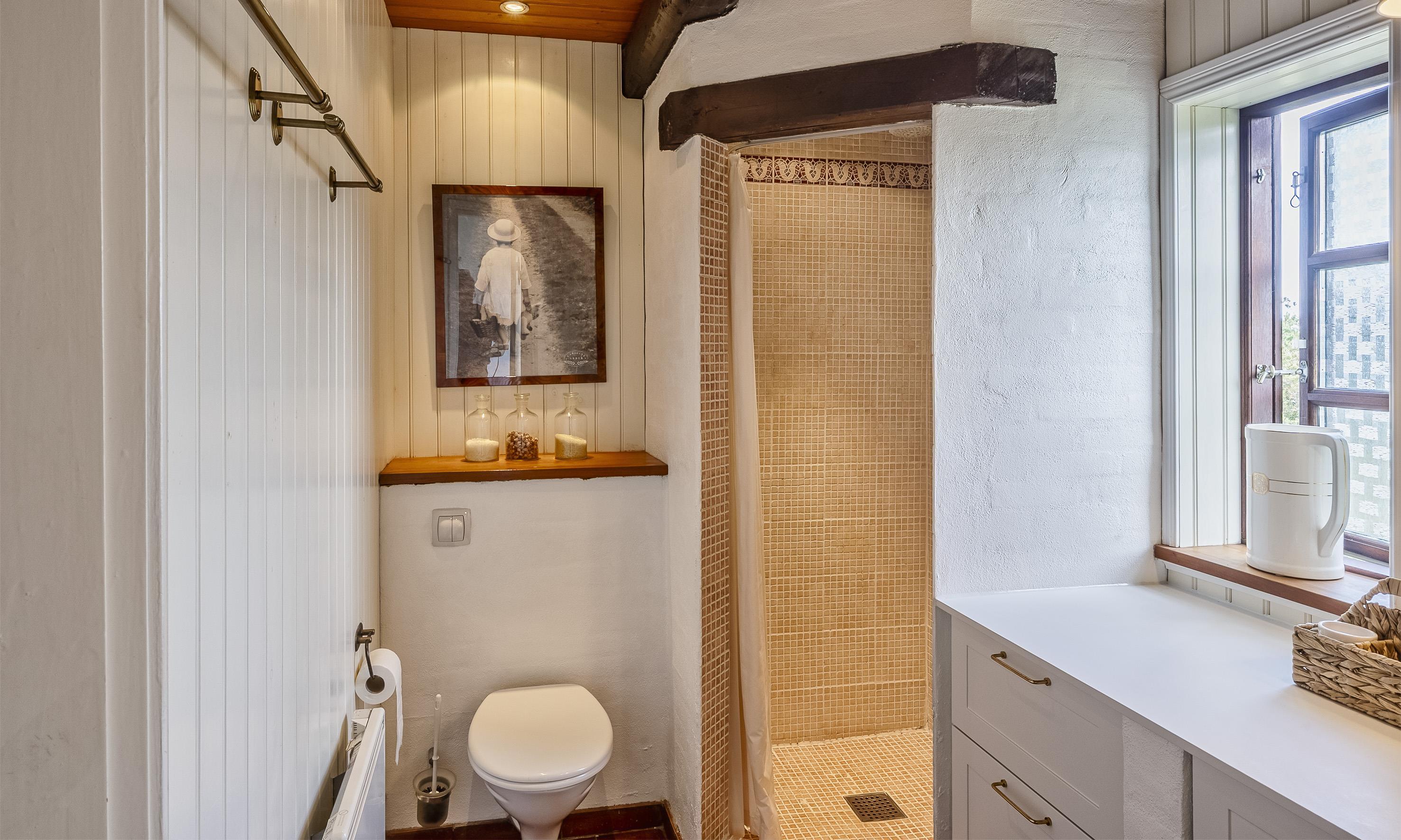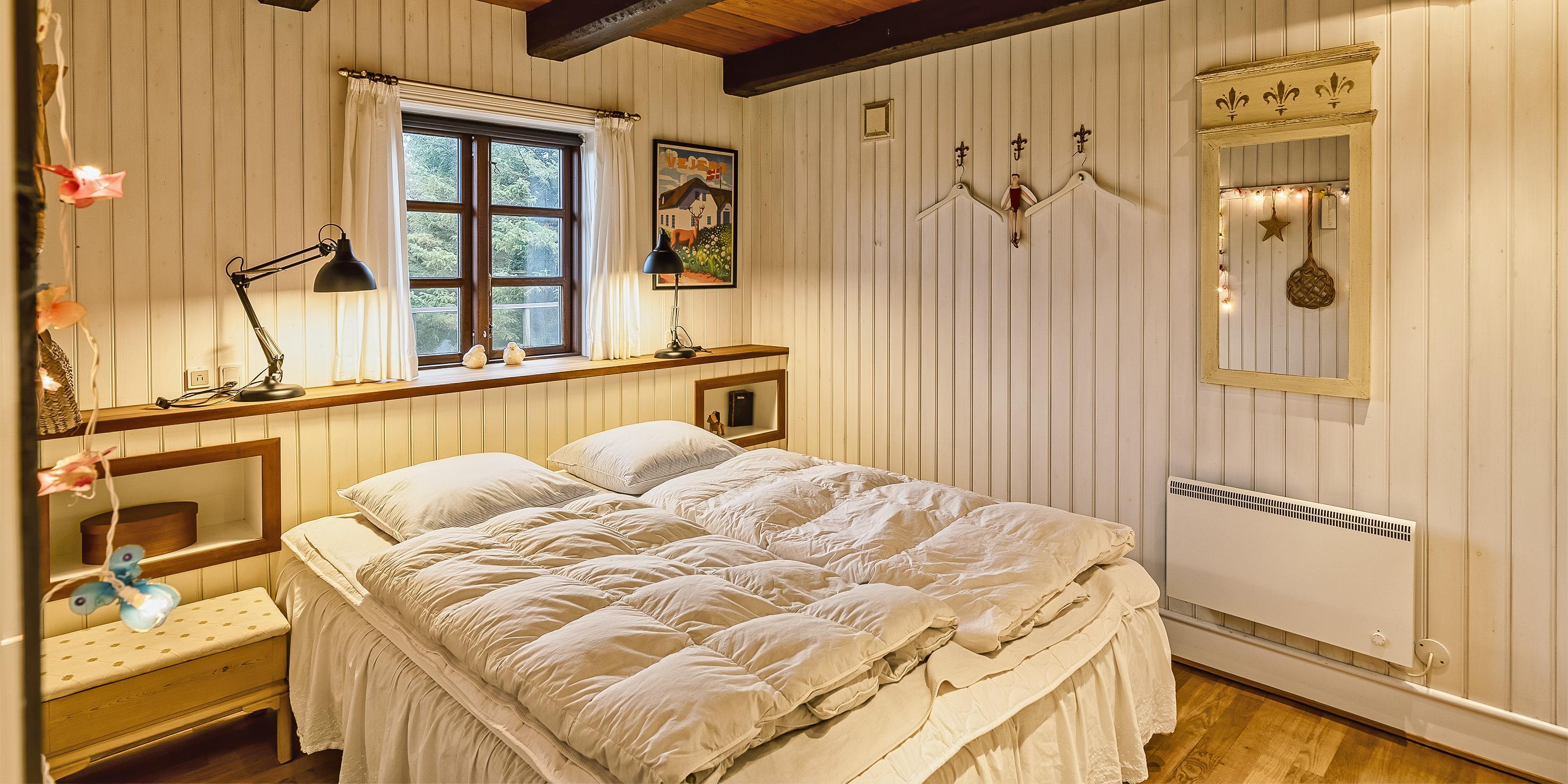 2 soveværelser. 1 med dobbeltseng 180x200 cm. 1 med to enkelt senge.