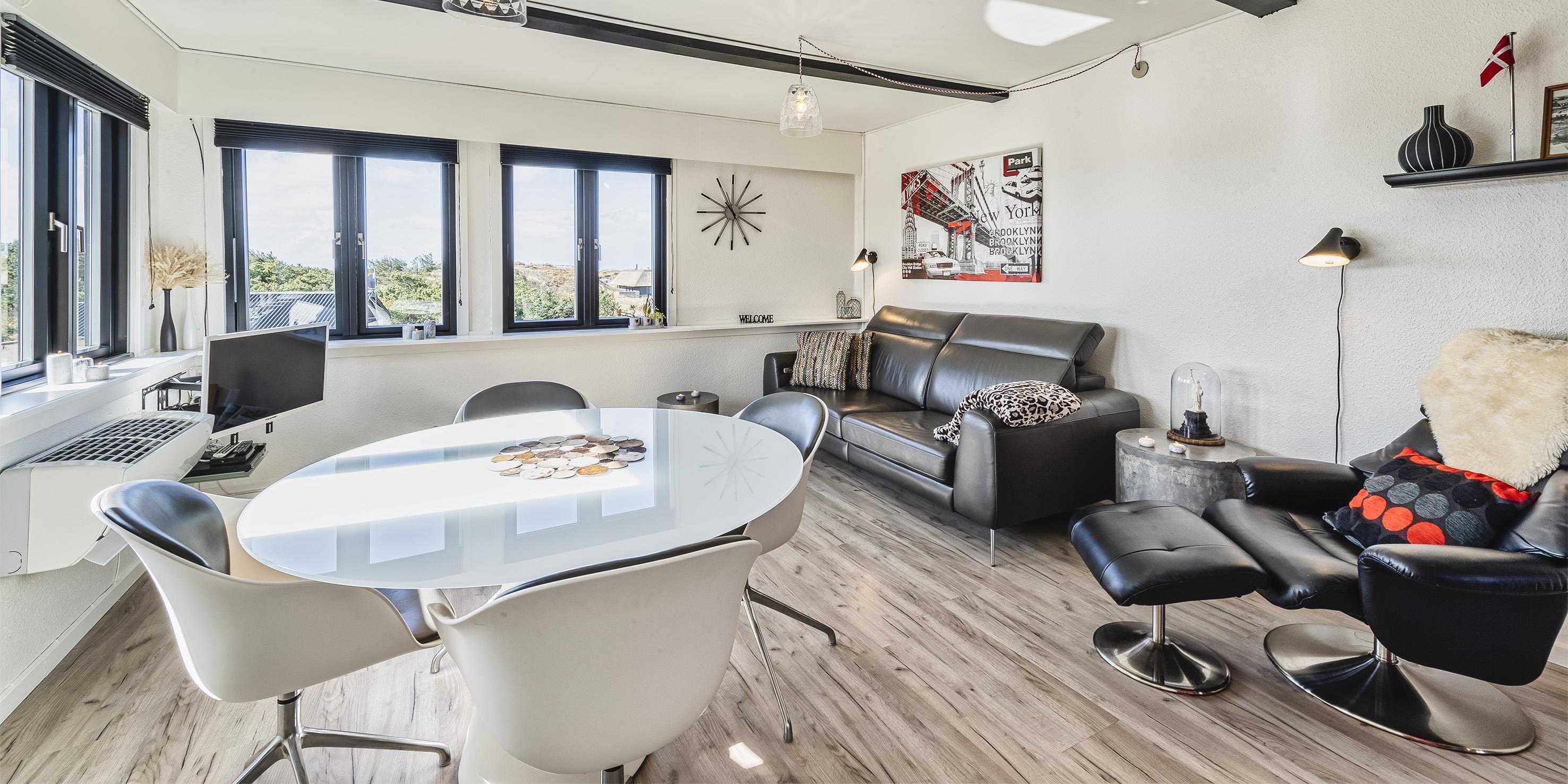 Smagfuldt og ny renoveret ferielejlighed til 4 personer, beliggende i den sydvestlige del af Vejers, ca. 200 meter fra stranden. Lejligheden består af køkken med opvaskemaskine, køle-/frysekombination og mikroovn. Stue med fjernsyn, danske programmer via Chromecast, parabol til udlandske programmer. Varmepumpe. Badeværelse med bruser/wc. 2 soveværelser: DS + DS. Trådløs Internet. Flere fælles terrasser. Byggeår 1937, renoveret 2015. Adgang til Oksbøl badeland i 2026.