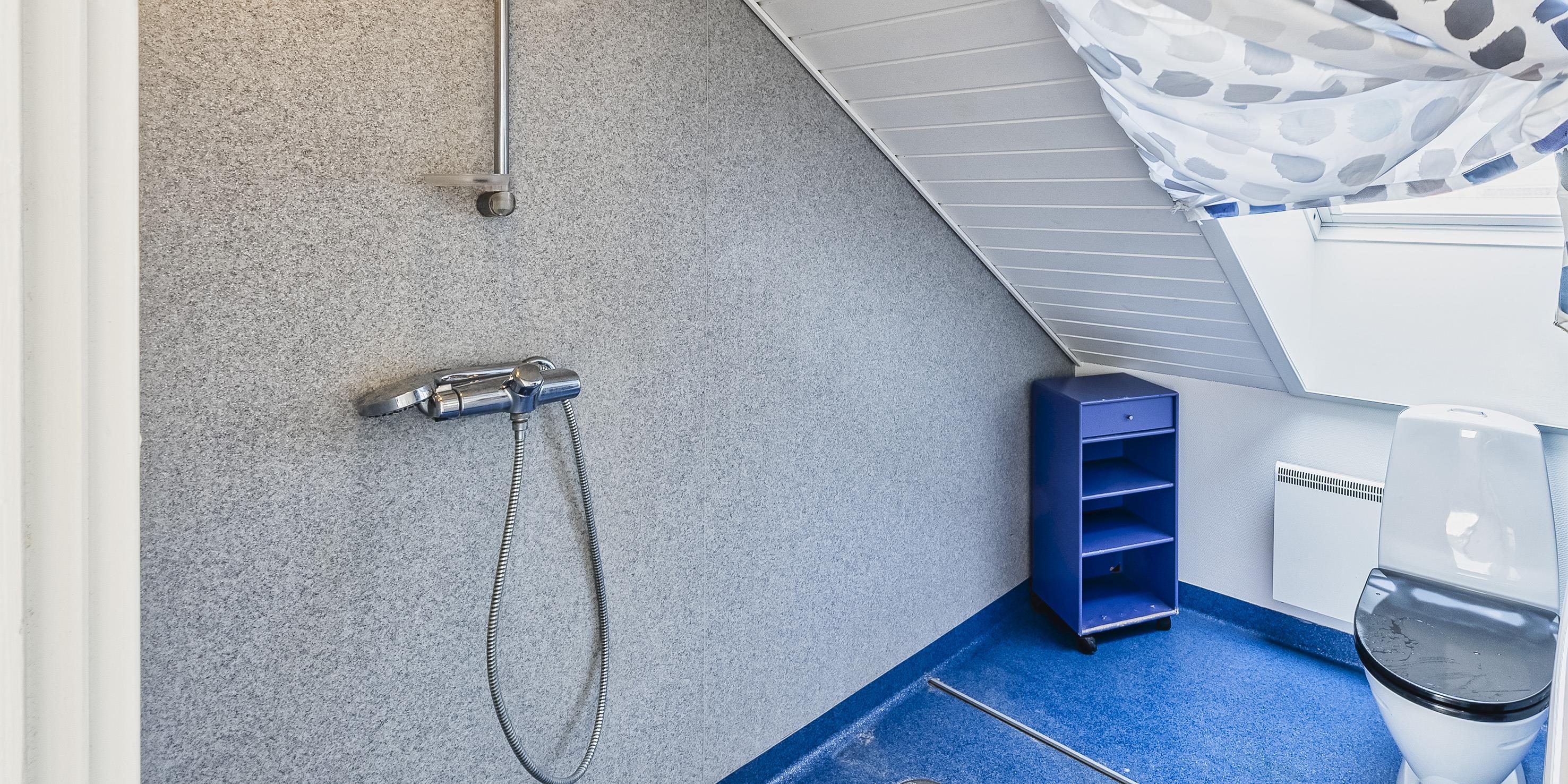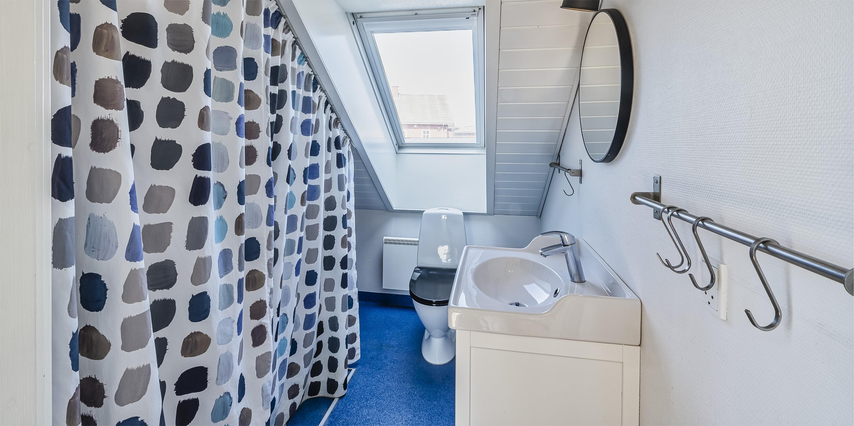 Bad med toilet, bruser og vask