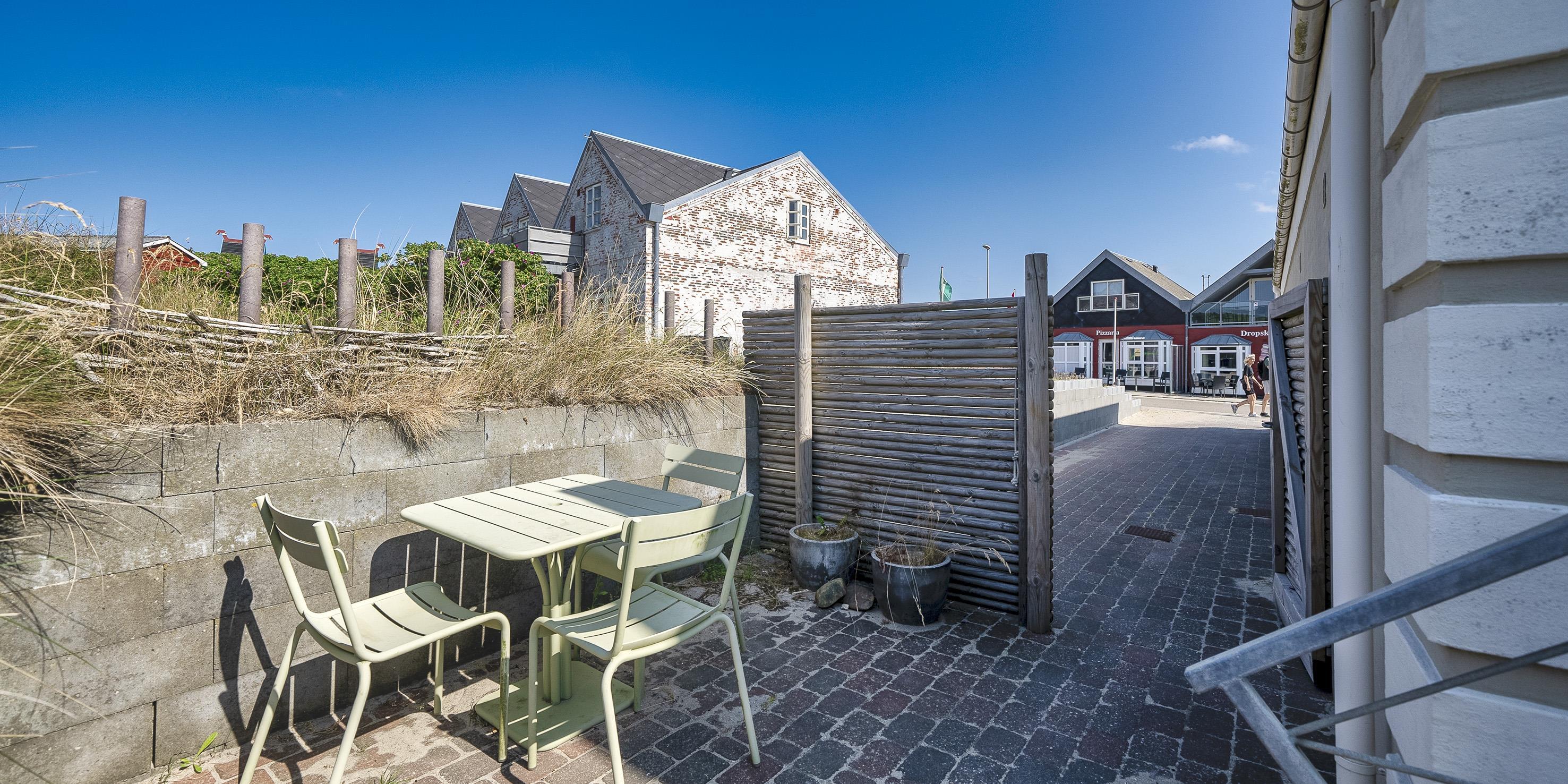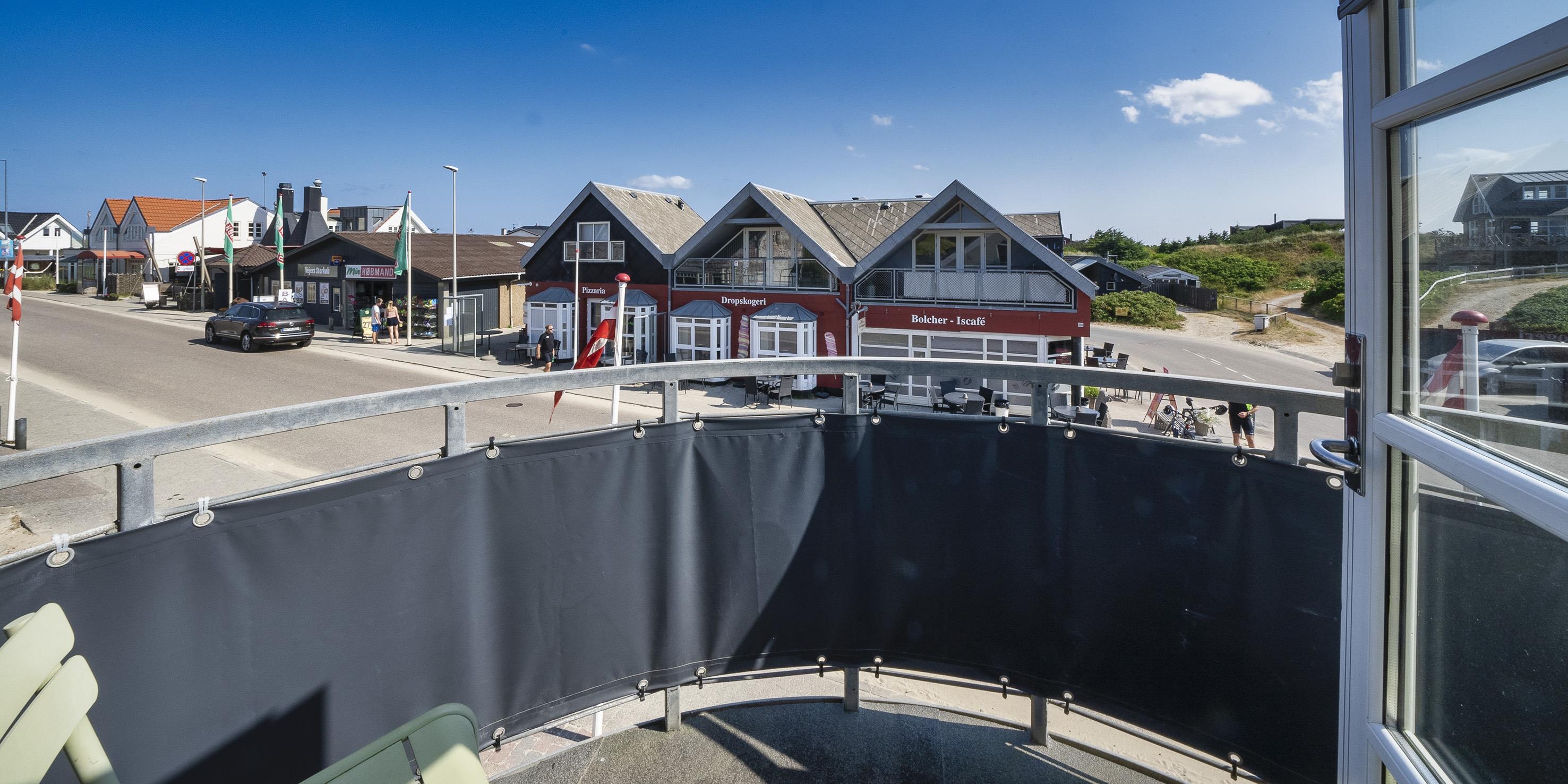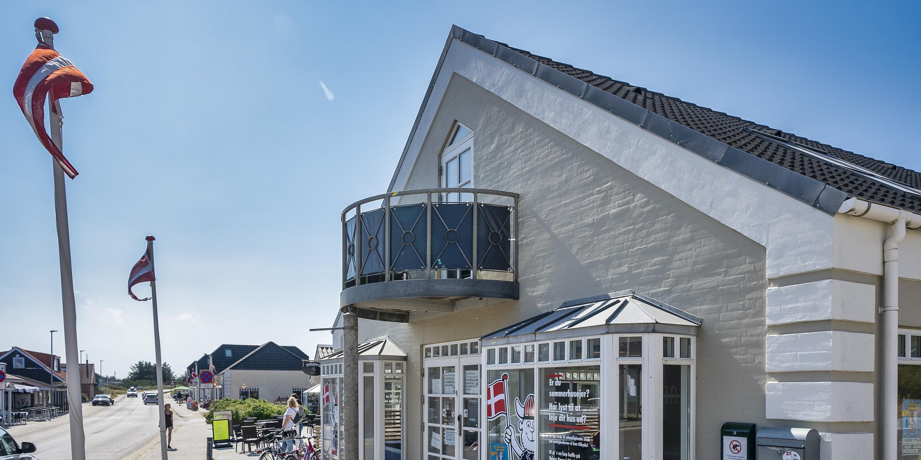 Lys lejlighed til 4 Vejers fan beliggende i hjertet af Vejers Strand over Butik Vivi. Lejligheden indeholder; Lejlighed ligger over hyggelegeland, derfor er det muligt at man kan høre noget dernede fra børn. Fra en ståltrappe udvendig til 1 sal. kommer man ind i en entre med garderobe og vaskemaskine/tørretumbler. Entreen er i åben forbindelse moderne køkken med fritstående Smeg køle-/fryseskab, induktionskogeplader, varmluftbageovn og opvaskemaskine. Lys spisehjørne i åben forbindelse med en dejlig lys stue med fjernsyn, parabol og stueantenne (DR programmer). 2 gode soveværelser: DS + DS. Badeværelse med bruser og toilet. Lejligheden råder over en balkon hvorfra pulsen i Vejers Strand kan følges på nært hold. Endvidere er der en mindre lukket gårdhave. Metaltrappe til 1. sal er med huller – derfor mindre egnet til store hunde. lejligheden er etableret i år 2017, kun badeværelset er fra 1997. Rygning er ikke tilladt.