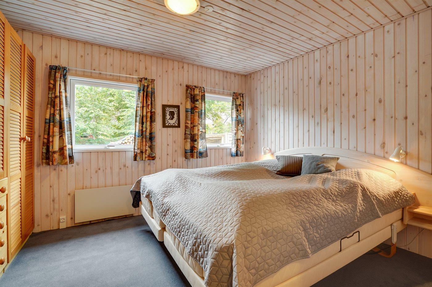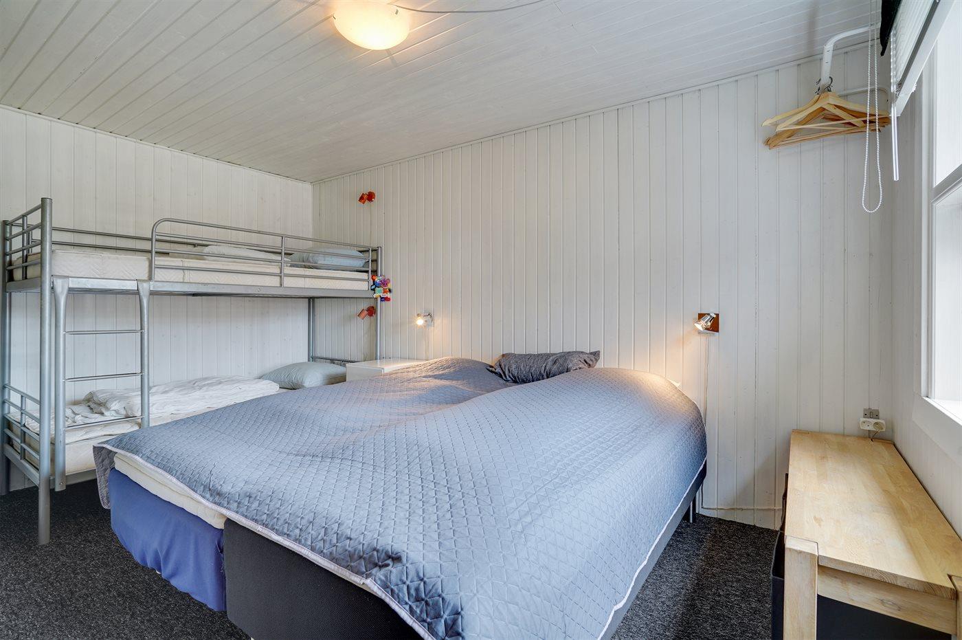 Der er i alt 3 soveværelser. Sovepladserne fordeler sig på: 4 sovepladser i dobbeltsenge. 2 sovepladser i enkeltsenge. 2 sovepladser i køjeseng. Derudover er der 1 stk. barneseng.