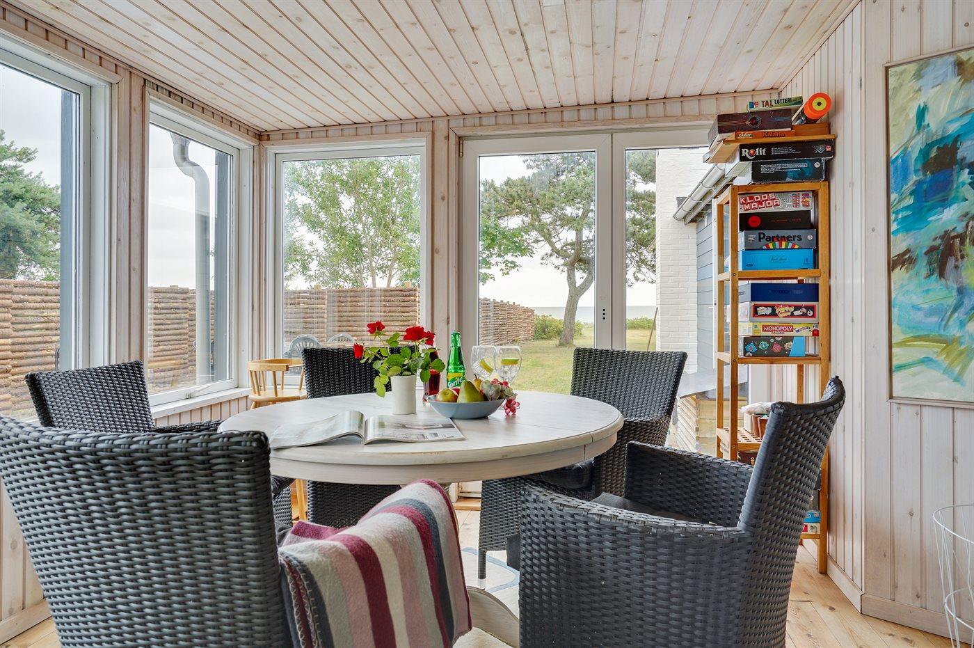 I det yderst populære område ved Vejlby Fed, ligger dette charmerende, store sommerhus i 1. række - lige ud til den skønneste badestrand. Både inde fra huset, og fra den store terrasse, har man udsigt ud over hele Båring Vig.