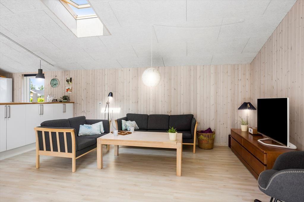 Når du træder indenfor i dette skønne sommerhus, mødes du af et stort og lyst køkkenalrum, der straks inviterer til hyggelige stunder med madlavning og samvær. Køkkenet er moderne og veludstyret, og der er god plads til at tilberede dagens måltider, som I kan nyde ved spisebordet i alrummet. Et ovenlysvindue kaster et dejligt lys ind i rummet, og den rummelige stue indbyder til afslapning foran tv’et eller hyggelige samtaler med en kop kaffe. På de køligere dage kan varmepumpen sørge for, at I stadig kan nyde komforten i sommerhuset.