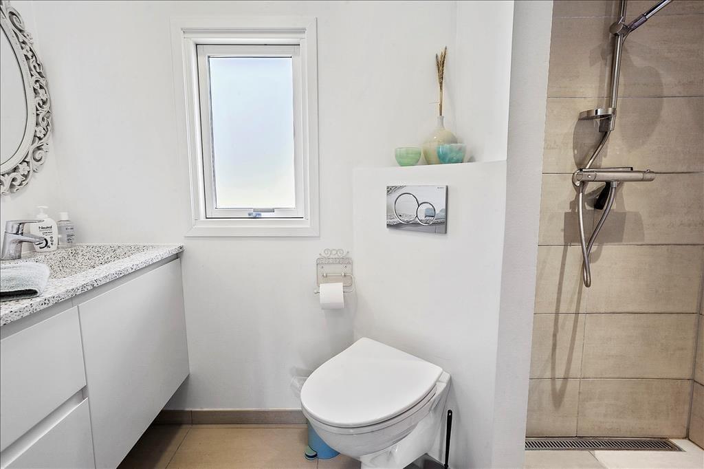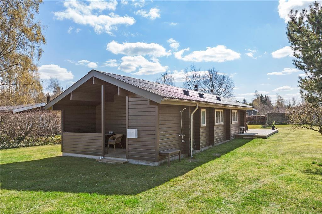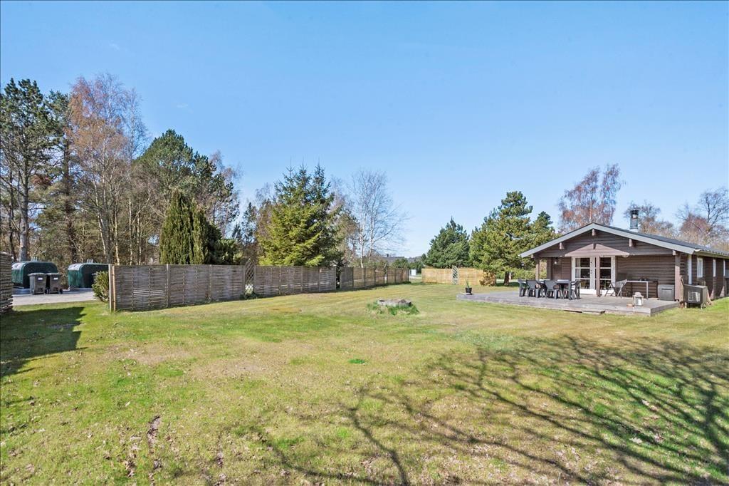 Sommerhusets store træterrasse er et ideelt sted at tilbringe solrige dage. Terrassen er omgivet af en grøn græsplæne, hvor børnene kan lege, mens du nyder en god bog i skyggen eller forbereder maden på grillen. Med masser af plads er det nemt at samle hele familien til lange aftensmåltider under åben himmel, og hvis du foretrækker en rolig morgenstund, kan du nyde din kaffe på den lille overdækkede terrasse ved indgangsdøren. Udebruseren tæt ved huset gør det også nemt at skylle sandet af efter en tur på stranden, som ligger kun 200 meter væk. Her kan du slappe af i solen, bade i det klare vand eller tage en forfriskende gåtur langs kysten.