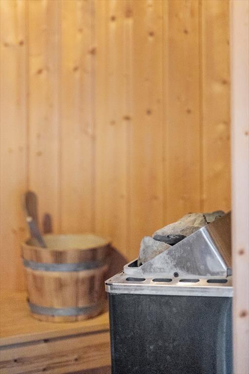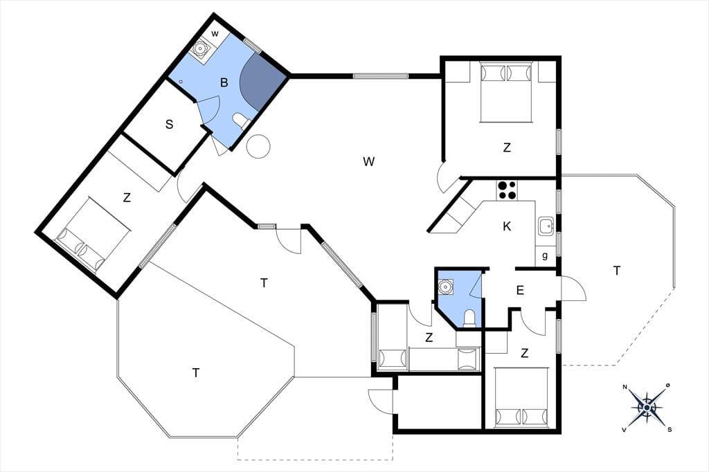 Når du træder indenfor i sommerhuset, mødes du af en lys og rummelig TV-stue med en dejlig brændeovn, der indbyder til hyggestunder på kølige aftener. Her kan du samle familien til en filmaften eller nyde en god bog med knitrende ild i baggrunden. De store vinduer sørger for et skønt lysindfald i rummet, hvor spisepladsen også er placeret, så I kan nyde feriens måltider sammen. Køkkenet ligger i åben forbindelse med stuen, og både køkken og stue har alt, hvad du har brug for til en behagelig ferie. Når du trænger til ekstra afslapning, kan du forkæle dig selv i husets spabad eller sauna, hvor du kan læne dig tilbage og koble helt af.