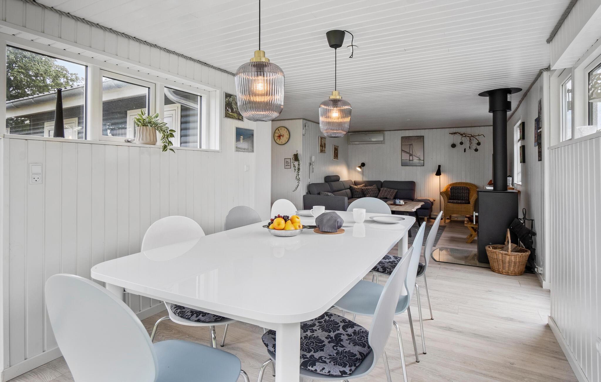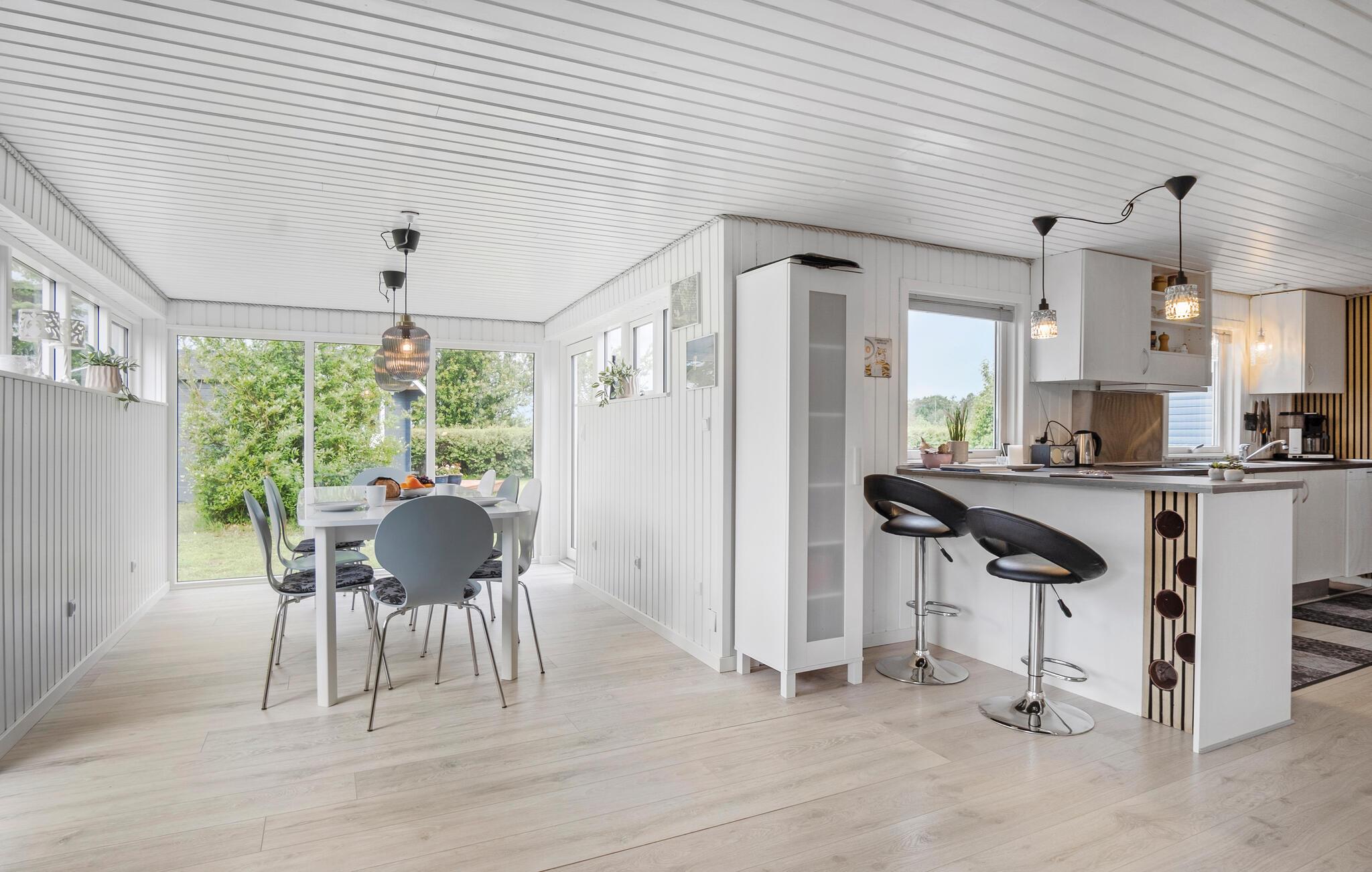 Sæt hverdagen på pause og tag på en tur til Båring Vig, hvor I finder dette skønne sommerhus i Vejlby Fed. Her får I en hyggelig base med alle de faciliteter, I har brug for, behagelige indretningsløsninger og gode rammer til at slappe af. Begynd dagene i det lyse køkken, hvor I har udsigt til den grønne grund og rund dagene af med sofahygge i stuen, hvor I kan planlægge morgendagens aktiviteter, mens ilden knitrer i brændeovnen.