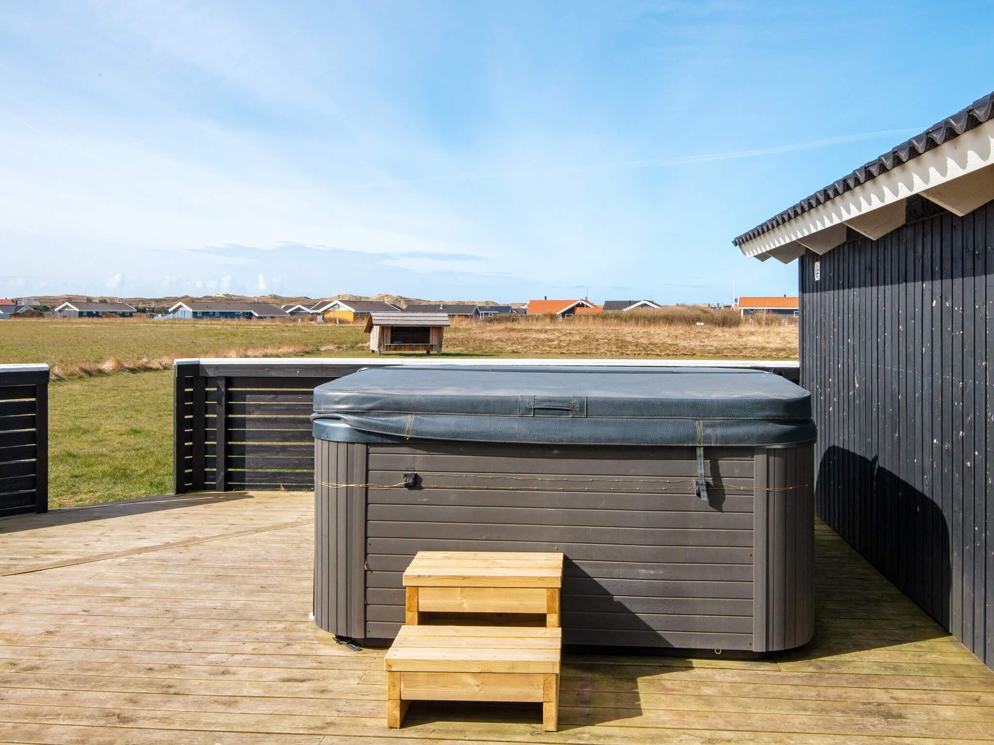 På den store træterrasse står det syv-personers store udendørs spabad, hvorfra der er udsigt mod Ferring Sø samt Bovbjerg Fyr. Terrassen er lukket, så I kan sidde i læ og nyde stilheden, som dog kan blive afbrudt af havets bølger, der slår mod kysten. Der er en shelter i haven på 2 x 2,5 meter til at overnatte i, hvis man er til det. Der er el oplader til bil i sommerhuset samt solceller.