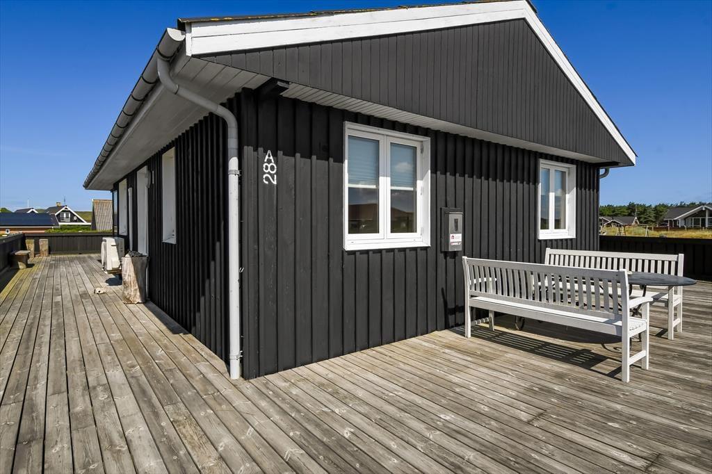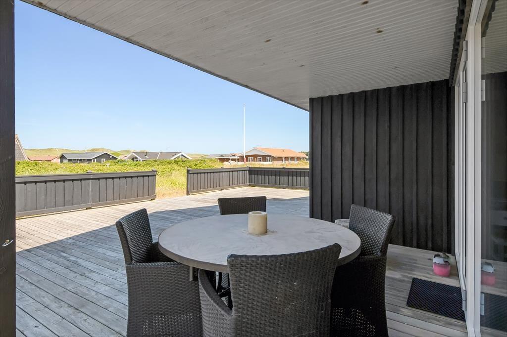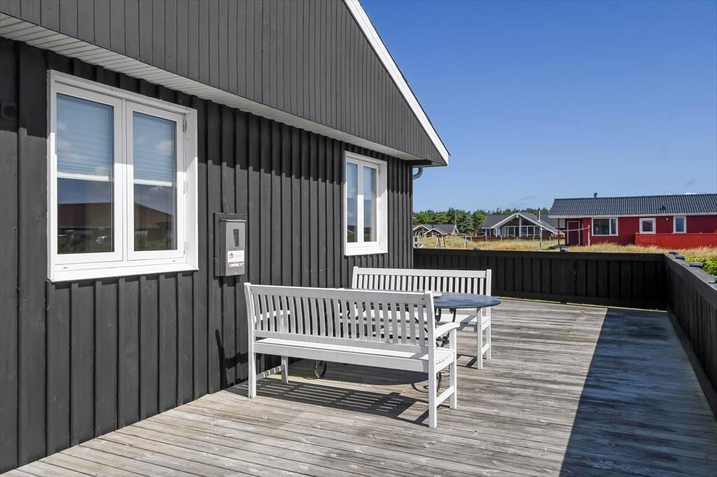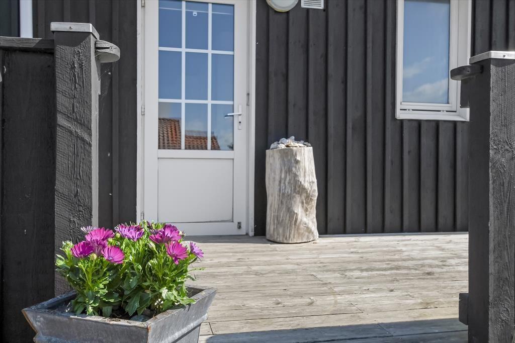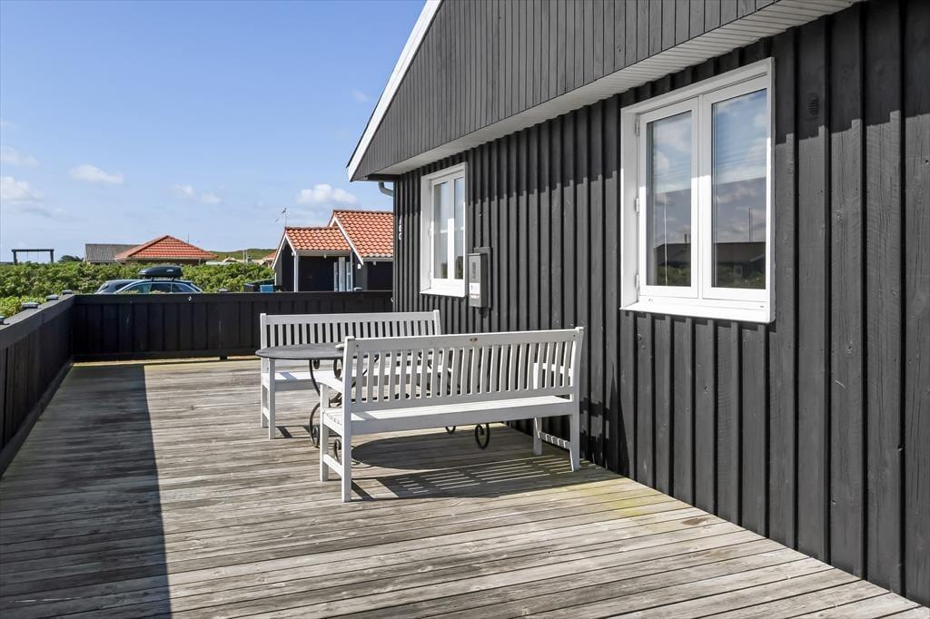 Sommerhusets store terrasse er en gave til udelivet. Her kan du lade solen varme kinderne fra morgenstunden, mens du drikker dagens første kop kaffe, og når eftermiddagen melder sig, kan du finde dig til rette i liggestolen med en god bog. Terrassen er perfekt til grillmiddage og lange sommeraftener under åben himmel, og fordi huset ligger i læ, kan du ofte nyde udelivet langt ud på aftenen. Haven byder også på god plads til leg og afslapning – og da det er tilladt at tage hund med, kan familiens bedste ven trygt få lov at være med i det hele. Her er det nemt at trække stikket og lade op, mens naturens ro og havets nærhed sætter scenen for dine ferieminder.