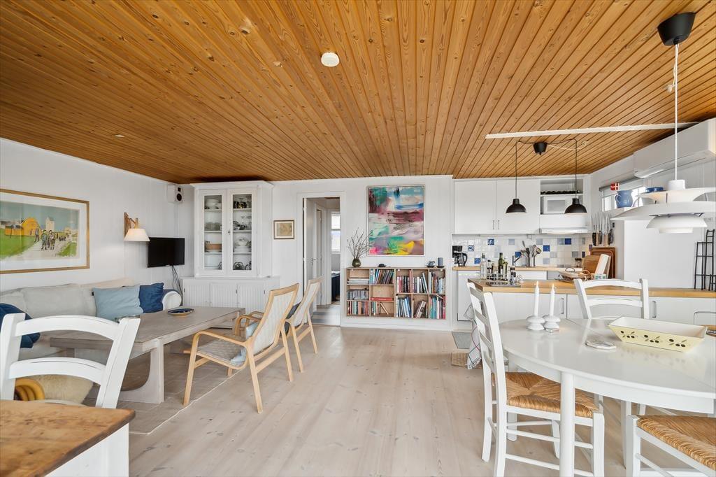 Når du træder ind i sommerhuset, mødes du af en lys og indbydende atmosfære, hvor det er let at finde sig til rette. Indretningen er enkel og gennemført med fokus på hygge og funktionalitet – præcis som et klassisk dansk sommerhus skal være. Her er plads til både ro og samvær, og stuen danner det naturlige centrum med sine store vinduer, hvor lyset strømmer ind og binder ude og inde sammen. Det åbne opholdsrum med køkken og spiseplads gør det nemt at være sammen, uanset om I laver mad, spiller spil eller nyder en kop kaffe i sofaen. Sommerhuset er ideelt til par, små familier eller venner, der søger en ferie, hvor enkelhed, ægte charme og nærvær går hånd i hånd.