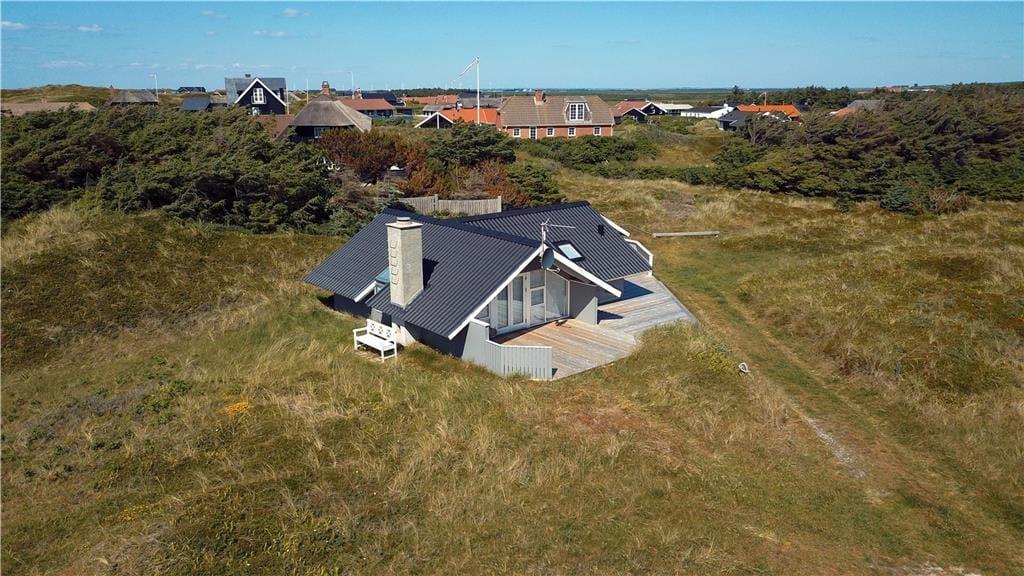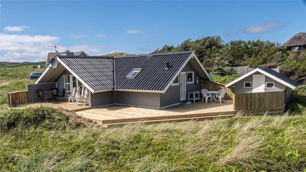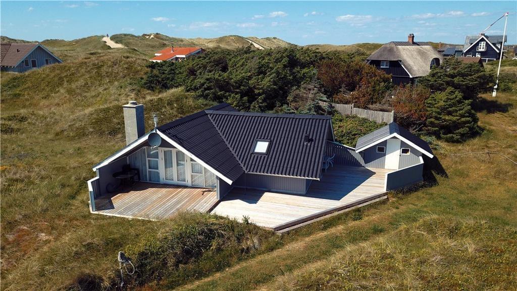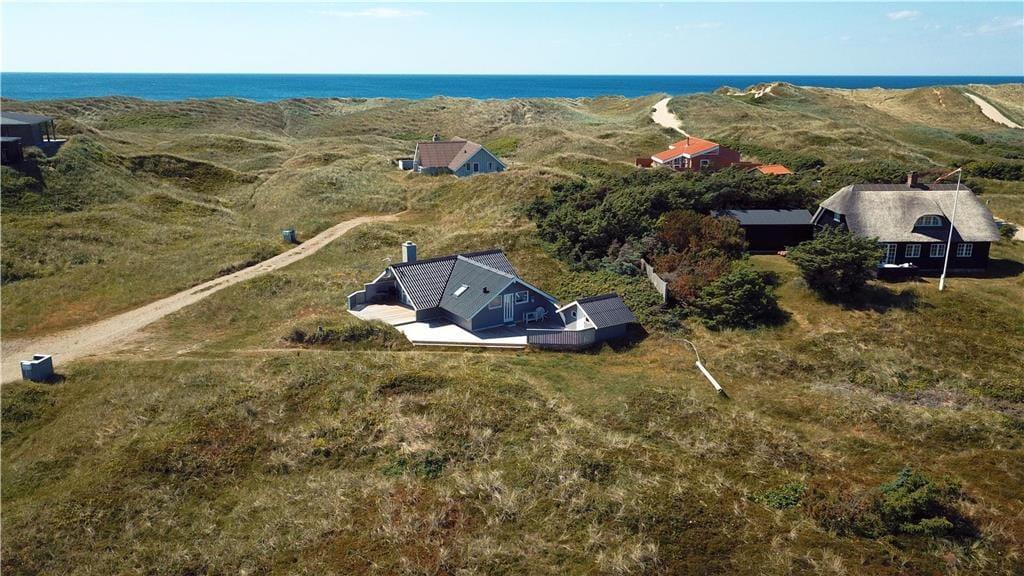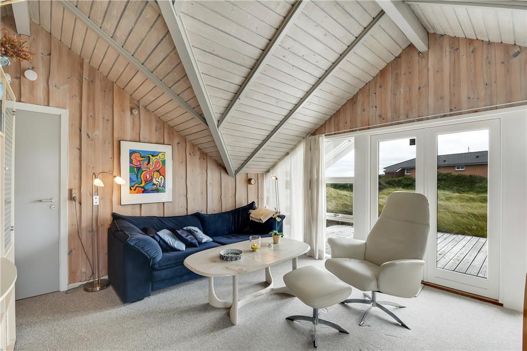 Sommerhuset ligger på en naturgrund med masser af klitplanter og vestjysk charme, og udenfor venter flere gode kroge, hvor du kan læne dig tilbage og nyde solen og vinden fra havet. Med terrassedøre direkte ud fra stuen er det nemt at lade inde og ude smelte sammen – uanset om du vil sidde i læ med en god bog, grille til aften eller tage hunden med på en lille opdagelsestur i det bakkede klitterræn. Her kan børnene også finde på lege mellem tuer og marehalm, mens de voksne nyder udsigten og den særlige stilhed, der præger området. Og med stranden så tæt på er det oplagt at tage spontane badeture, samle sten i strandkanten eller blot gå en lang tur og lade tankerne flyve.