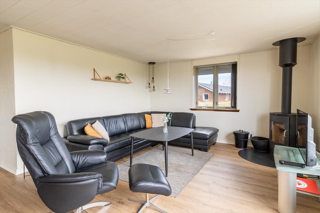 Det første, der møder dig, er en lys og venlig indretning, som med det samme inviterer dig til at slappe af. Den åbne stue danner et naturligt samlingspunkt med sin hyggelige brændeovn, der spreder varme og knitrende hygge, når vinden suser udenfor. Fra det veludstyrede køkken kan du nemt være en del af snakken, mens du forbereder måltider – og med plads til op til otte personer er der god mulighed for, at to familier eller en større vennegruppe kan nyde ferien sammen. Badeværelset er udstyret med indendørs spa, så du kan forkæle dig selv med et varmt, boblende bad efter en lang dag i naturen eller ved stranden. Alt i huset er præget af kvalitet og velovervejede løsninger, som gør det let at føle sig hjemme med det samme.