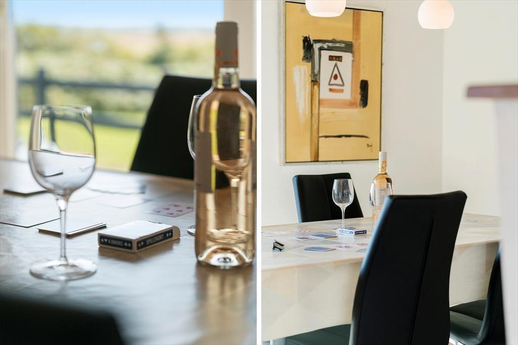 Sommerhuset er lyst og indbydende med et åbent køkken, der glider naturligt over i en hyggelig stue. Her kan du nyde en betagende udsigt over det omkringliggende landskab og den private sø gennem de store vinduer, mens du slapper af i komfortable møbler. De to lyse soveværelser er indrettet med henblik på en god nats søvn, og det moderne badeværelse fuldender den behagelige atmosfære. Som en lejlighed i et dobbelthus tilbyder dette sted en perfekt kombination af privatliv og nærhed til familien eller vennerne, hvis I lejer begge boliger, se hus ID 115.