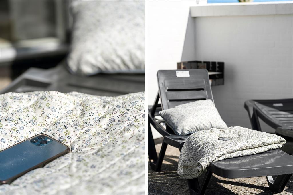 Den 20 m² store terrasse er udstyret med havemøbler, liggestole og en grill, hvilket gør det oplagt at tilbringe dagen udendørs. Her kan du nyde morgenkaffen med udsigt til den idylliske sø, lade børnene lege frit på den store naturgrund eller tilberede aftensmaden på grillen, mens solen går ned i horisonten. Den fredfyldte atmosfære og de naturskønne omgivelser skaber en perfekt ramme for afslapning og samvær.