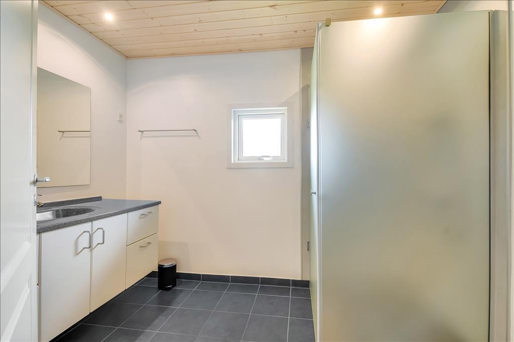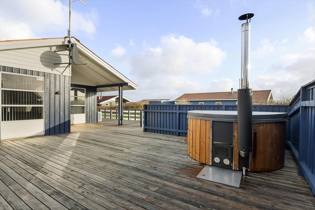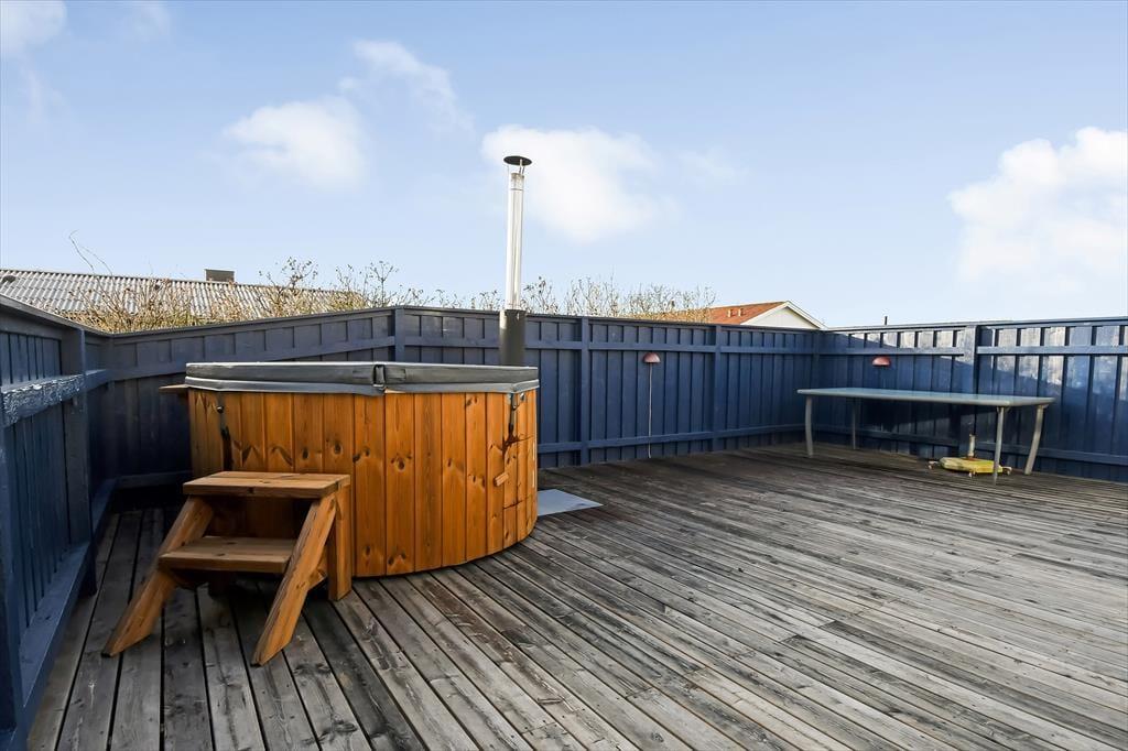 Udenfor venter en stor og grøn have, hvor børnene har god plads til at løbe og lege, mens hunden trygt kan være med. Her kan du nemt forestille dig at læne dig tilbage i liggestolen med en god bog, mens solen varmer kinderne og fuglene kvidrer i baggrunden. Terrassen er delvist overdækket og udstyret med havemøbler, så du kan nyde måltiderne i det fri – uanset om det er en hurtig morgenmad i solens første stråler eller en lang grillaften med hele familien. Som prikken over i’et står vildmarksbadet klar til at forkæle dig med varme og velvære, når dagen går på hæld. Forestil dig at sidde i det dampende vand med et glas vin i hånden og kigge op på stjernehimlen – en ferieoplevelse, der er svær at slå.