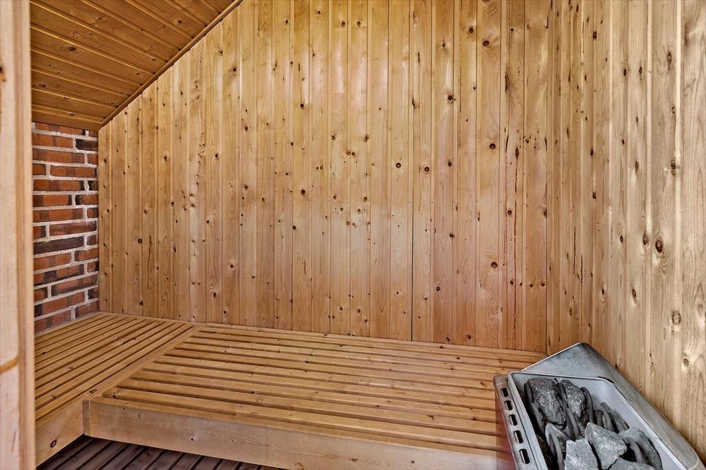 Indenfor finder du en hjemlig atmosfære, hvor stuen med brændeovn danner rammen om hyggelige aftener med familien. Det åbne køkken gør det nemt at tilberede måltider, mens samtalen flyder frit mellem køkken og stue. Huset har tre soveværelser, der kan rumme hele familien eller vennegruppen, og badeværelset er udstyret med en lille sauna, hvor du kan slappe af og lade varmen løsne op for hverdagens spændinger.
