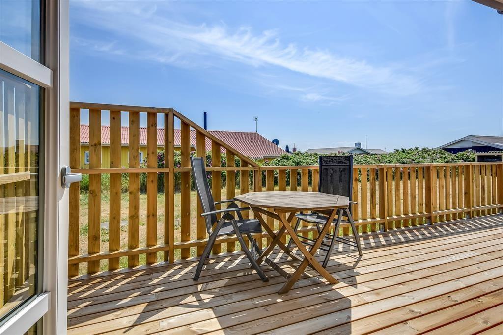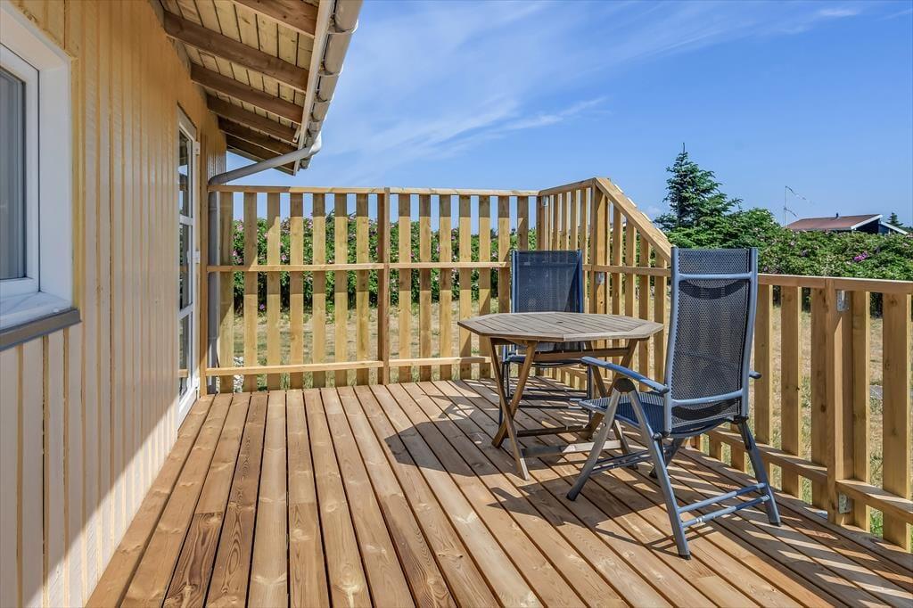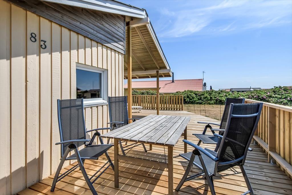 Udelivet er noget helt særligt her på Vejlby Klit 83. Den skønne terrassen rummer plads til både leg og afslapning. Her kan du begynde dagen med en kop kaffe i morgensolen, og når eftermiddagen melder sig, er det oplagt at finde solstolen frem og lade tankerne drive. Hvis vinden blæser lidt fra vest, giver terrassens afskærmning læ, så du stadig kan nyde udelivet i fulde drag. Aftenerne kan passende rundes af med et godt måltid fra grillen og lyden af måger i det fjerne – eller måske en rolig stund med et glas vin under den klare stjernehimmel.