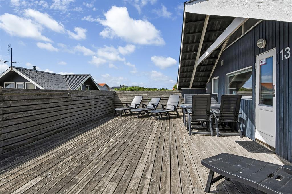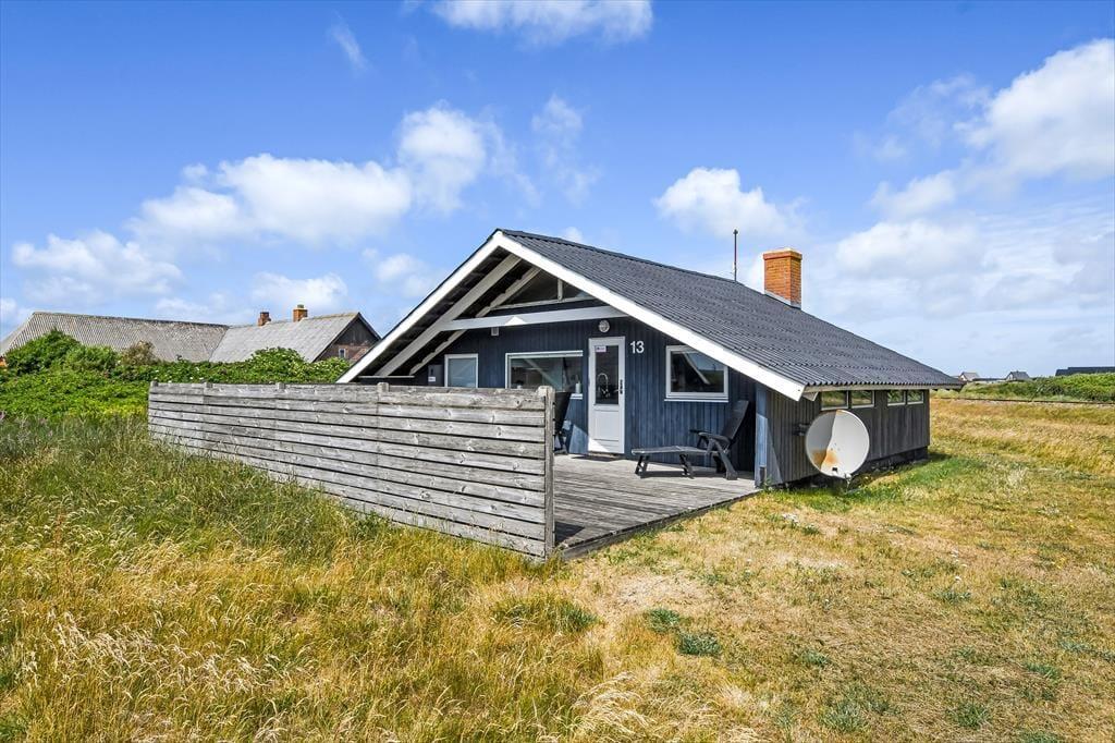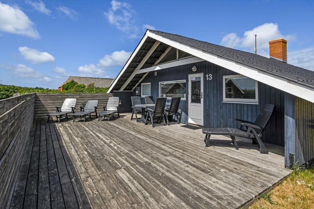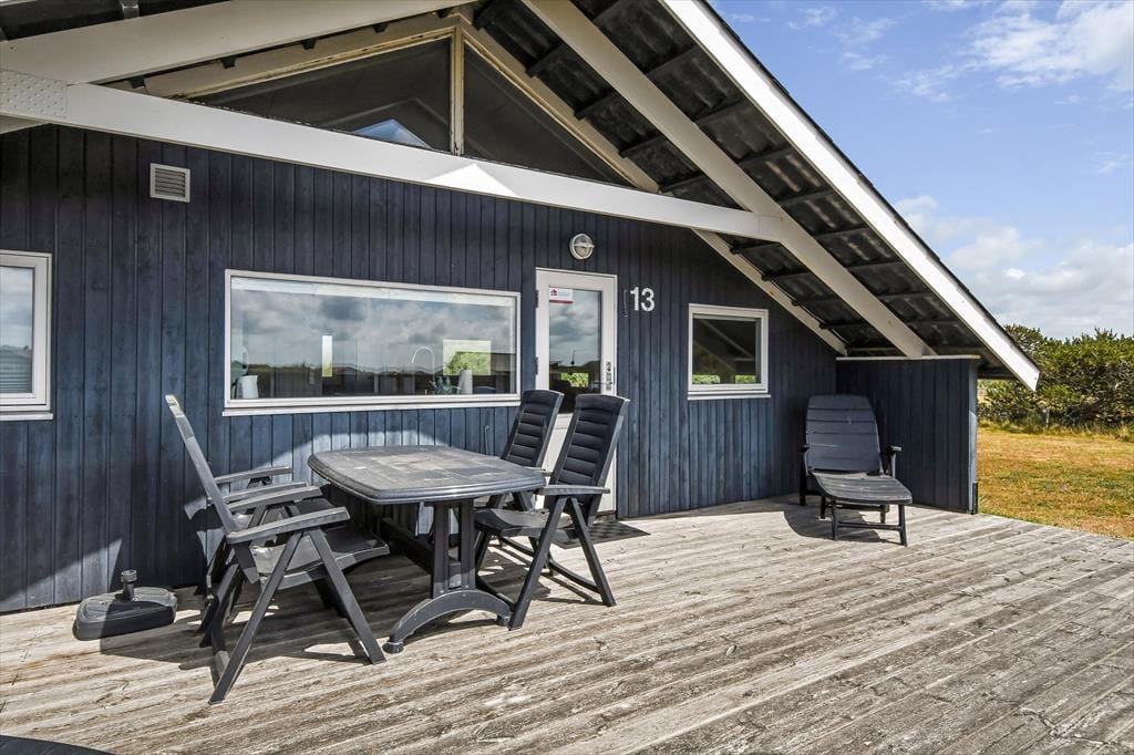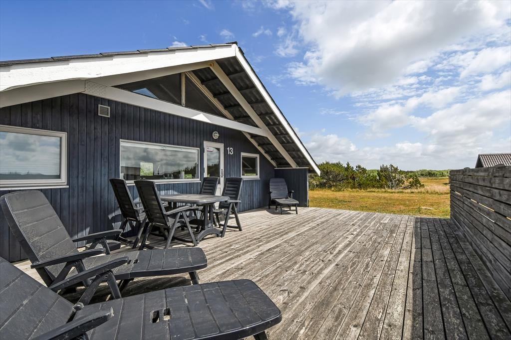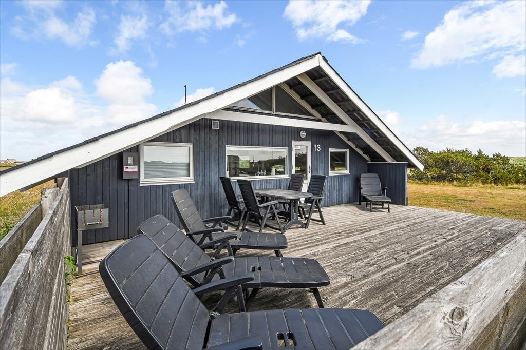 Det er oplagt at tilbringe mange timer udendørs, når du holder ferie på Barendsvej 13. Sommerhuset har en stor og indbydende terrasse, hvor du kan slå dig ned med morgenkaffen eller lade grillen gløde, mens solen langsomt går ned bag klitterne. Her er god plads til både solbadning, fællesspisning og afslapning – måske endda med en eftermiddagslur i en havestol. Når børnene leger på græsset eller når fuglene synger deres morgenserenade, er det svært ikke at mærke ferieglæden helt ned i maven. Om aftenen kan du tænde stearinlys og nyde roen, der sænker sig over det lille sommerhusområde – det føles næsten som at have sin egen lille oase tæt på hav og hede.