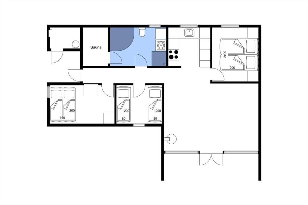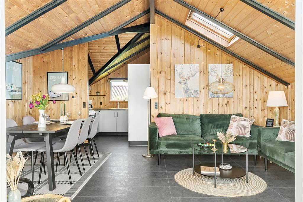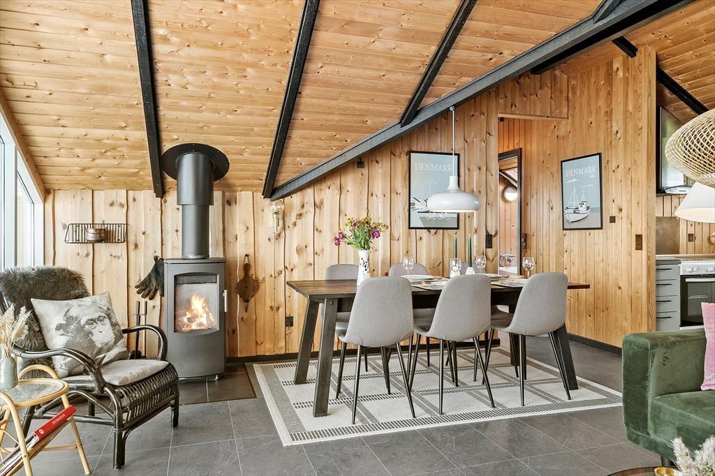Indenfor venter et lyst og hyggeligt indrettet sommerhus, der straks giver dig følelsen af hjemlig hygge og ferieidyl. Stuen er husets naturlige samlingspunkt, hvor du kan slappe af i sofaen med en god bog eller en hyggelig film. Store vinduer sørger for, at dagslyset strømmer ind, og på kølige dage kan du tænde op for varmen og nyde stemningen i de komfortable omgivelser. Køkkenet er veludstyret og ligger i åben forbindelse med opholdsområdet, så feriemåltiderne kan tilberedes i selskab med resten af familien. Med plads til seks personer er der rig mulighed for, at både familie og venner kan nyde en skøn ferie sammen her.