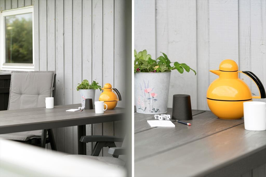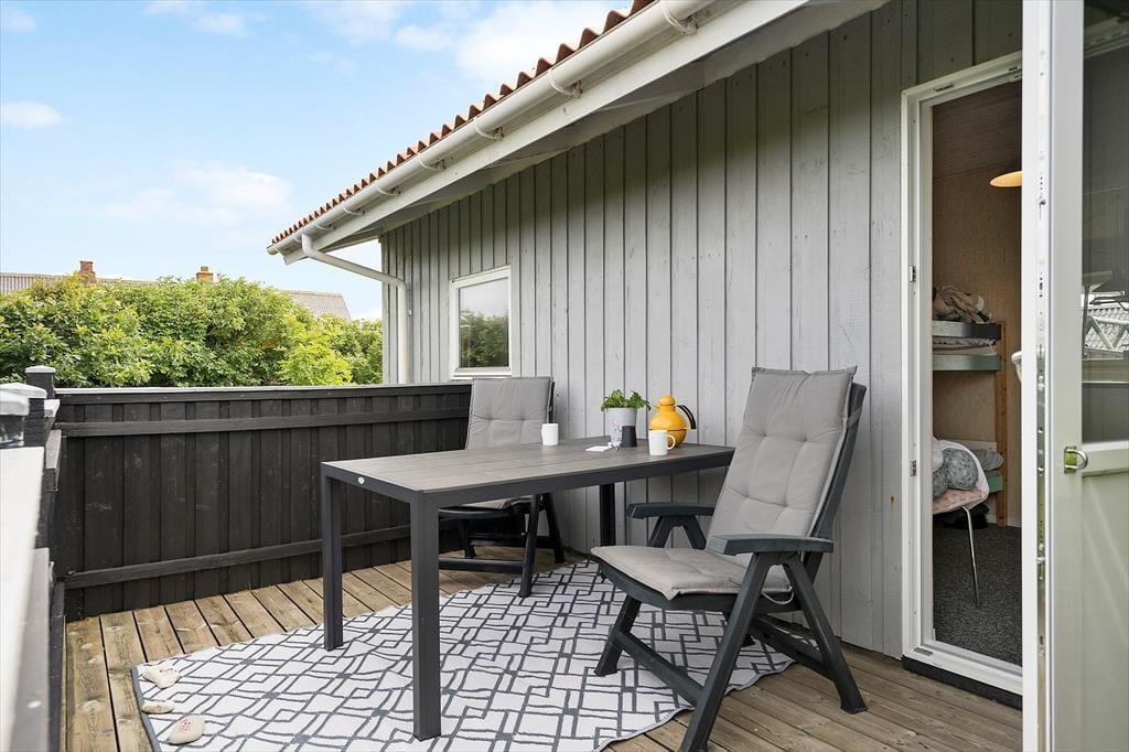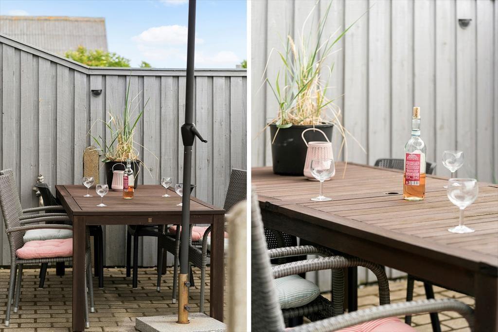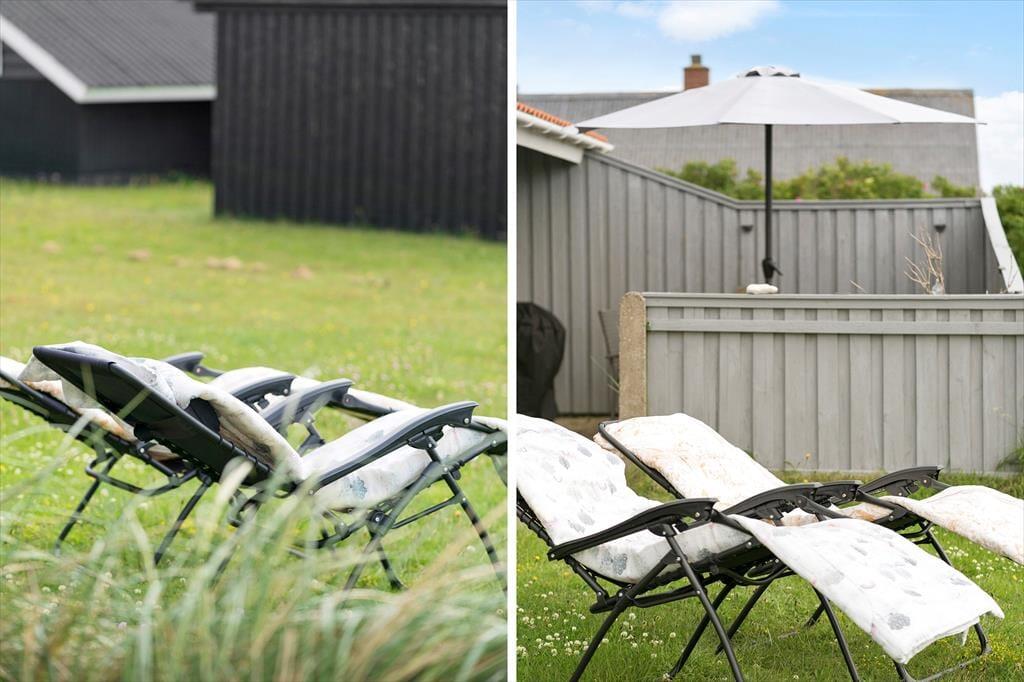 Sommerhusets udearealer er lige så indbydende som det, du finder indenfor. Der er både en åben og en overdækket terrasse med havemøbler og grill, så du altid kan finde en god siddeplads – i solen eller i læ. Her kan du nyde lange sommeraftener, tænde op i grillen og lade roen sænke sig over området, mens solen går ned over klitterne. Haven rummer også gode legemuligheder for børn med både gynge og sandkasse, og den grønne plæne indbyder til boldspil og leg. Du får altså masser af plads til at nyde udelivet – uanset alder og ferieform.
