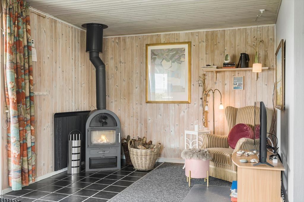 Indenfor venter et charmerende og velholdt sommerhus, hvor du straks mærker følelsen af ferie. Den åbne planløsning skaber et dejligt samlingspunkt, hvor køkken og stue smelter sammen i ét hyggeligt rum. Her er det oplagt at samles omkring dagens måltider, en god kop kaffe eller brætspil, når vinden suser udenfor. Brændeovnen i stuen sørger for varme og ekstra hygge – især på kølige dage, hvor ilden knitrer og skaber den helt rette feriestemning. Indretningen er lys og enkel, og du kan hurtigt føle dig hjemme, uanset om du er her for en weekend eller en hel uge.
