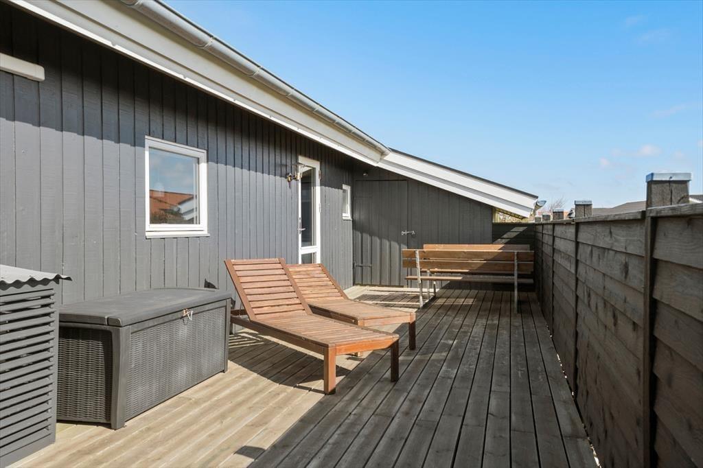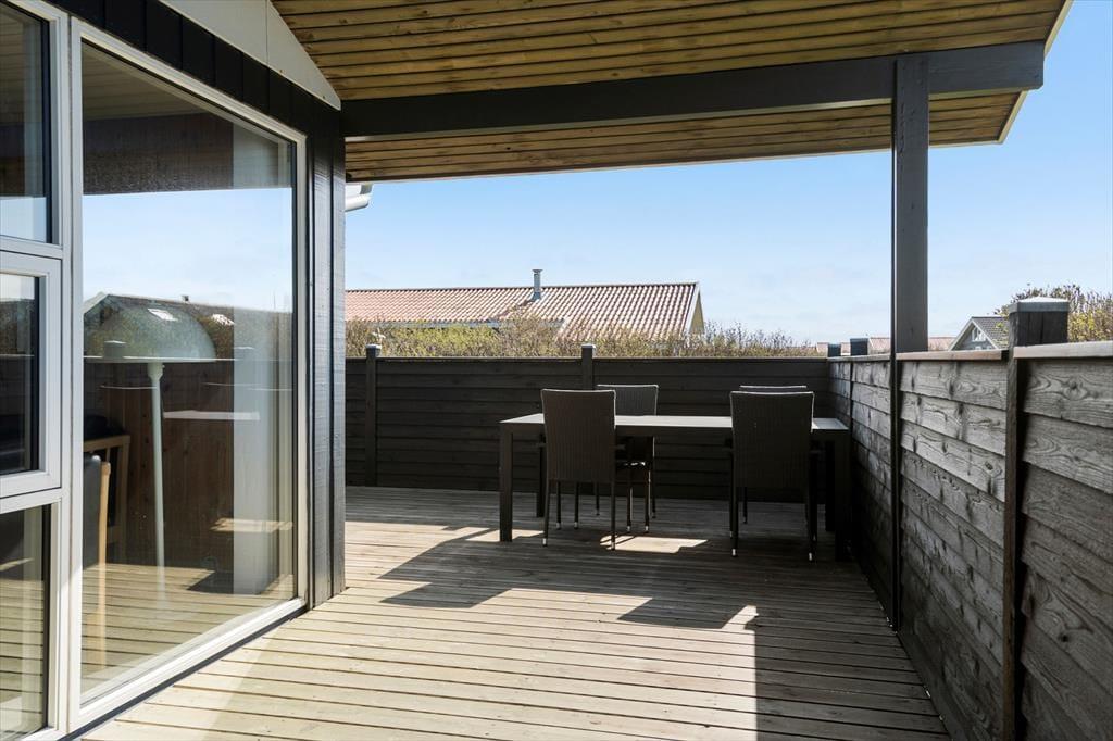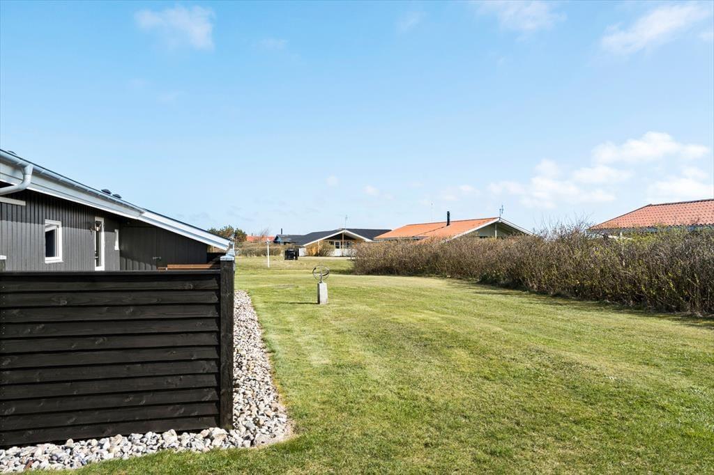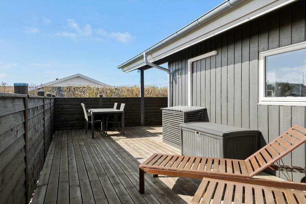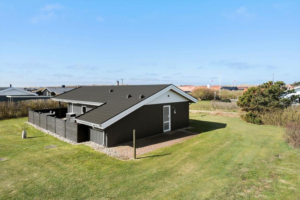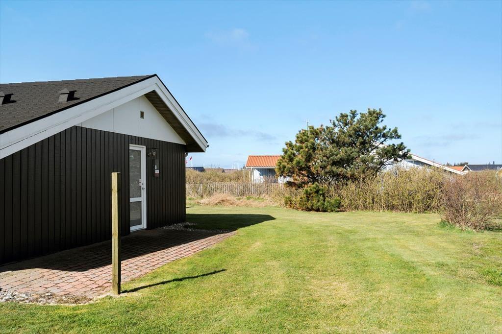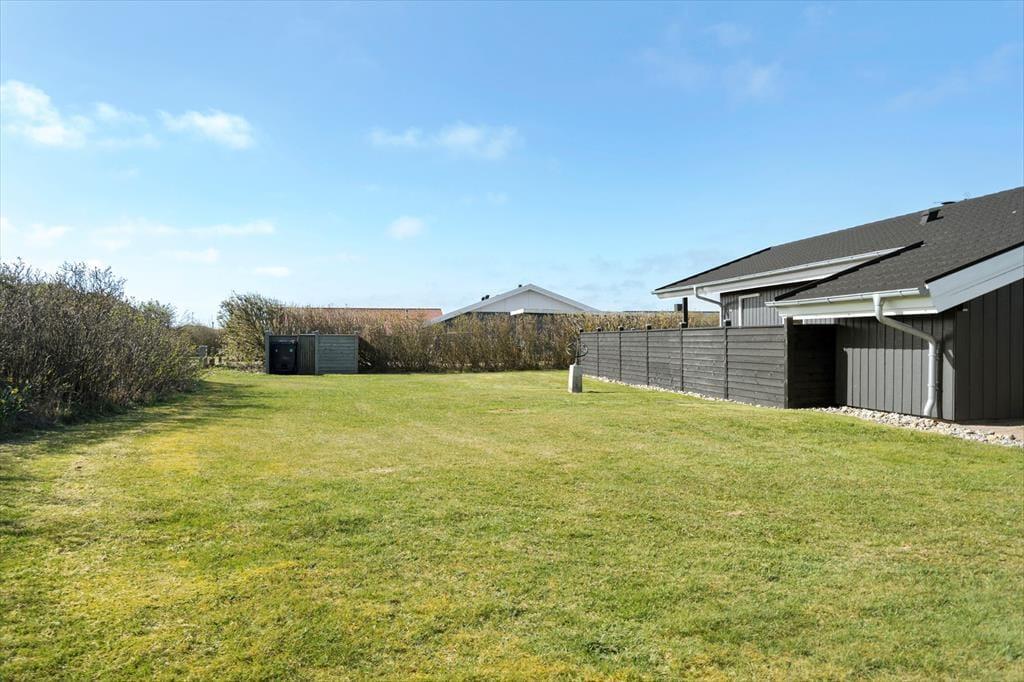 Udendørs inviterer sommerhuset til afslapning og samvær i det fri. En rummelig terrasse breder sig ud foran huset og giver dig god mulighed for at finde en solrig plads med en kop kaffe eller slå dig ned i læ og nyde aftensmaden ved grillen. Her kan du lade dagen glide over i aftenens ro med udsigt til det rolige sommerhusområde og måske høre en måge kalde i det fjerne. Har du børn med på ferien, er haven et godt sted til leg og boldspil – og med kort afstand til både stranden og områdets legeplads er der rig mulighed for at få brugt energien. Det er det ideelle sted at nyde sommerens lange dage – med sol i ansigtet og sand mellem tæerne.