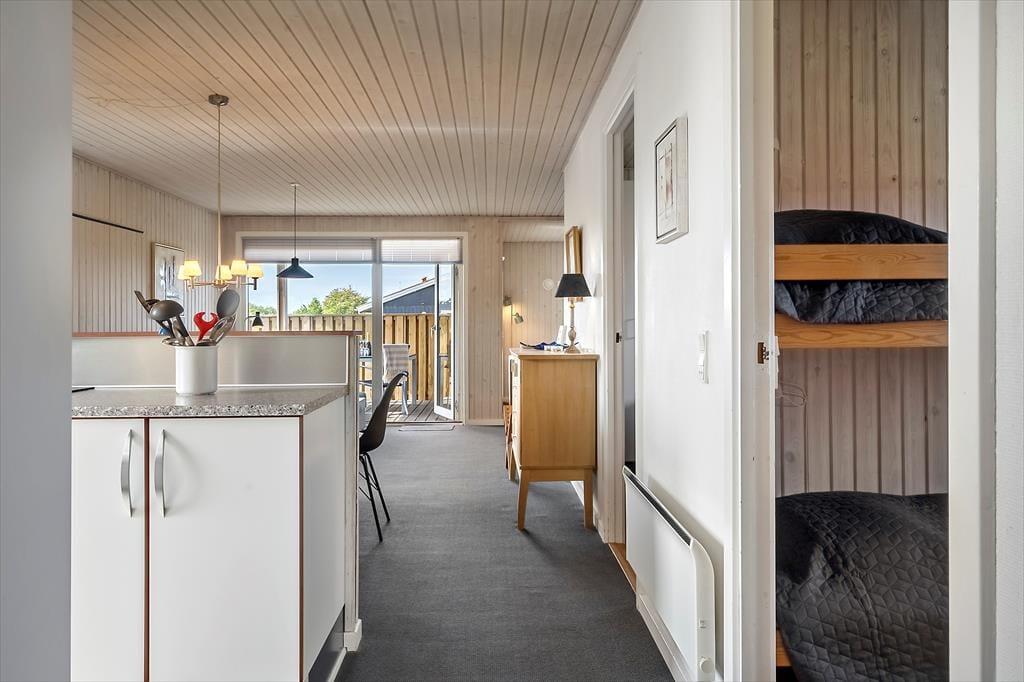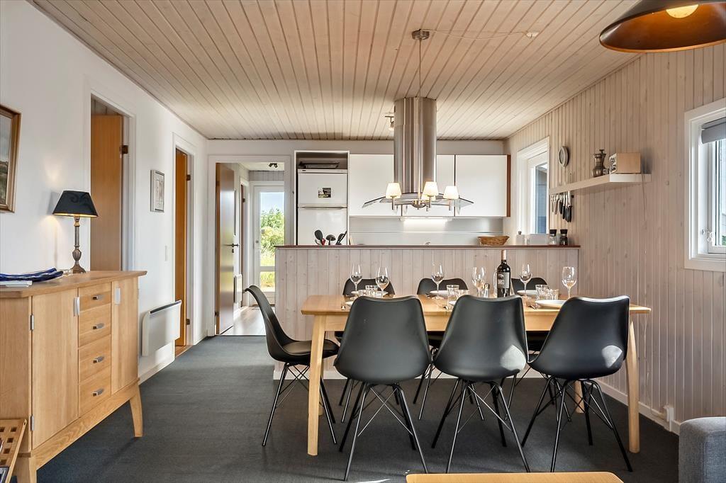 Så snart du træder ind i det løbende renoveret sommerhus, mærker du den afslappede feriestemning. Her er plads til nærvær, leg og ro – uanset om det er i fællesskab omkring måltiderne eller med en god bog i sofahjørnet. Køkken og stue ligger i åben forbindelse, hvilket gør det let at være sammen på kryds og tværs, mens dagens aktiviteter planlægges eller minderne fra stranden deles over et glas vin. Saunaen byder på velvære efter en dag i vestenvinden, og husets indretning er både praktisk og charmerende – med varme detaljer, naturligt lysindfald og en atmosfære, der gør det let at føle sig hjemme. Det er et sommerhus, hvor ferielivet får lov til at folde sig ud i sit eget tempo.