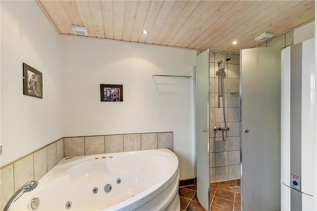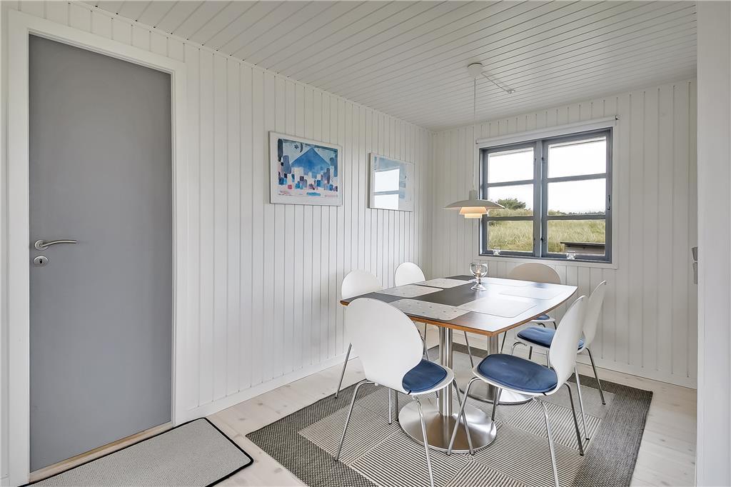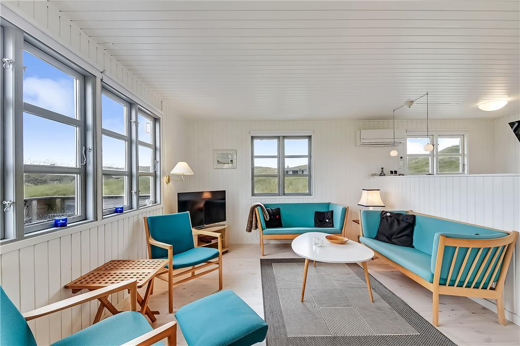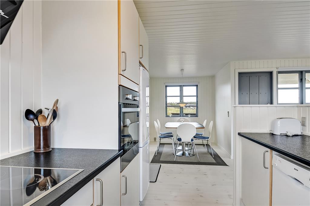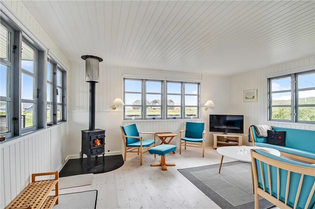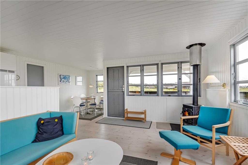Når du træder ind i sommerhuset, bliver du mødt af en varm og hyggelig stemning, der straks sætter scenen for ferien. Indretningen er lys og indbydende med et åbent køkken- og stueområde, hvor du kan nyde kvalitetstid sammen med familie og venner. Brændeovnen er den perfekte ramme om en kølig aften, mens du lytter til vinden, der hvisker gennem klitterne. Badeværelset byder på lidt ekstra luksus i form af et spabad, hvor du kan slappe af og lade hverdagens stress forsvinde.