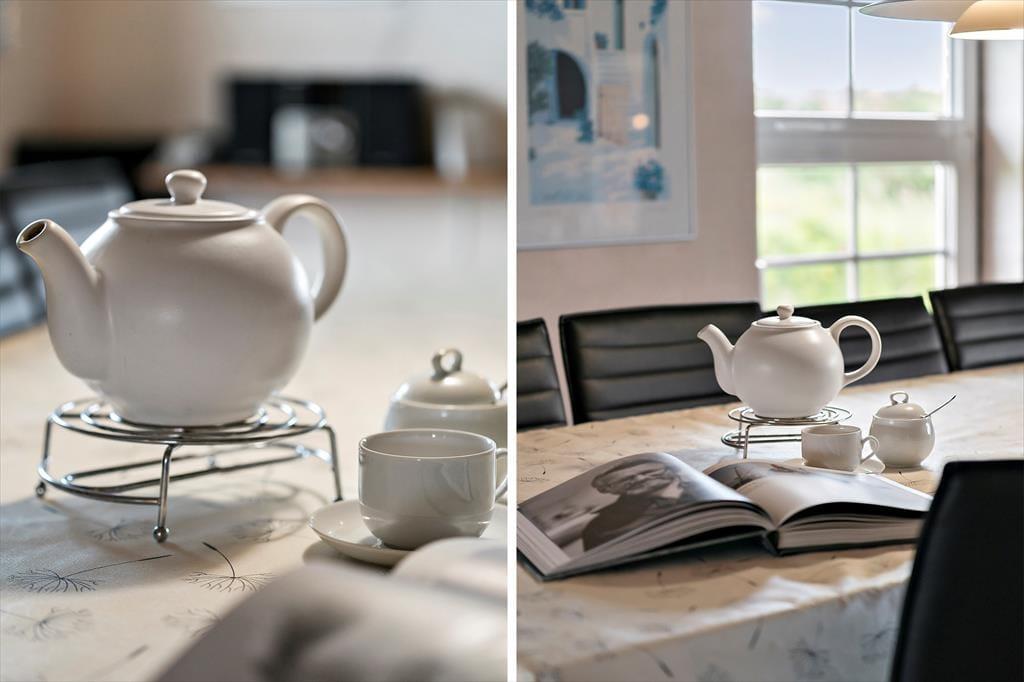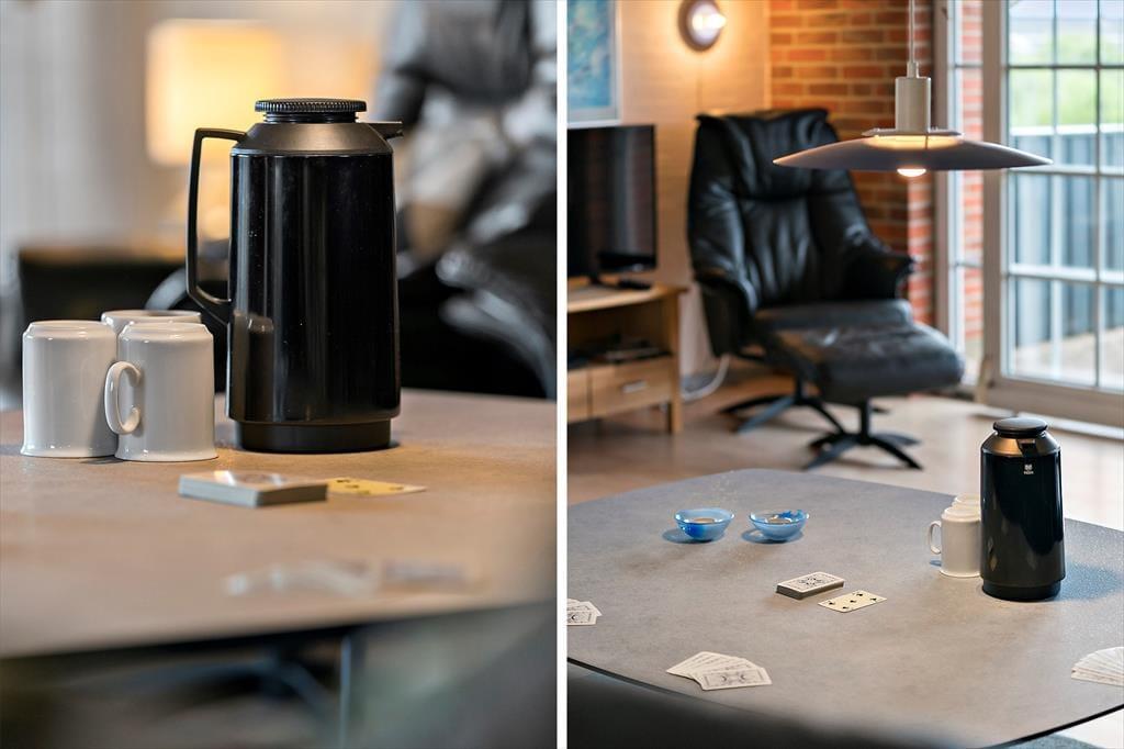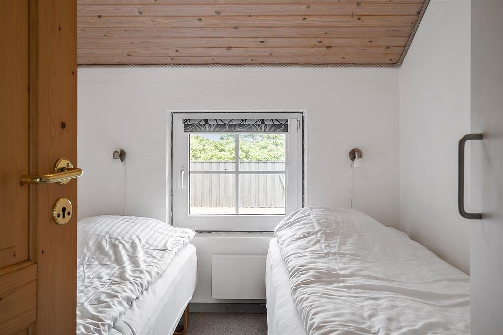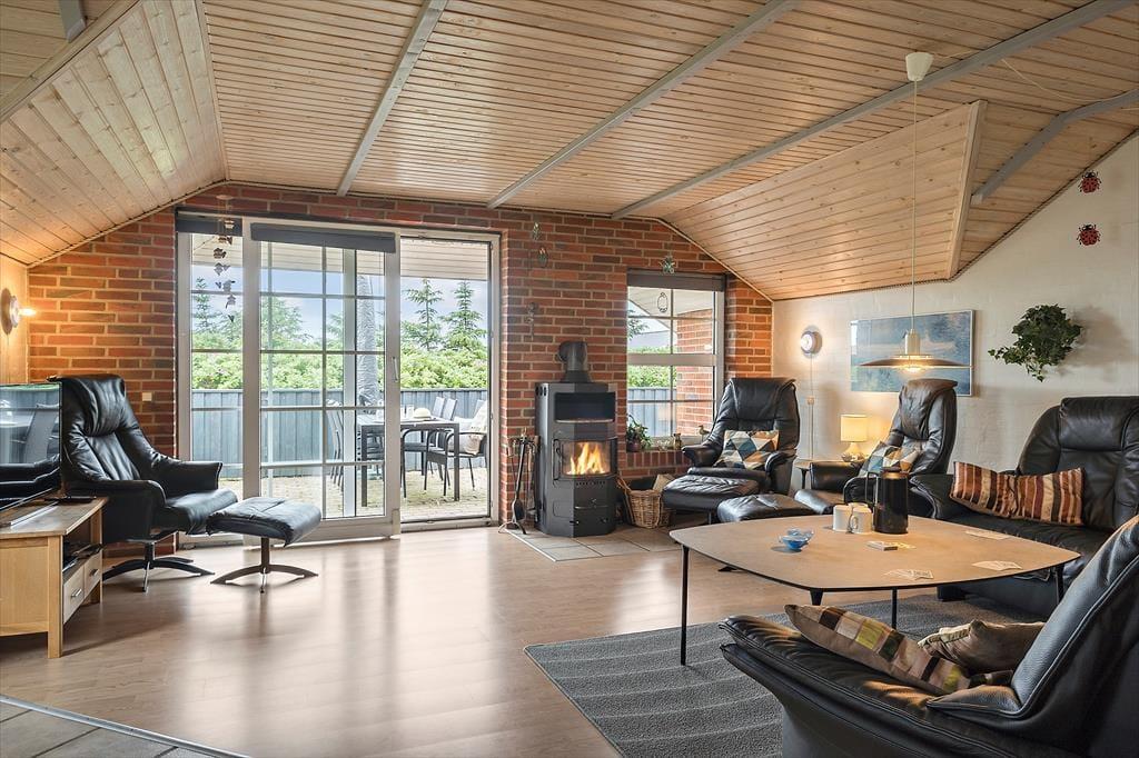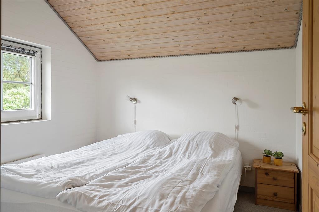 Sommerhuset er lyst og indbydende med en enkel indretning, der giver plads til at nyde ferien fuldt ud. De store vinduer i stuen lader dagslyset strømme ind og giver udsigt til den omkringliggende natur. Her kan du samles med familien foran brændeovnen på kølige dage eller nyde en god film på fladskærms-tv’et. Køkkenet ligger i åben forbindelse med stuen og giver gode muligheder for at kokkerere og hygge sig sammen – måske med en hjemmelavet middag baseret på friske, lokale råvarer. Soveværelserne, der er holdt i lyse toner, sikrer en god nats søvn, så du er klar til at udforske alt, hvad området har at byde på.