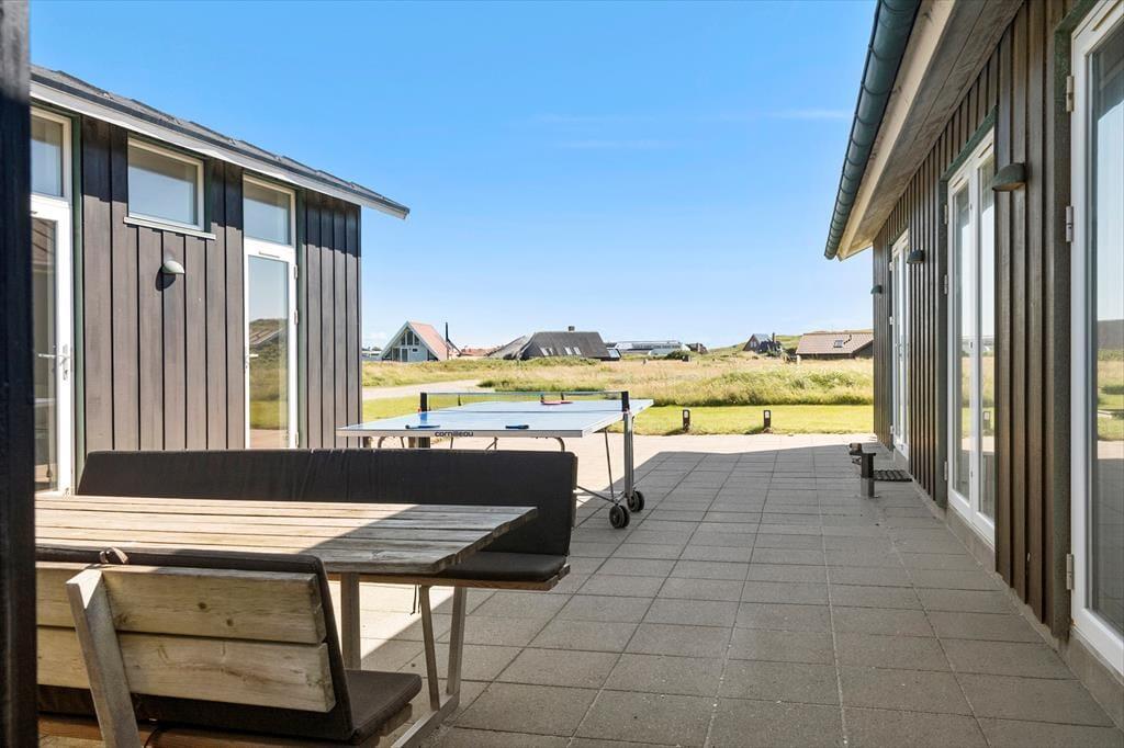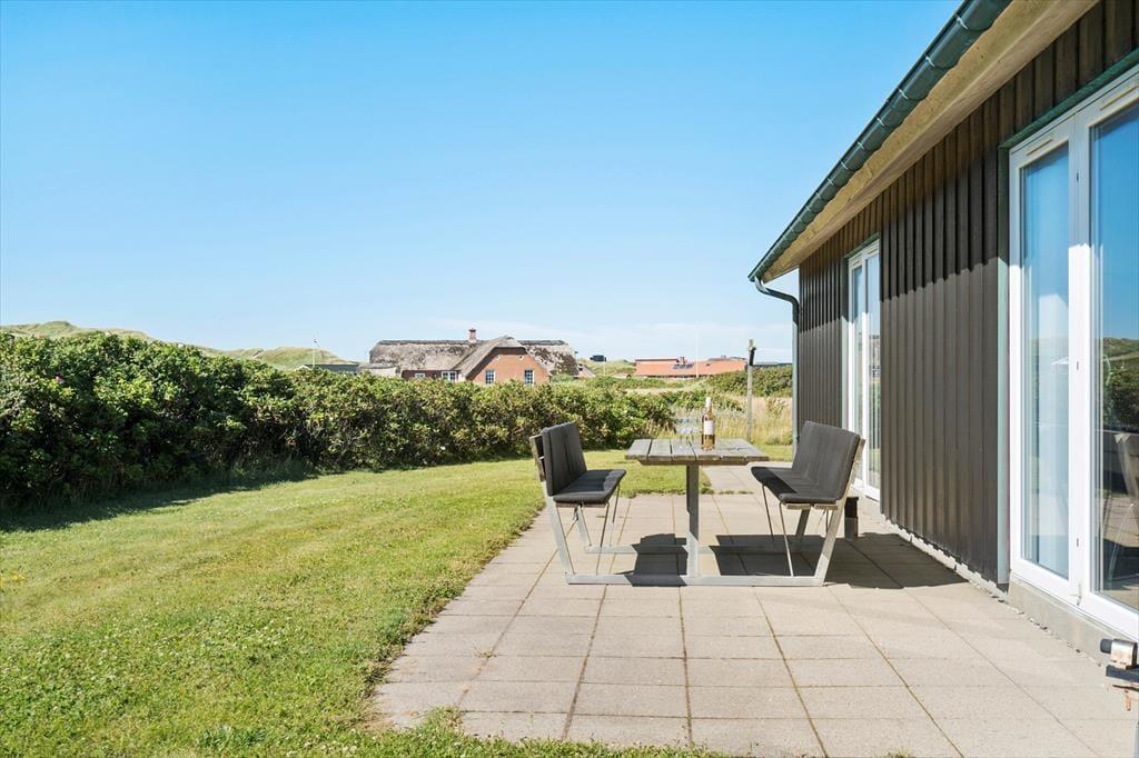 På den rummelige terrasse kan du nyde ferien i fulde drag. Her er der plads til afslapning, solbadning og lækre grillmiddage under åben himmel. Børnene kan lege på græsplænen, mens hunden trygt snuser rundt i de rolige omgivelser. Vil du opleve mere, ligger den fantastiske strand kun en kort gåtur væk. Her kan du tage en dukkert, gå lange ture eller nyde den magiske solnedgang over havet.