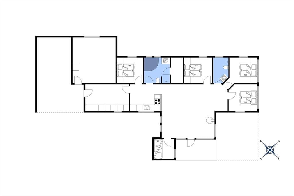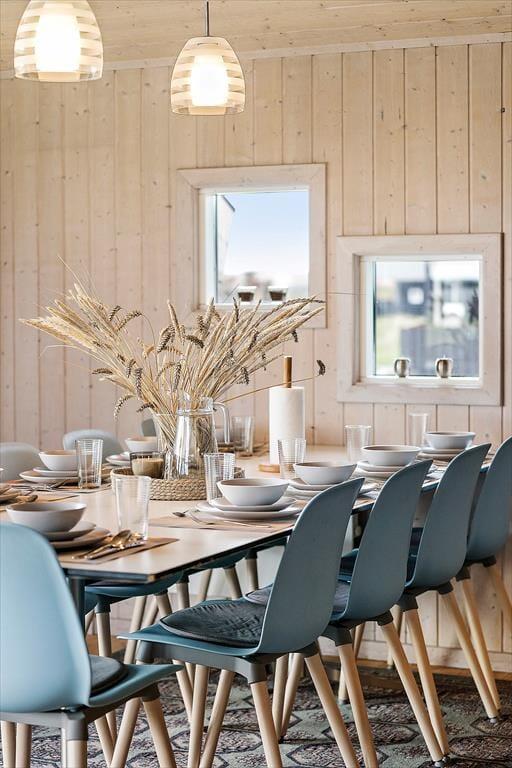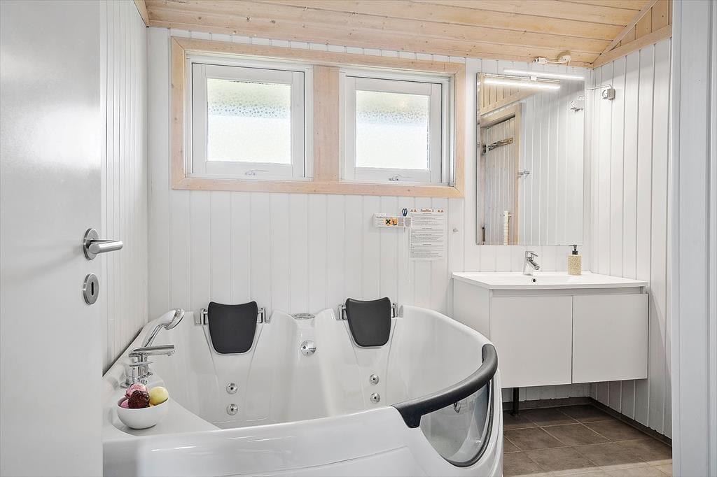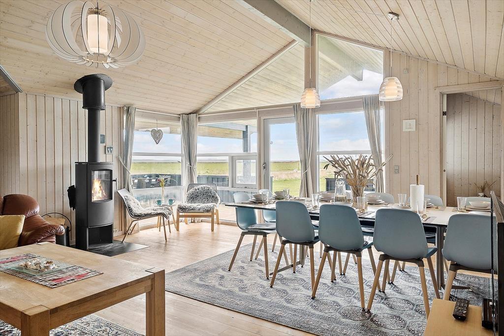 Allerede når du træder ind i sommerhuset, mødes du af et lyst og moderne udtryk, hvor indretningen er gennemtænkt og indbydende. Det åbne opholdsrum med stue og køkken i ét gør det nemt at være sammen – uanset om der dufter af aftensmad fra gryderne, eller om familien samles i sofaen til kortspil eller feriefilm. Når vinden rusker udenfor, kan du tænde op i brændeovnen og lade varmen brede sig i hele huset, mens det knitrer hyggeligt i baggrunden. Trænger du til ægte velvære, kan du trække dig tilbage til husets indendørs spa eller tage en tur i saunaen – det perfekte pusterum efter en aktiv dag ude. Alt i alt er stemningen i huset rolig og harmonisk, og her får du netop den base, du har brug for til en afslappende og mindeværdig ferie.