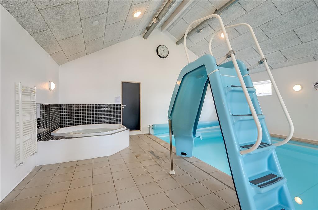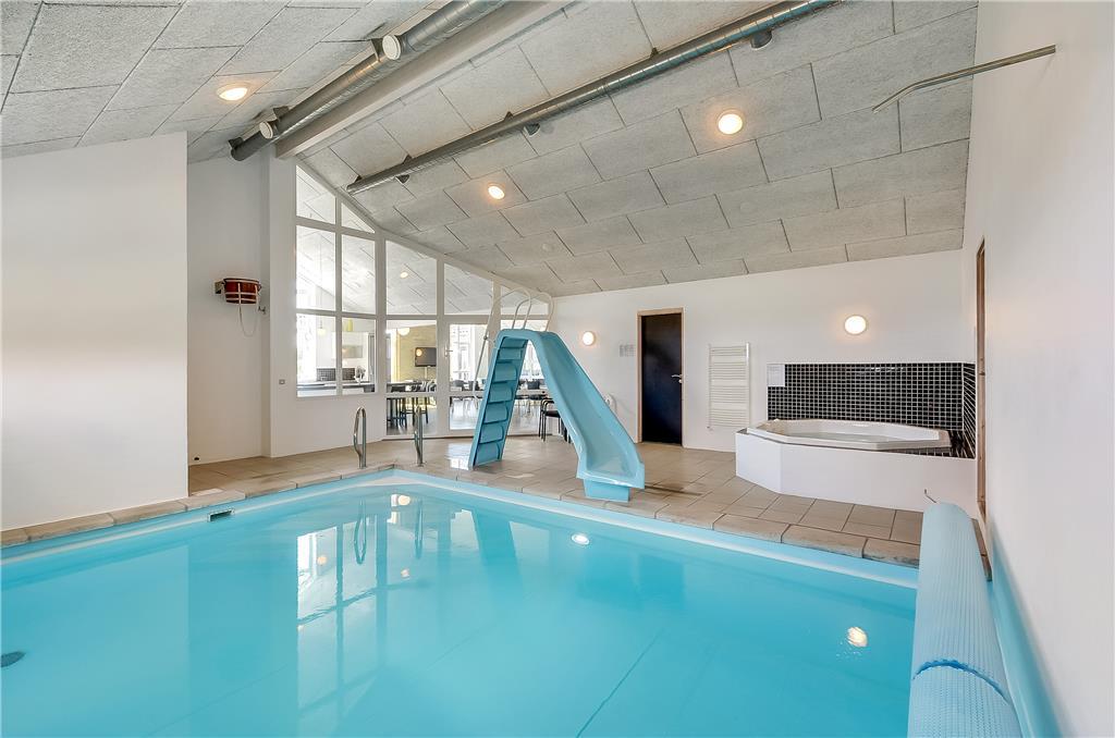 Når I træder indenfor i sommerhuset, bliver I mødt af lyse, rummelige rammer med plads til op til 20 personer. Huset er delt op i tre selvstændige enheder med hver deres opholds- og soveafdelinger, hvilket gør det perfekt til flere familier eller generationer, der gerne vil holde ferie sammen – men med mulighed for at trække sig tilbage. Midtpunktet i huset er det store fællesrum med langbord, køkken og sofaområde – og ikke mindst den imponerende pool afdeling med 20 m² stor swimmingpool, rutsjebane, spabad og sauna. Når I ikke svømmer eller slapper af i boblerne, kan I udfordre hinanden i billard, bordfodbold eller bordtennis – der er med andre ord masser at tage sig til både for store og små.