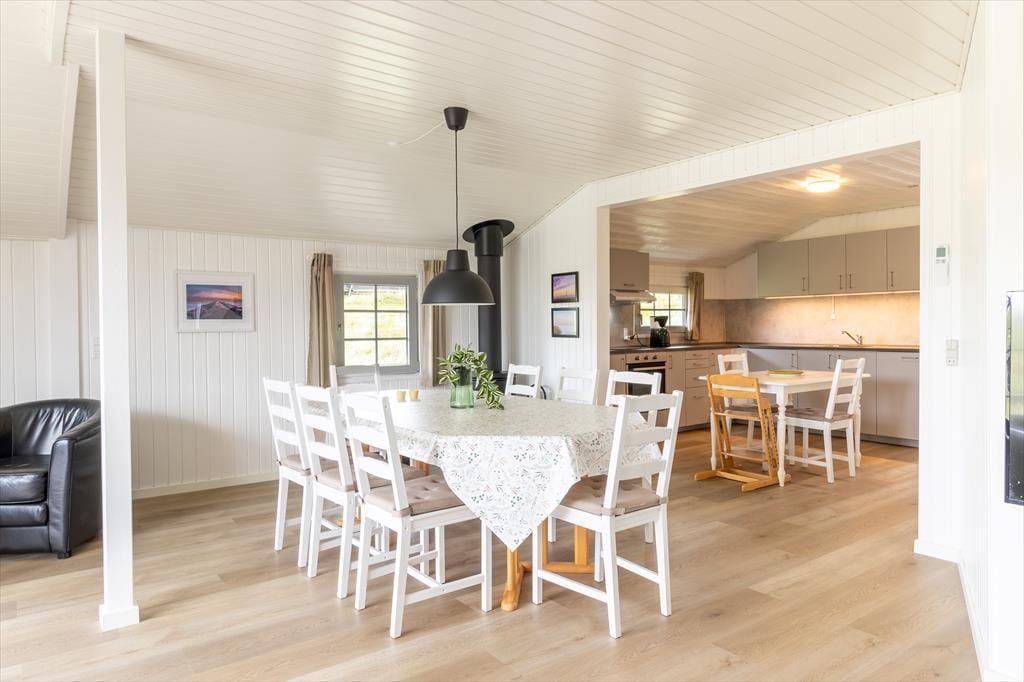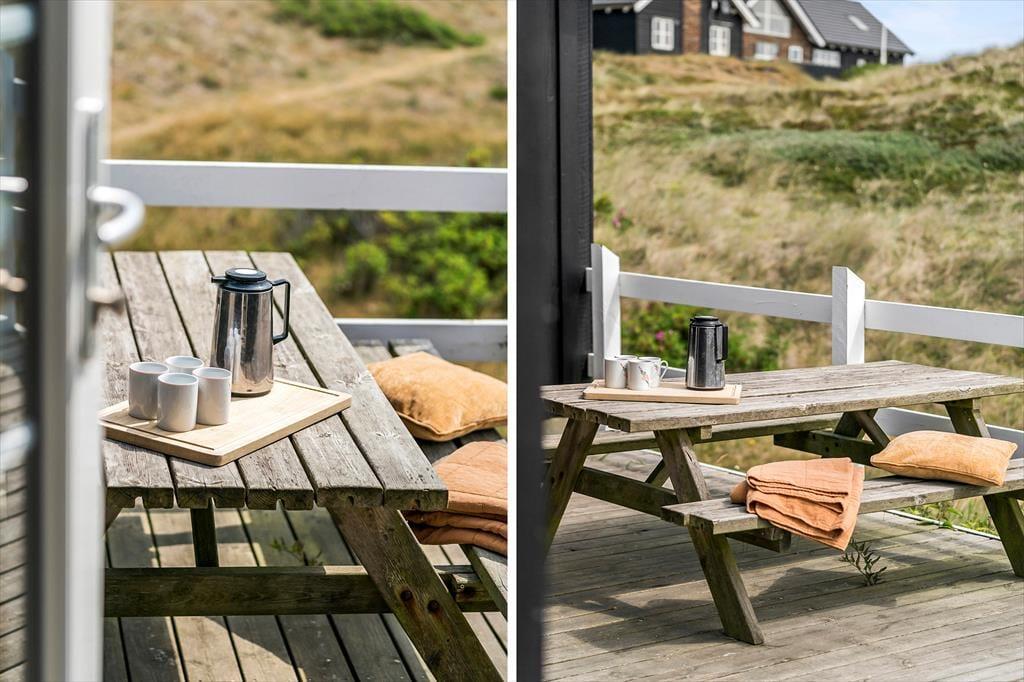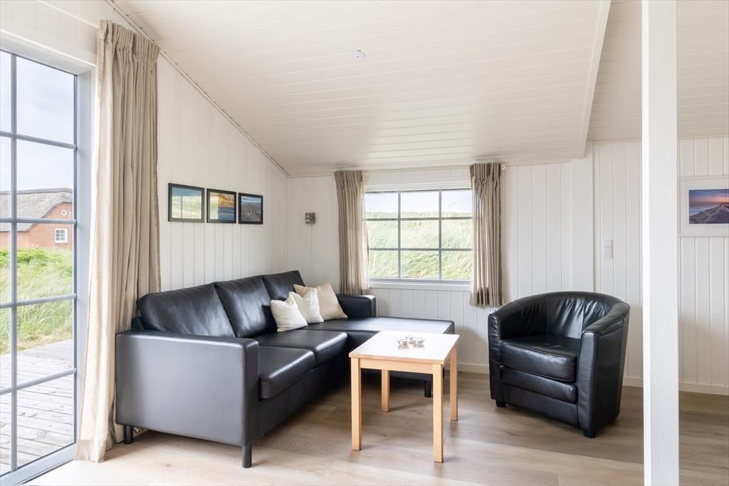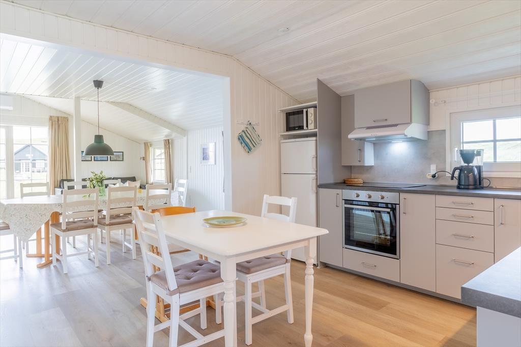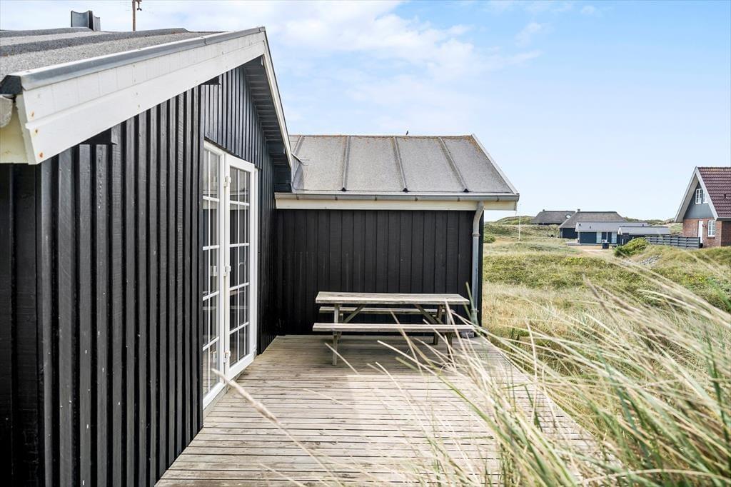 Terrassen og de grønne omgivelser omkring sommerhuset gør det nemt at komme i feriehumør. På solrige dage kan du tage plads på terrassen, hvor duften af grillmad og lyden af fugle fra de nærliggende klitter sætter scenen for hyggelige udendørs måltider. Det omkringliggende område giver mulighed for ugeneret afslapning, hvor både børn og hunde kan boltre sig på den rummelige græsplæne. Her er der plads til leg og små eventyr i det fri, og hvis aftenen byder på klare stjerner og køligere luft, kan du finde dig til rette i en behagelig stol og nyde roen under nattehimlen.