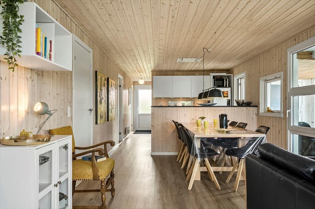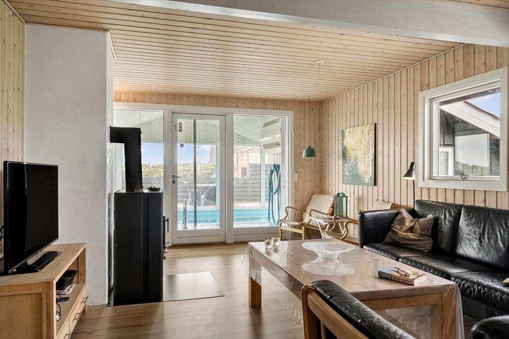 Når du træder ind i dette lyse og indbydende sommerhus, mødes du af en varm atmosfære, der straks får dig til at føle dig hjemme. Stuen er indrettet med komfortable møbler, hvor du kan slappe af med en god bog foran brændeovnen eller nyde en hyggelig aften foran fjernsynet. Køkkenet er veludstyret og ligger i åben forbindelse med stuen, hvilket gør det nemt at tilberede lækre måltider, mens du stadig er en del af fællesskabet. De rummelige soveværelser sikrer en god nats søvn efter en dag fuld af oplevelser. Højdepunktet indendørs er dog det skønne poolrum, hvor både børn og voksne kan boltre sig i vandet og få timevis af sjov uanset vejret udenfor.