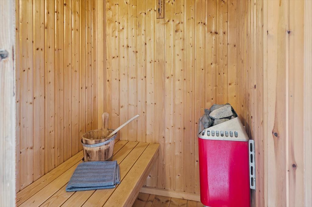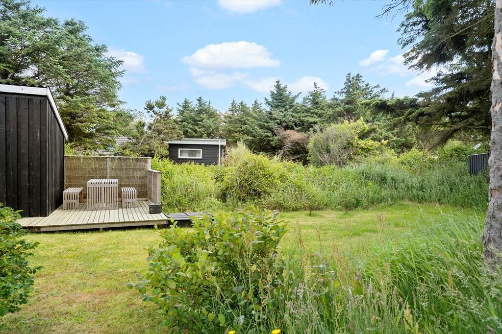 Huset ligger omgivet af en skovlignende bevoksning, der skaber en dejlig ramme for fred og ro. Den store terrasse inviterer til afslappende stunder, hvor du kan nyde solen eller tage et måltid under åben himmel. Grillen står klar til at gøre aftensmaden ekstra hyggelig, og børnene kan trygt lege på grunden, som er skærmet af den naturlige bevoksning. Hvis du har hund med, vil den elske at snuse rundt blandt træerne og buskene, der omkranser sommerhuset.