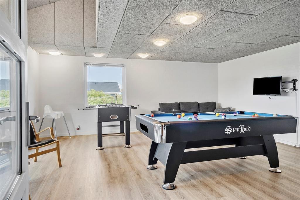 Sommerhusets indretning er lys og indbydende, og her er masser af plads til, at hele familien kan samles og nyde samværet. Med fire soveværelser og to badeværelser er der god plads til både børn og voksne – måske endda til to familier, der holder ferie sammen. Aktivitetsrummet er en af husets perler, hvor både bordtennis, dart og bordfodbold sikrer mange timers underholdning. I køkken-alrummet kan du nemt tilberede dagens måltider, mens samtalerne flyder frit mellem køkkenet og stuen. Efter en dag fuld af oplevelser kan du sætte dig til rette i sofaen, måske med en varm kop kakao foran brændeovnen, mens solen går ned bag klitterne.