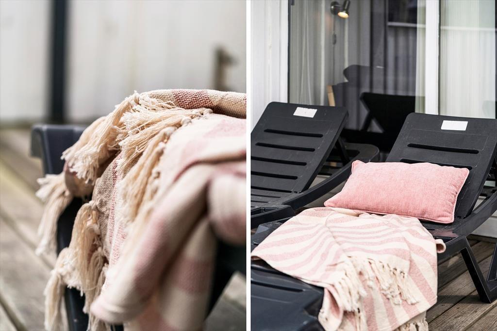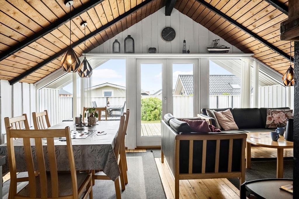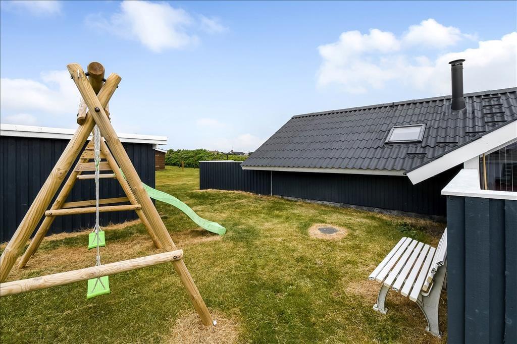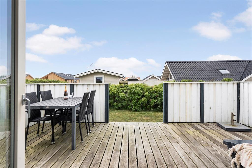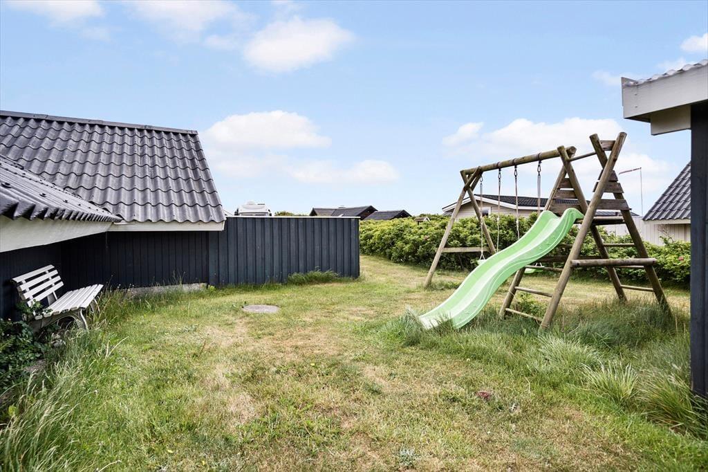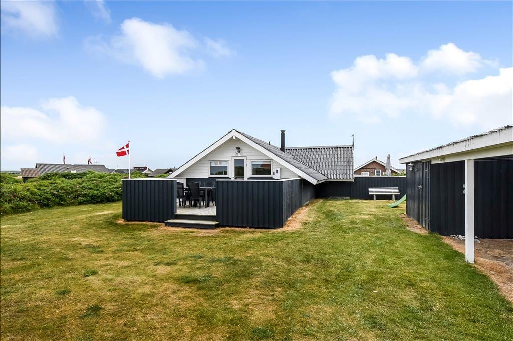 Udendørsarealerne omkring sommerhuset indbyder til afslapning og leg. Med to terrasser er der rig mulighed for at finde en solrig plet eller søge skygge på varme dage. Havemøbler, liggestole og en grill står til rådighed, så du kan tilberede og nyde måltider under åben himmel. Den omkringliggende have giver børnene plads til at lege, spille bold eller gynge, mens de voksne kan slappe af og nyde ferien. Desuden er der en carport til bilen, hvilket sikrer nem og bekvem parkering.