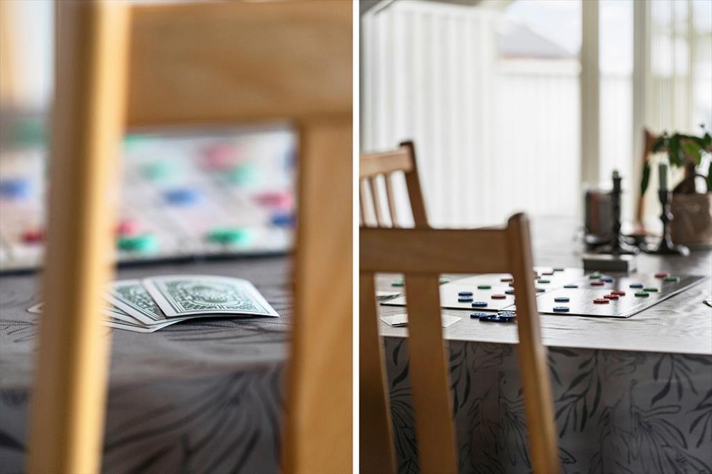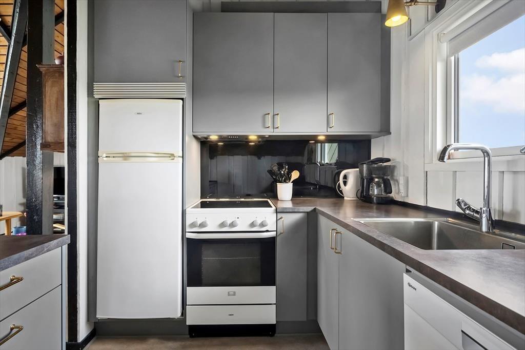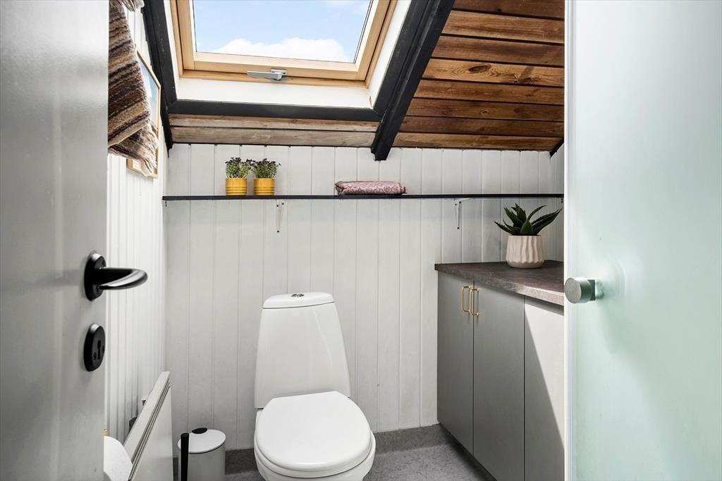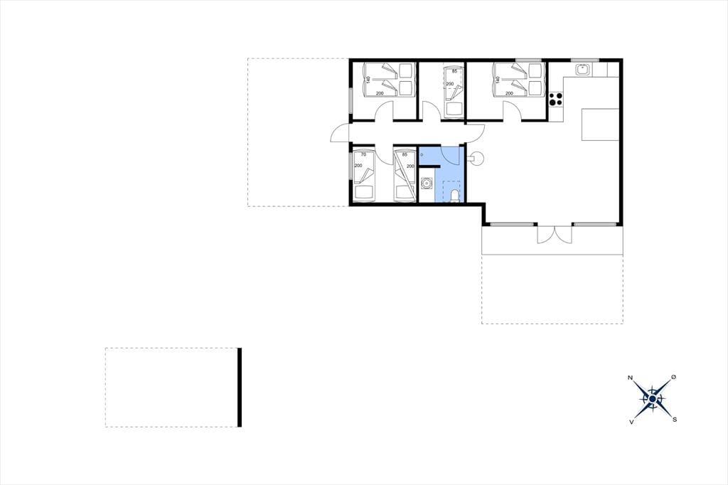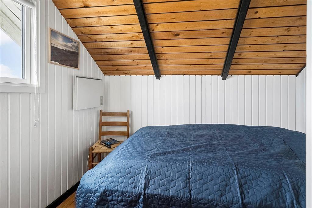 Når du træder ind i dette hyggelige sommerhus, mødes du af en lys og indbydende atmosfære. Stuen og køkkenet er forenet i et åbent rum, hvilket skaber en rummelig og behagelig opholdszone. I stuen kan du slappe af i den komfortable sofagruppe, nyde måltider ved spisebordet eller varme dig ved brændeovnen på kølige aftener. Fra stuen er der direkte adgang til terrassen, hvor du kan nyde morgenkaffen i den friske luft. Sommerhuset rummer fire soveværelser; to med dobbeltsenge, hvoraf det ene også har en barneseng, og to med enkeltsenge, hvilket giver fleksible sovepladser til både familie og venner. Badeværelset er funktionelt indrettet med bruseniche.