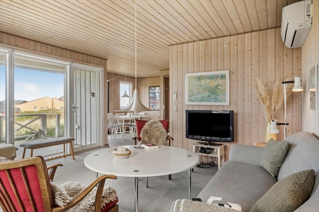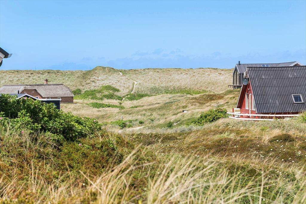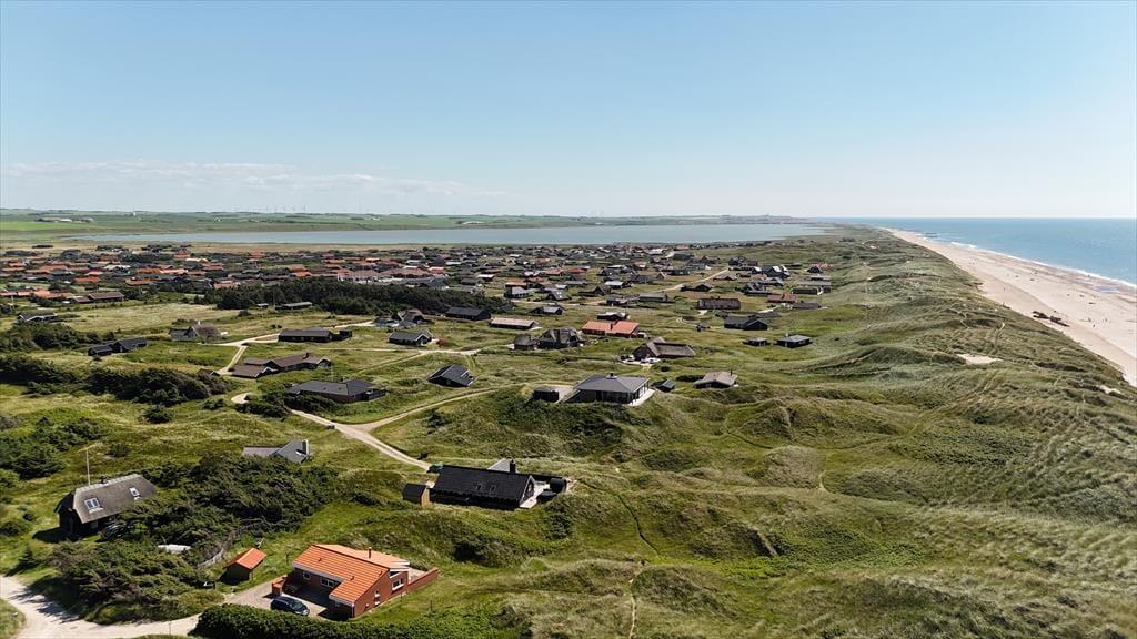Udendørs venter flere terrasser udstyret med havemøbler, liggestole og grill, der indbyder til afslapning i solens stråler hele dagen. Forestil dig at starte morgenen med en kop kaffe på terrassen, mens du lytter til havets brusen i baggrunden. Om aftenen kan du samle familien til en lækker grillmiddag, mens solen langsomt går ned over klitlandskabet. Den fantastiske udsigt og lyden af bølgerne skaber en unik atmosfære, der gør hvert øjeblik specielt.