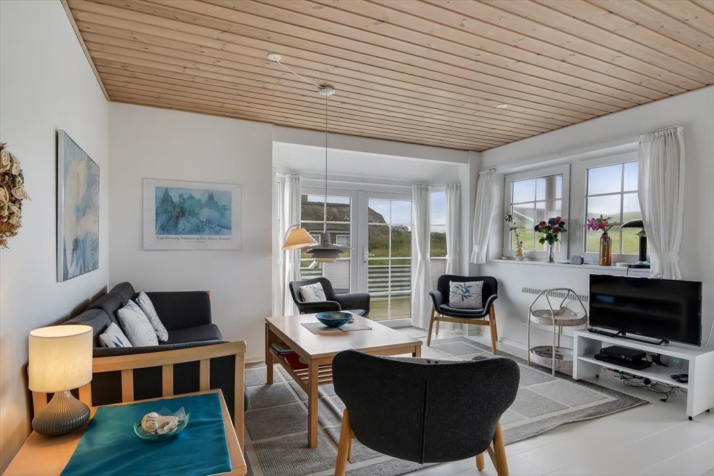 Terrassen, der omgiver huset, inviterer til afslapning i det fantastiske klitlandskab. Her kan du nyde solens stråler, lytte til bølgernes brusen og fordybe dig i en god bog. Den kuperede naturgrund giver en følelse af privatliv og ro, hvor du kan lade hverdagens stress forsvinde.