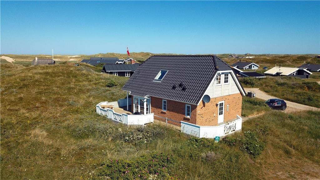 Beliggende kun 170 meter fra Vesterhavet og den dejlige sandstrand er dette sommerhus ideelt for badeentusiaster og naturelskere. En kort gåtur fører dig til det brusende hav, hvor du kan tilbringe dagen med at bygge sandslotte eller tage en forfriskende dukkert. Indkøbsmuligheder og en restaurant, der holder åbent hele sommeren, ligger blot 650 meter væk, hvilket gør det nemt at nyde lokale specialiteter og daglige fornødenheder.