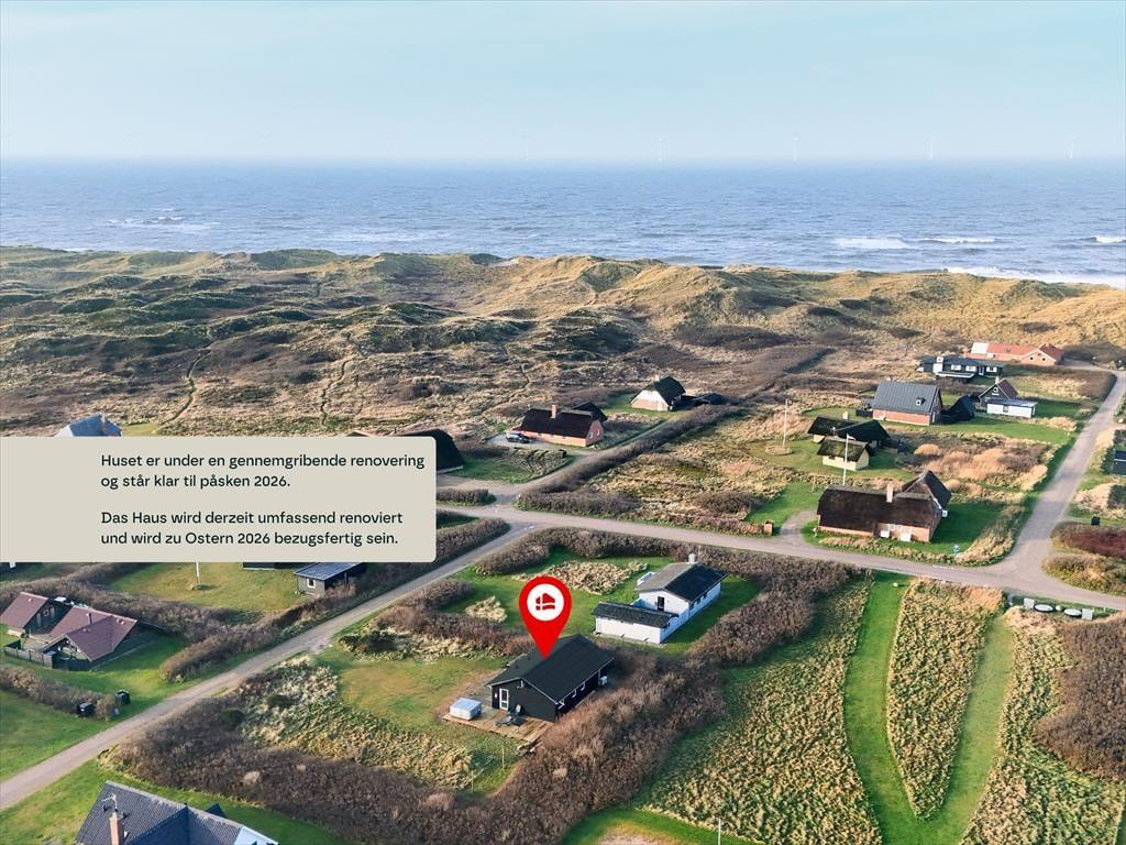 Moderne sommerhus ved Vesterhavet med nyrenoveret køkken, spabad og lukket terrasse tæt på strand og natur.