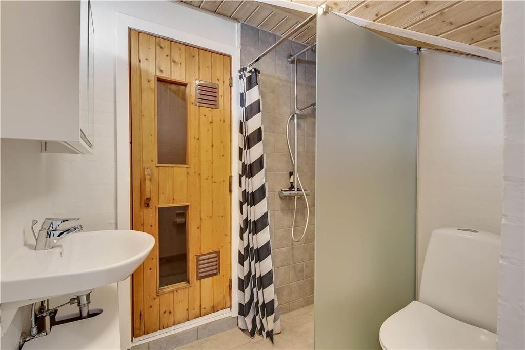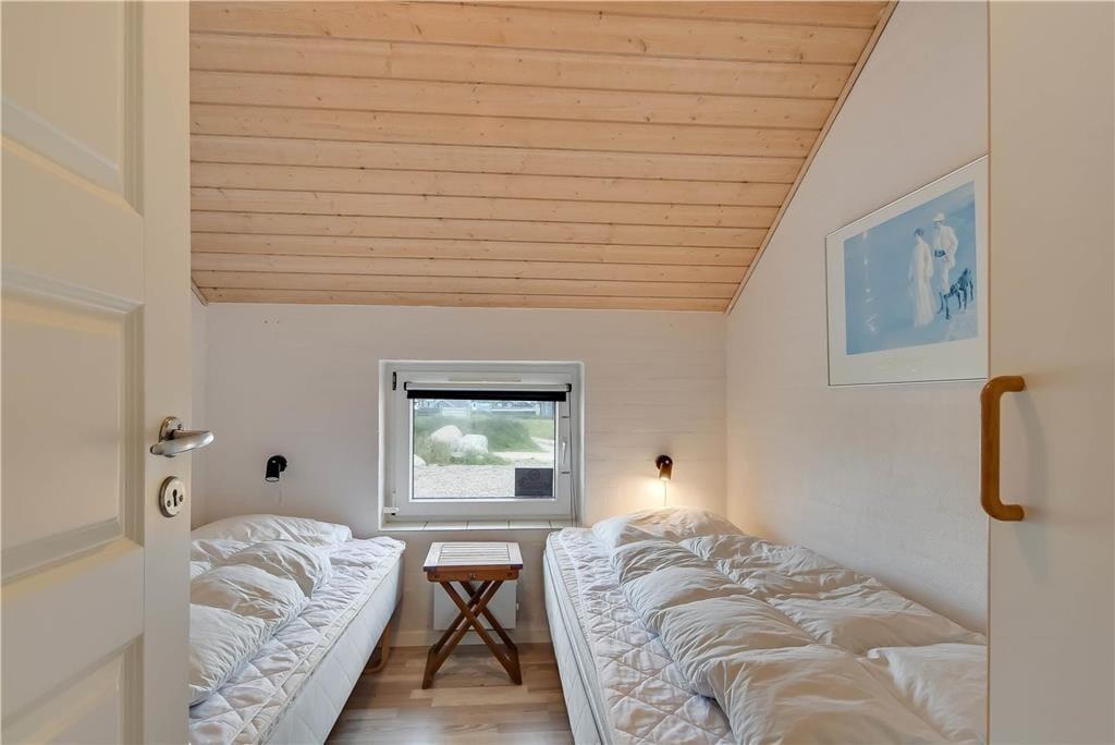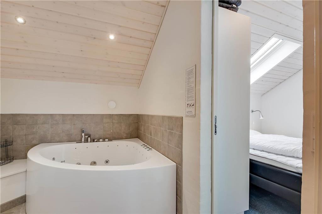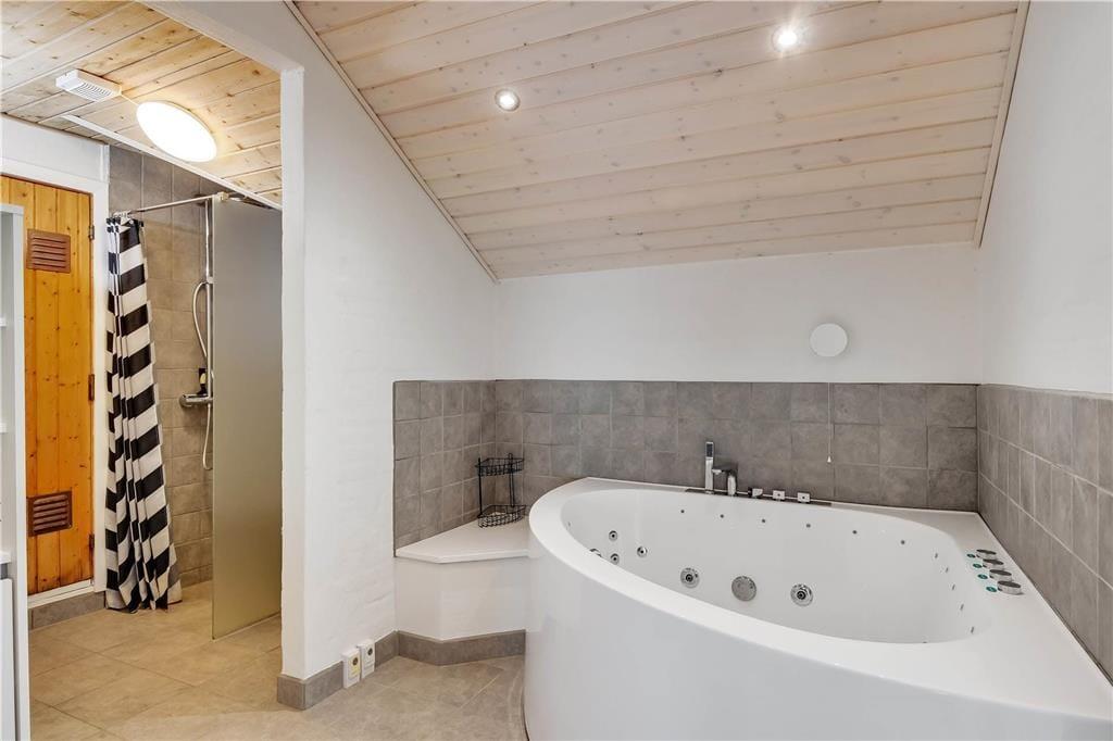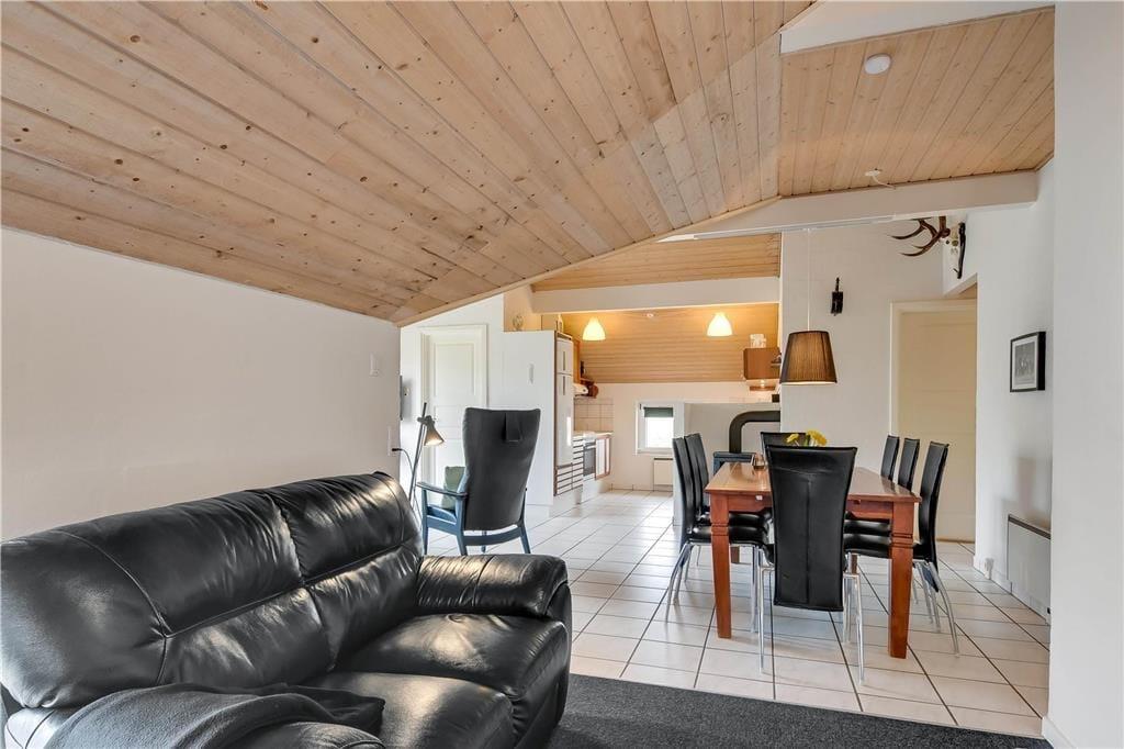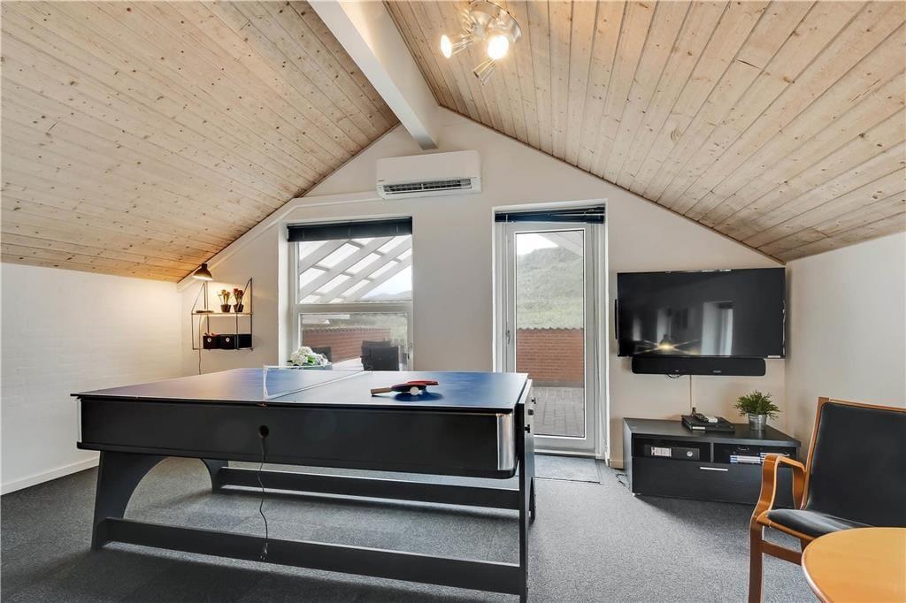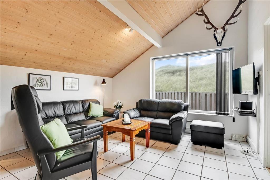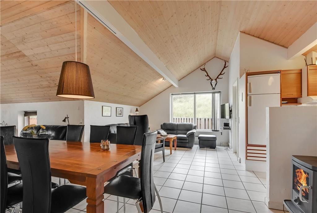 Når du træder ind i dette sommerhus, mødes du af en rummelig stue med store vinduespartier, der lader dagslyset strømme ind og giver udsigt til de omkringliggende klitter. Stuen er indrettet med komfortable møbler, hvor du kan slappe af med en god bog eller nyde en filmaften. Den åbne forbindelse til køkkenet skaber en hyggelig atmosfære, hvor samtaler kan flyde frit, mens der tilberedes lækre måltider. Efter en dag ved stranden kan du forkæle dig selv i husets sauna eller tage et afslappende bad i spabadet, som begge er perfekte til at løsne op for spændinger og lade roen sænke sig.