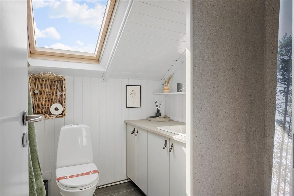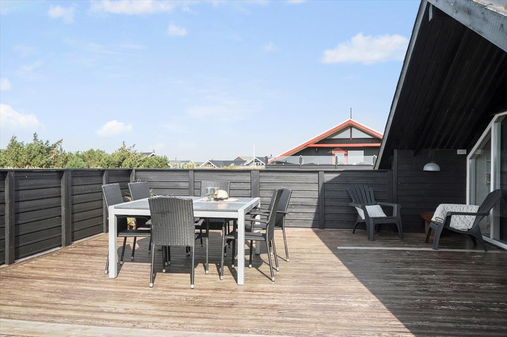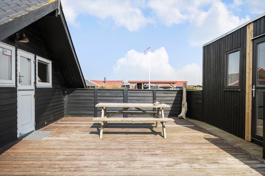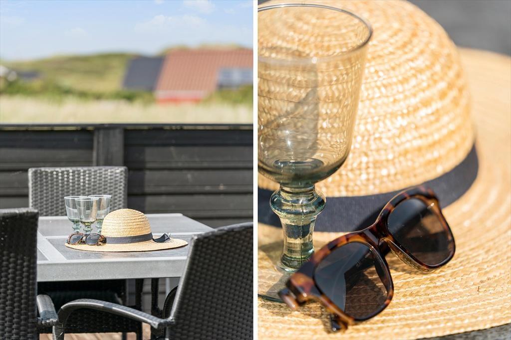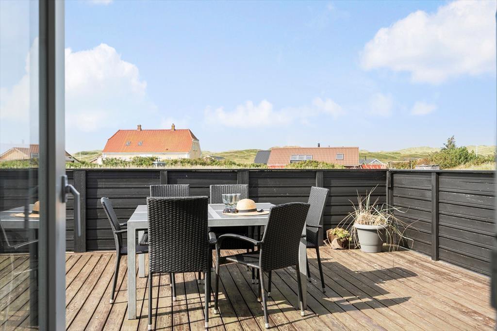 Udendørs finder du en stor, lukket terrasse på 100 m², udstyret med komfortable havemøbler, liggestole og en gasgrill. Her kan du slappe af i solen, nyde måltider under åben himmel eller lade børnene lege frit på den 752 m² store grund. Den lukkede terrasse giver mulighed for at finde læ, uanset om vinden kommer fra øst eller vest, hvilket gør det til et perfekt sted at nyde de lange sommeraftener.