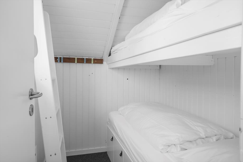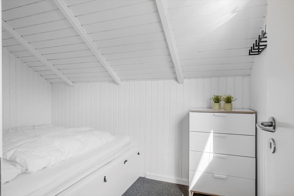 Når du træder ind i dette hyggelige sommerhus, mødes du af en lys og indbydende atmosfære. Stuen er integreret med spiseområdet og det åbne køkken, hvilket skaber en rummelig og sammenhængende opholdsplads. Her kan du nyde hyggelige aftener med familien, mens brændeovnen knitrer i baggrunden. Huset rummer et soveværelse med dobbeltseng og et børneværelse med køjeseng, ideelt til en lille familie. Badeværelset er funktionelt indrettet med bruser.