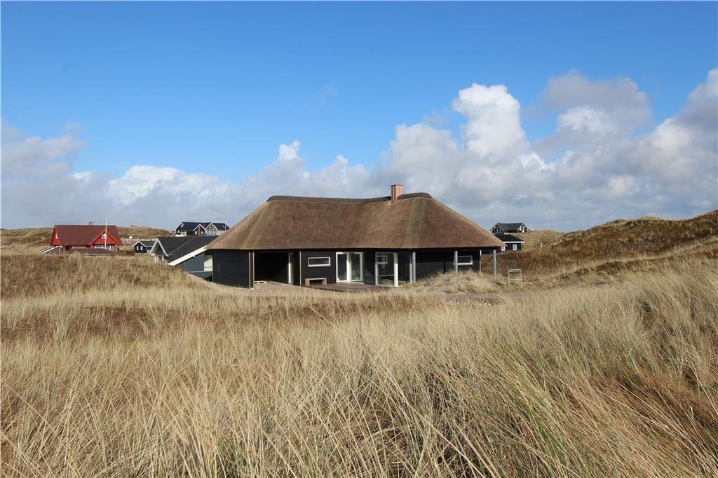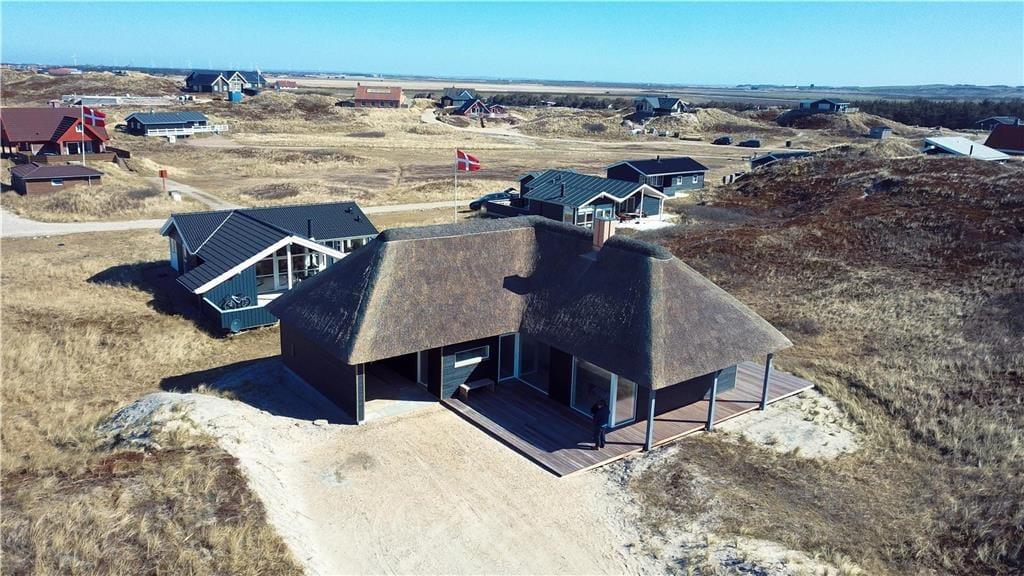 Der er dømt luksus, komfort og naturoplevelser i særklasse, når ferien tilbringes i dette smukke, nybyggede stråtækte sommerhus på Doblervej 12 i Vejlby Klit. Beliggenheden i første klitrække, de moderne faciliteter og den elegante indretning skaber de perfekte rammer for en ferie, hvor du virkelig kan mærke, at du er tæt på både hav, natur og hinanden. Her er tænkt på alle detaljerne – også til familiens firbenede ven, som naturligvis er velkommen.