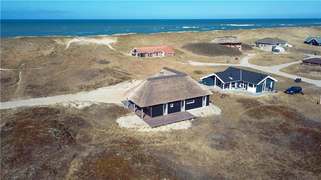 Det er ikke kun indenfor, huset imponerer – forude venter skønne rammer for det gode udeliv. Beliggenheden i første klitrække betyder, at du kun har få skridt ned til stranden, men haven og terrasseområderne indbyder også til mange gode timer hjemme. Her kan du starte dagen med en frisk udebruser under åben himmel og runde aftenen af med et glas vin i læ for vinden, mens solen går ned over klitterne. Terrassen har både åbne og overdækkede sektioner, og de omkringliggende klitter skærmer for vinden og skaber en privat og fredfyldt atmosfære. Børnene har god plads til at lege og tumle.